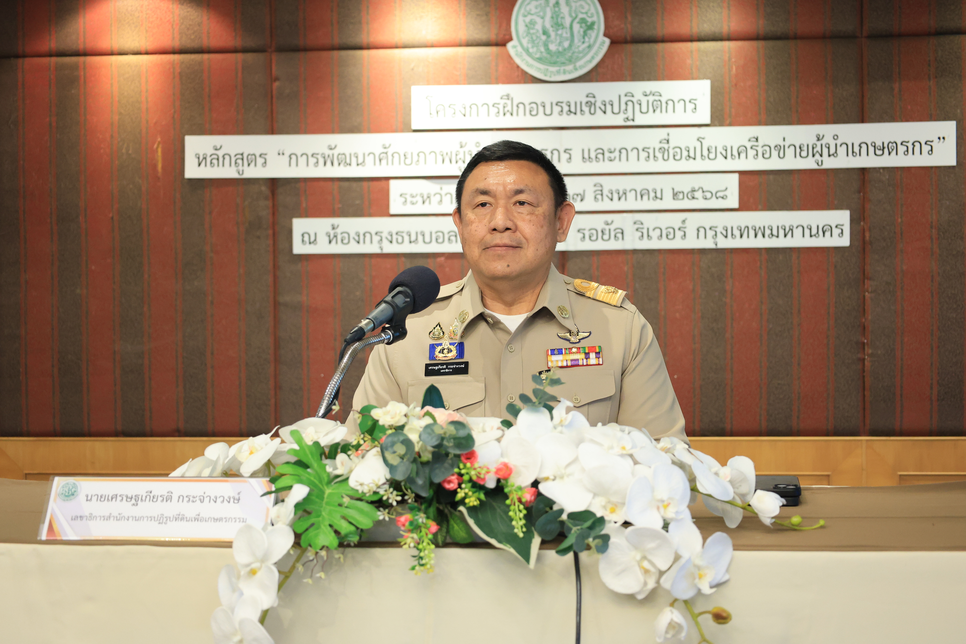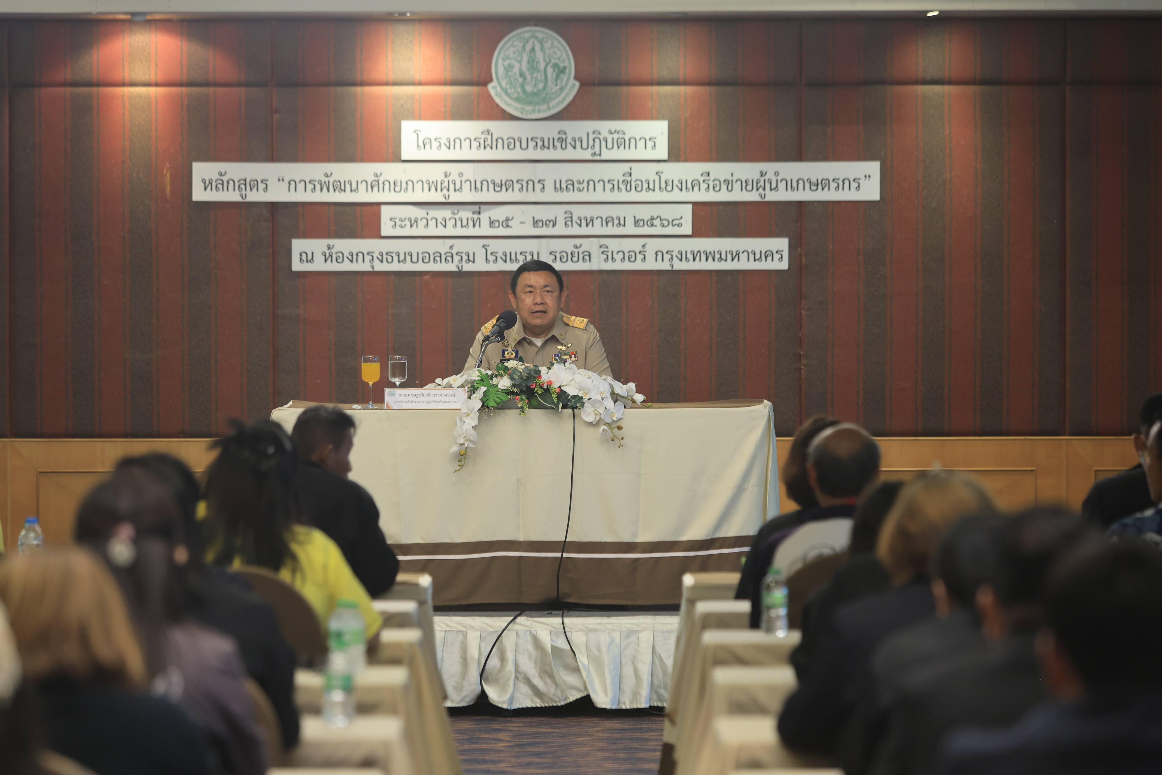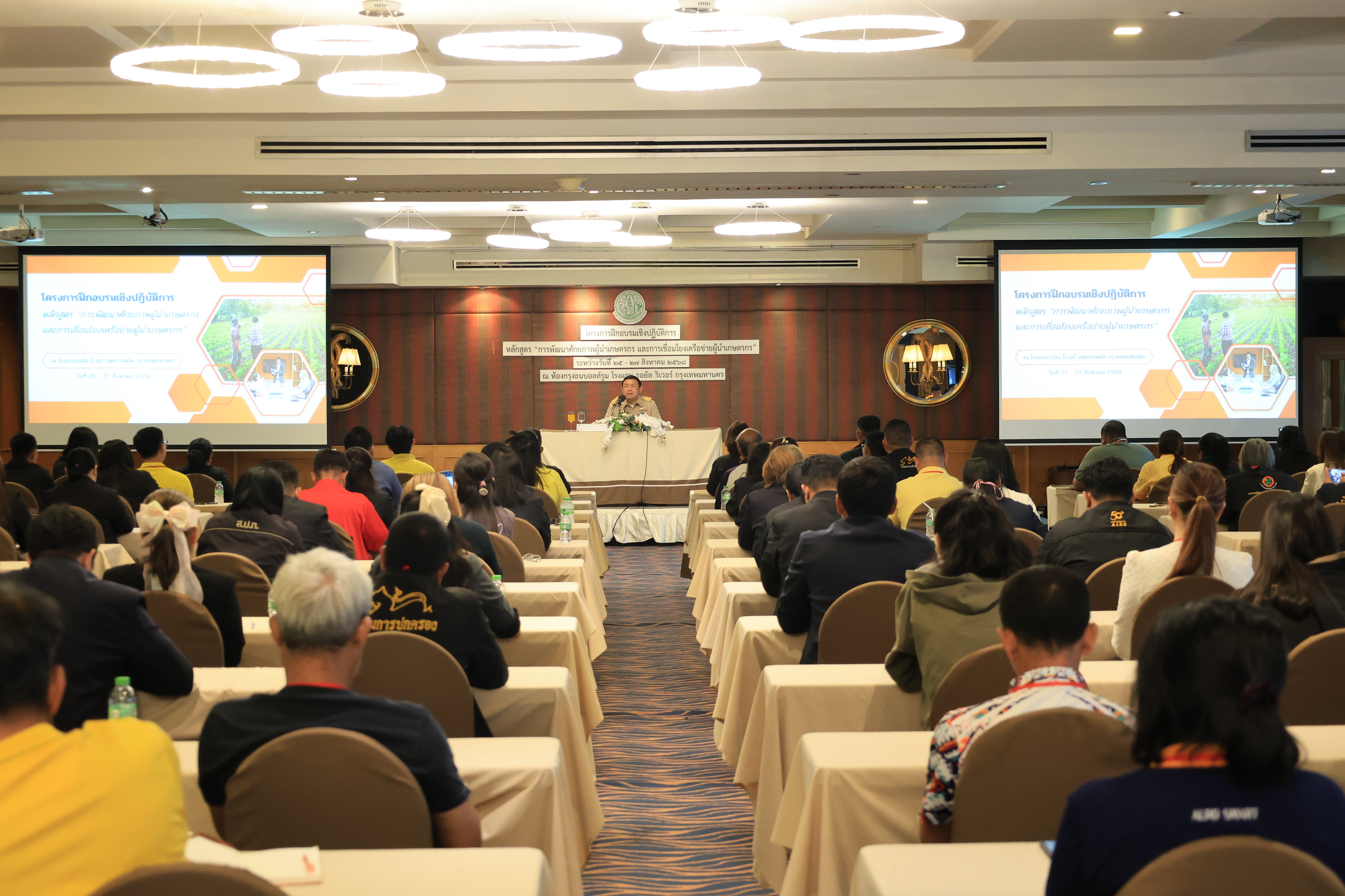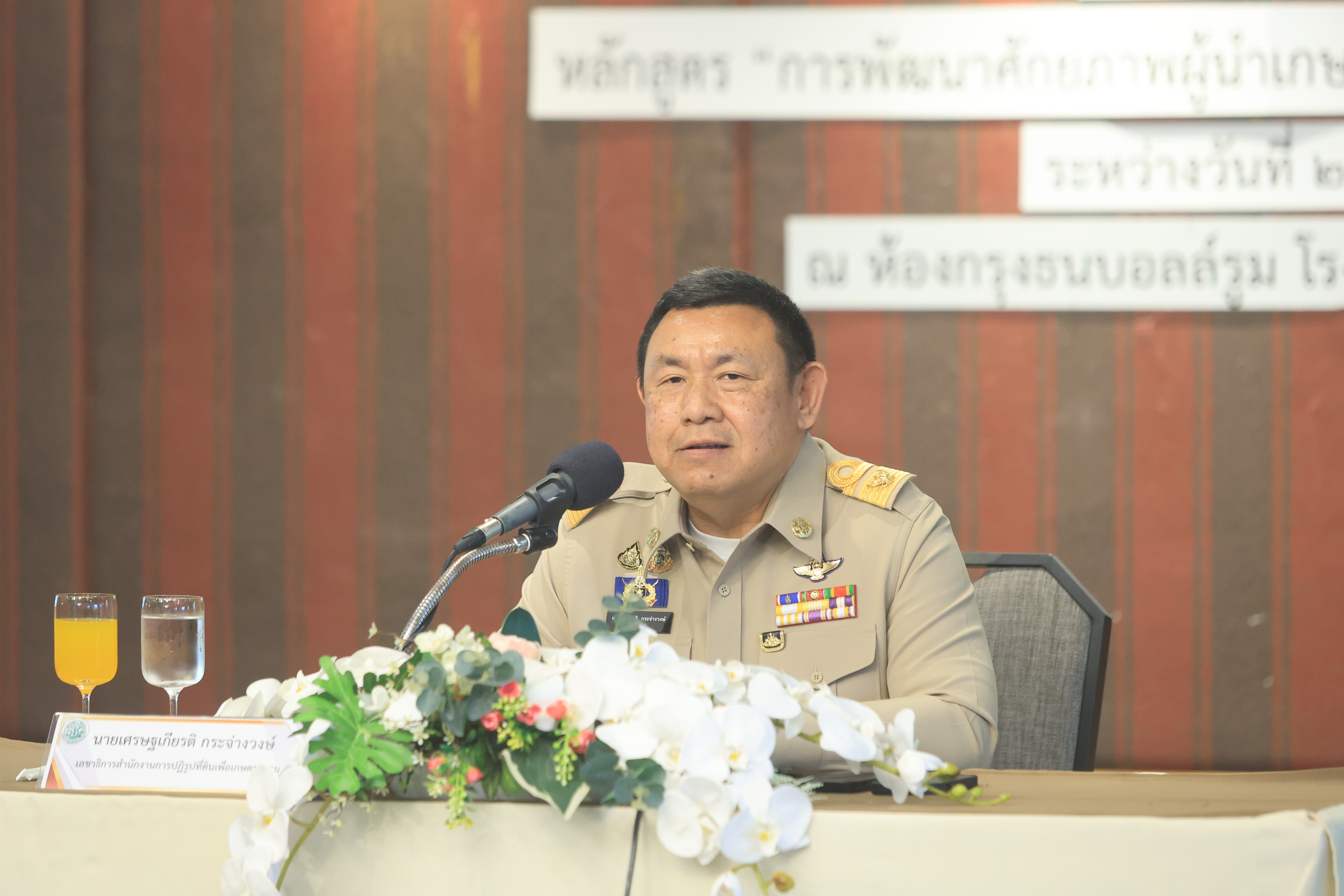 วันที่ 25 สิงหาคม 2568 เวลา 13.00 น. นายเศรษฐเกียรติ กระจ่างวงษ์ เลขาธิการสำนักงานการปฏิรูปที่ดินเพื่อเกษตรกรรม (ส.ป.ก.) เป็นประธานในพิธีเปิดโครงการฝึกอบรมเชิงปฏิบัติการ หลักสูตร “การพัฒนาศักยภาพผู้นำเกษตรกร และการเชื่อมโยงเครือข่ายผู้นำเกษตรกร” เพื่อเป็นการพัฒนาศักยภาพด้านต่าง ๆ ของผู้นำเกษตรกรอันจะนำมาซึ่งความเข้าใจและความร่วมมือในการปฏิบัติงานไปในทิศทางเดียวกัน เกิดการสร้างเครือข่ายการมีส่วนร่วมในการดำเนินงานปฏิรูปที่ดินเพื่อเกษตรกรรม ระหว่าง คปจ. อสปก. ผู้นำเกษตรกร เจ้าหน้าที่ ส.ป.ก. และผู้มีส่วนเกี่ยวข้อง ให้บรรลุวัตถุประสงค์การขับเคลื่อนงานปฏิรูปที่ดินเพื่อเกษตรกรรมอย่างมีประสิทธิภาพ สอดคล้องกับสถานการณ์การพัฒนาเกษตรกรในปัจจุบัน โดยมีเป้าหมายในการดำเนินงานรวมทั้งสิ้น 160 ราย ประกอบด้วย สำนักงานการปฏิรูปที่ดินจังหวัด (ส.ป.ก.จังหวัด) จำนวน 65 จังหวัด
