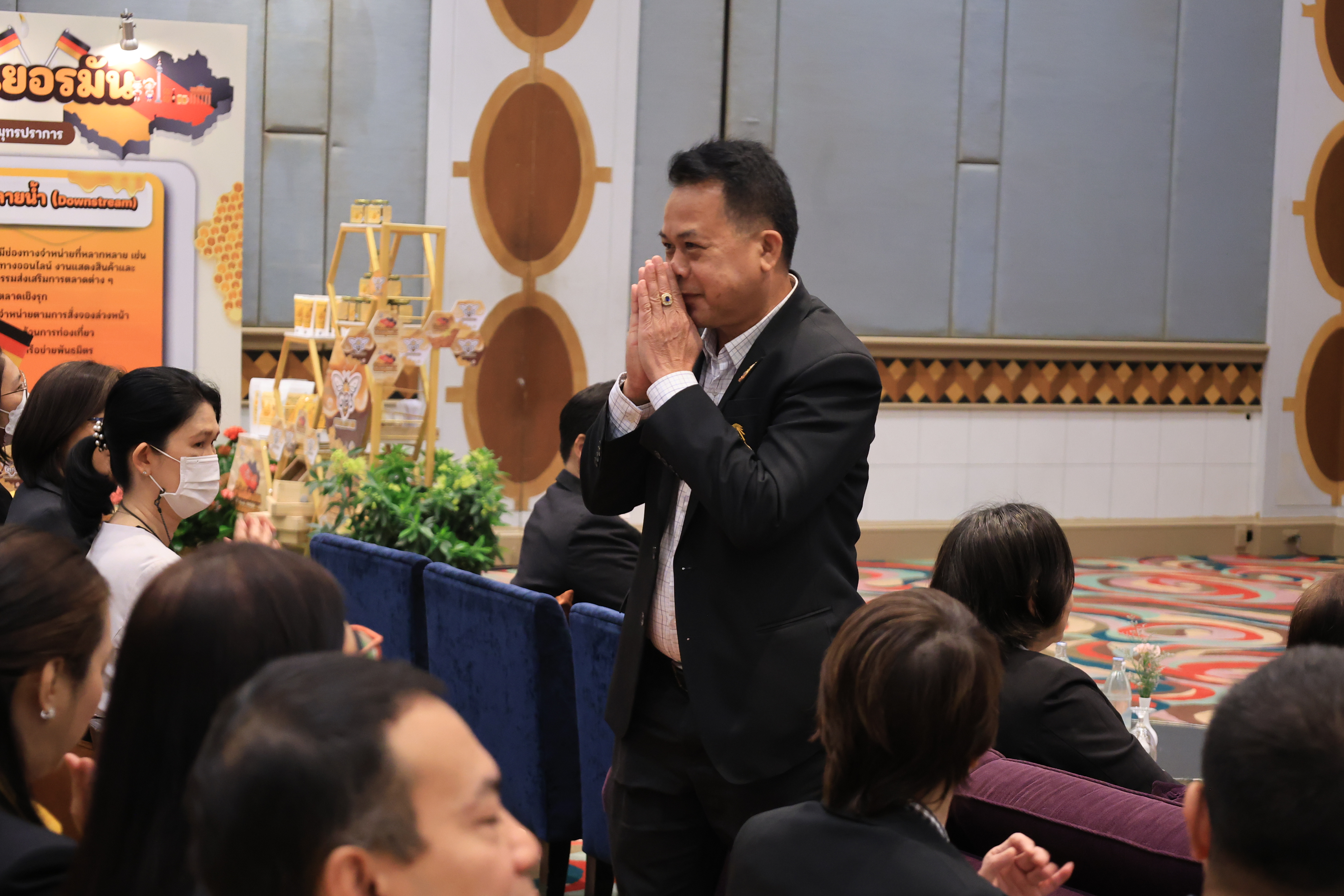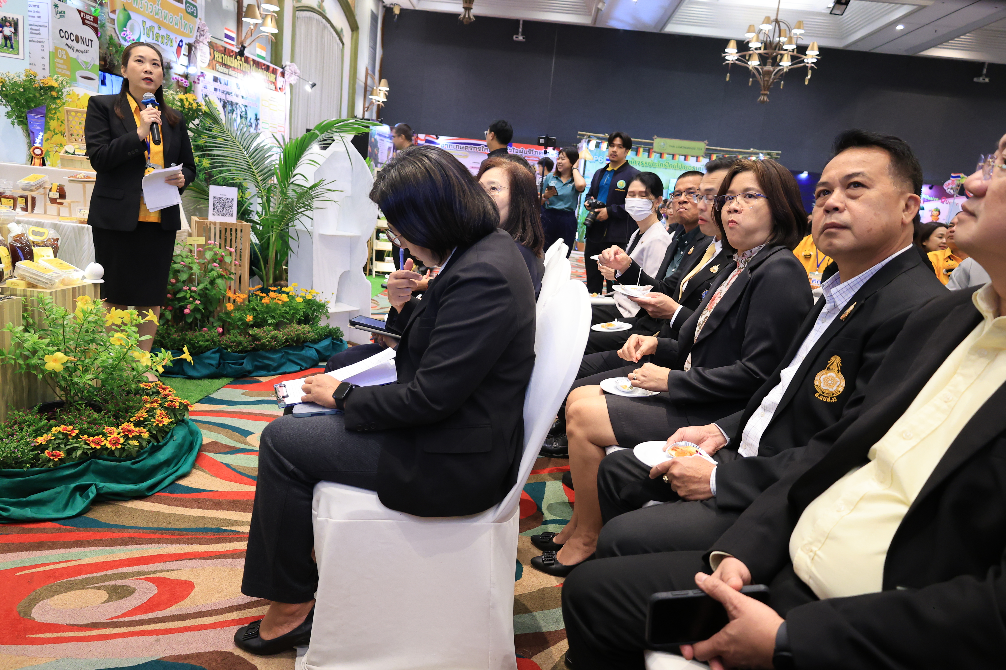 วันที่ 28 สิงหาคม 2568 เวลา 9.00 น. นายเศรษฐเกียรติ กระจ่างวงษ์ เลขาธิการสำนักงานการปฏิรูปที่ดินเพื่อเกษตรกรรม (ส.ป.ก.) มอบหมายให้ นายกฤษณะ ดีปาละ ผู้ตรวจราชการ ส.ป.ก. ร่วมเป็นเกียรติและรับชมการนำเสนอผลงานวิชาการ ผ่านนิทรรศการนำเสนอสินค้าเกษตรมูลค่าสูงเพื่อการส่งออกไปยังต่างประเทศ ในหลักสูตรนักบริหารการพัฒนาการเกษตรและสหกรณ์ ระดับสูง รุ่นที่ 91 ซึ่งมีข้าราชการ พนักงานรัฐวิสาหกิจ และพนักงานองค์กรมหาชน ในกำกับกระทรวงเกษตรและสหกรณ์ ที่มีคุณสมบัติตามที่หลักสูตรกำหนด จำนวน 130 คน ในส่วนของ ส.ป.ก. มีนายมนตรี ศรีเพ็ชรใส ปฏิรูปที่ดินจังหวัดสงขลา และ นางเพ็ญพักตร์ บัวโรย นักวิชาการปฏิรูปที่ดินชำนาญการพิเศษ เข้าร่วมโครงการฯ ณ ห้องบอลรูม AB โรงแรมมารวย การ์เด้น แขวงเสนานิคม เขตจตุจักร กรุงเทพฯ