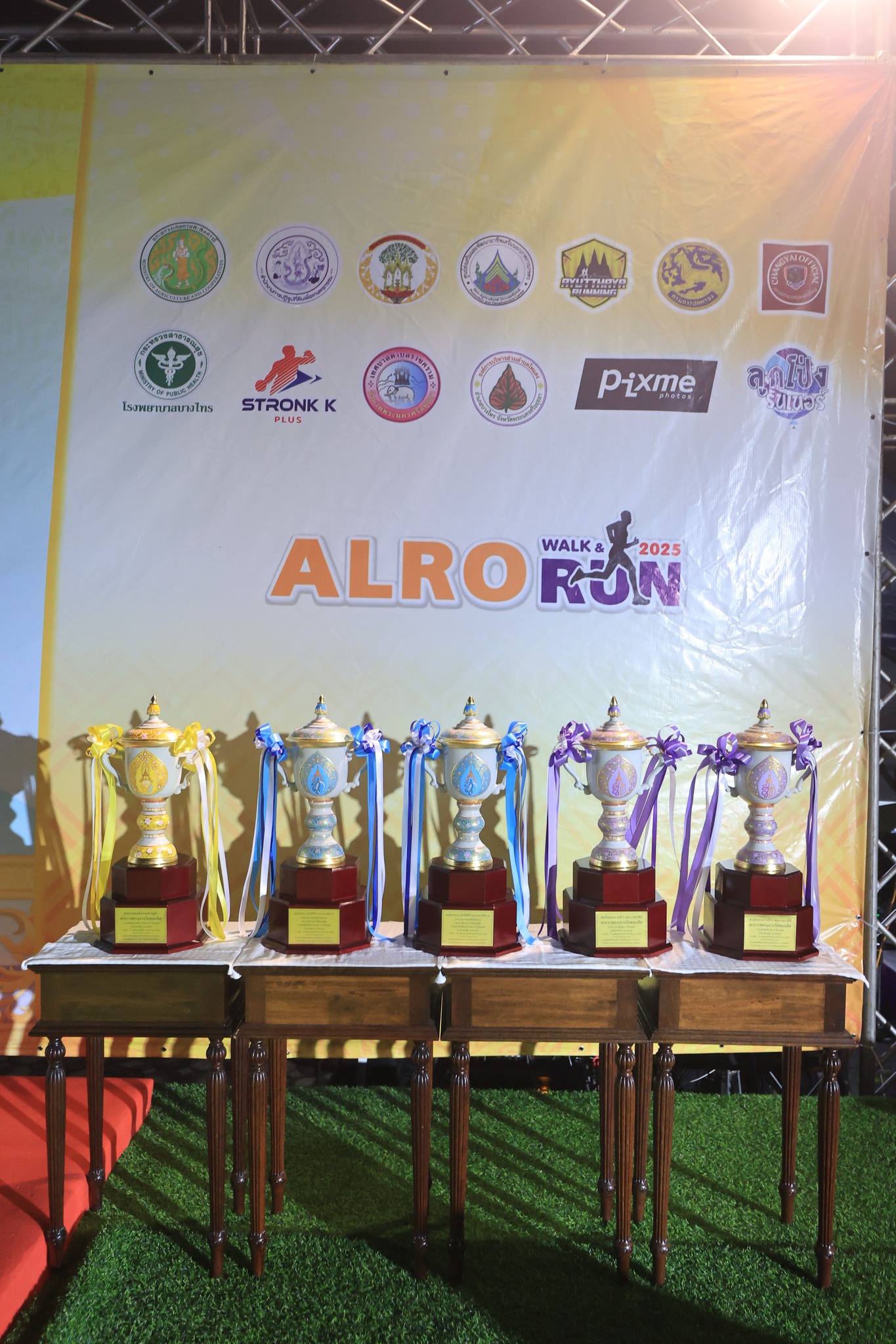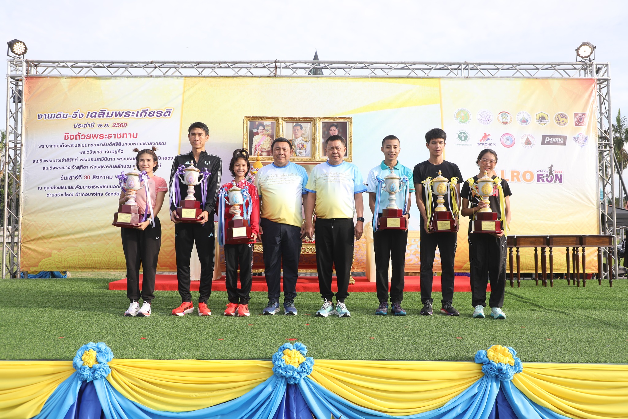 สำหรับ “งานเดิน - วิ่ง เฉลิมพระเกียรติ ประจำปี พ.ศ. 2568" ส.ป.ก. จัดขึ้นเพื่อเฉลิมพระเกียรติ เนื่องในโอกาส พระบาทสมเด็จพระเจ้าอยู่หัว เฉลิมพระชนพรรษา 73 พรรษา และสมเด็จพระนางเจ้าสิริกิติ์ พระบรมราชินีนาถ พระบรมราชชนนีพันปีหลวง เฉลิมพระชนพรรษา 93 พรรษา ด้วยสำนึกพระมหากรุณาธิคุณอย่างหาที่สุดมิได้ โดยร่วมกับ 6หน่วยงานบูรณาการ ได้แก่ จังหวัดพระนครศรีอยุธยา ชมรมนักวิ่งกรุงเก่าจังหวัดพระนครศรีอยุธยา ที่ว่าการอำเภอบางไทร สำนักงานการปฏิรูปที่ดินจังหวัดพระนครศรีอยุธยา เทศบาลตำบลราชคราม และองค์การบริหารส่วนตำบลโพแตง ซึ่งการเดิน – วิ่ง ชิงถ้วยพระราชทานครั้งนี้ มี 3 ระยะ ได้แก่ ฟันรัน ระยะทาง 5 กิโลเมตร มินิมาราธอน ระยะทาง 10 กิโลเมตร และฮาล์ฟมาราธอน ระยะทาง 21 กิโลเมตร ซึ่งชิงถ้วยพระราชทานดังนี้