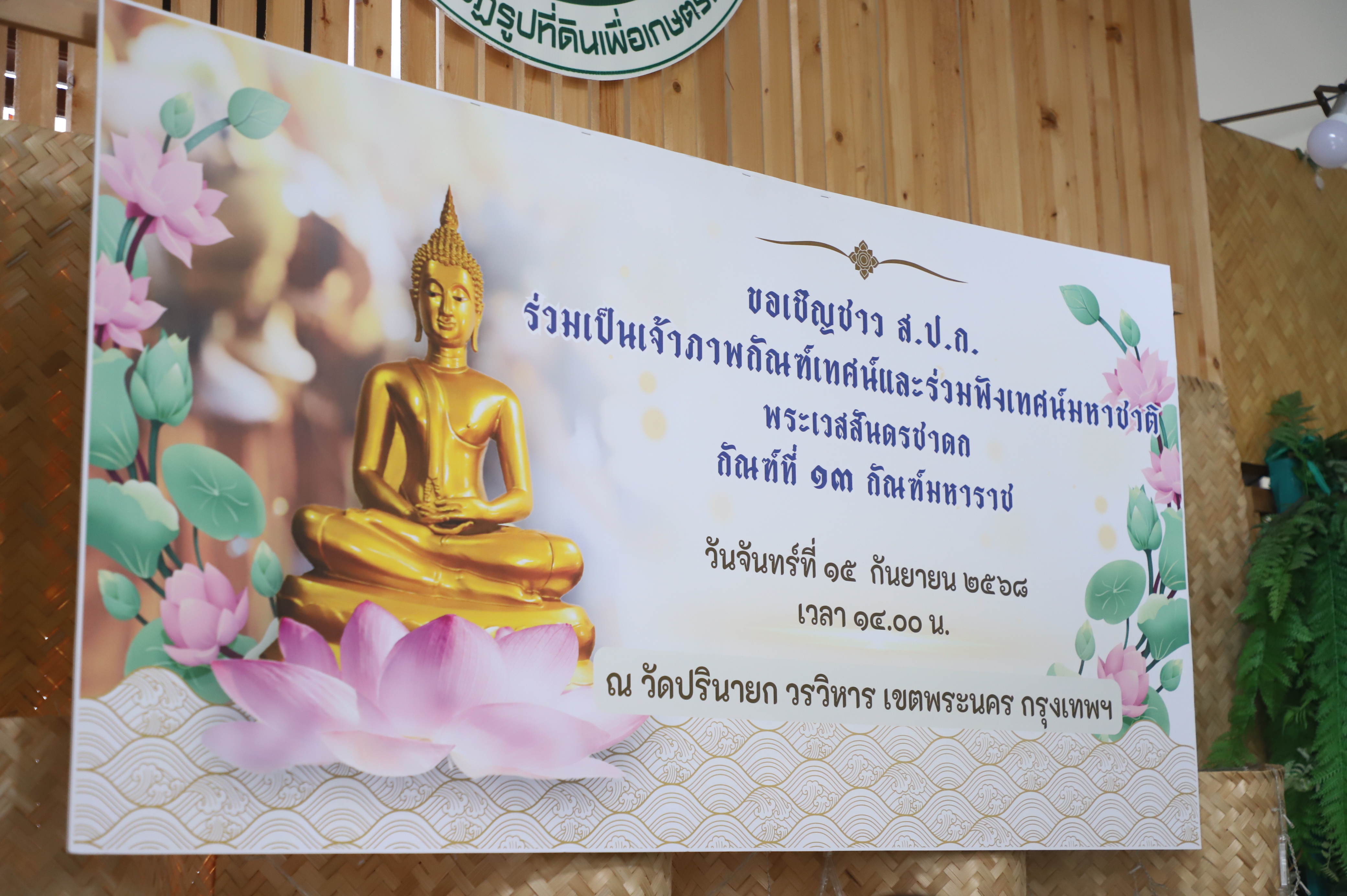 ส.ป.ก. ร่วมเป็นเจ้าภาพงานกัณฑ์เทศน์และร่วมฟังเทศน์มหาชาติเวสสันดรชาดก ณ วัดปรินายก วรวิหาร