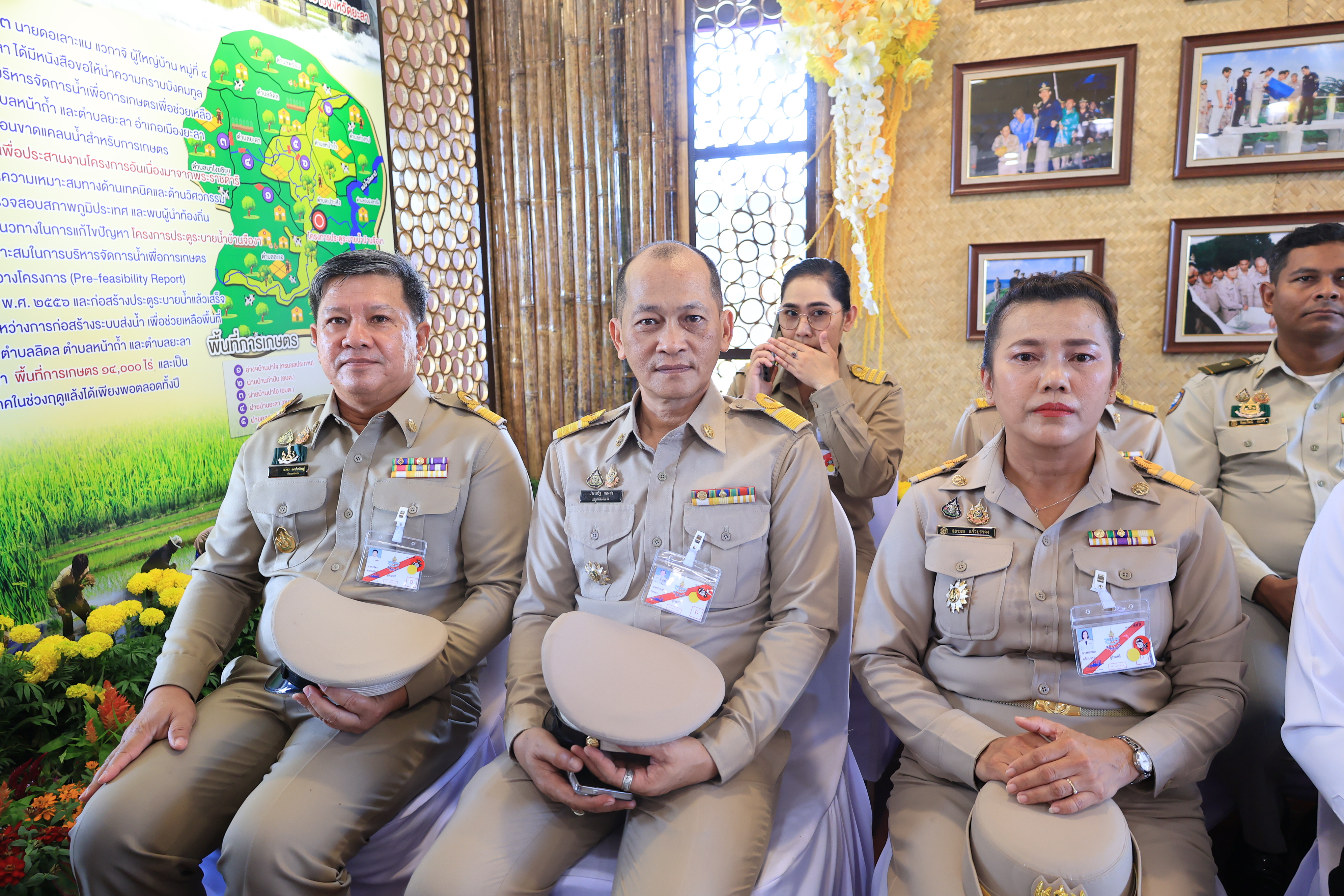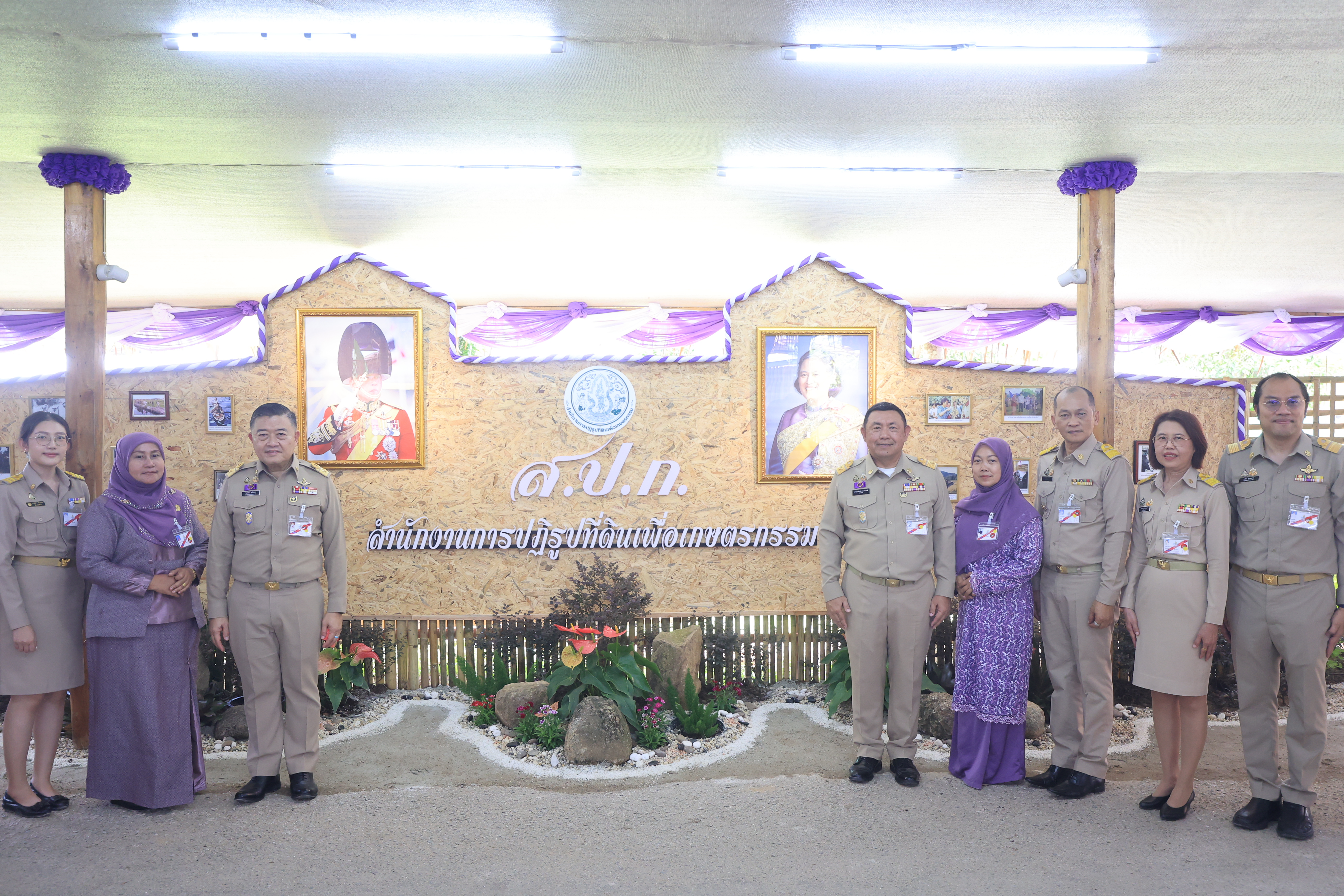 โอกาสนี้ นายเศรษฐเกียรติ กระจ่างวงษ์ เลขาธิการสำนักงานการปฏิรูปที่ดินเพื่อเกษตรกรรม (ส.ป.ก.) พร้อมด้วย นายประเสริฐ กองสง ปฏิรูปที่ดินจังหวัดนราธิวาส นางสาวปิยะนาฏ เทียนแขก ปฏิรูปที่ดินจังหวัดปัตตานี นายสุพัฒ มูลพฤกษ์ ปฏิรูปที่ดินจังหวัดนครปฐม และเจ้าหน้าที่ผู้เกี่ยวข้อง ร่วมเฝ้ารับเสด็จ