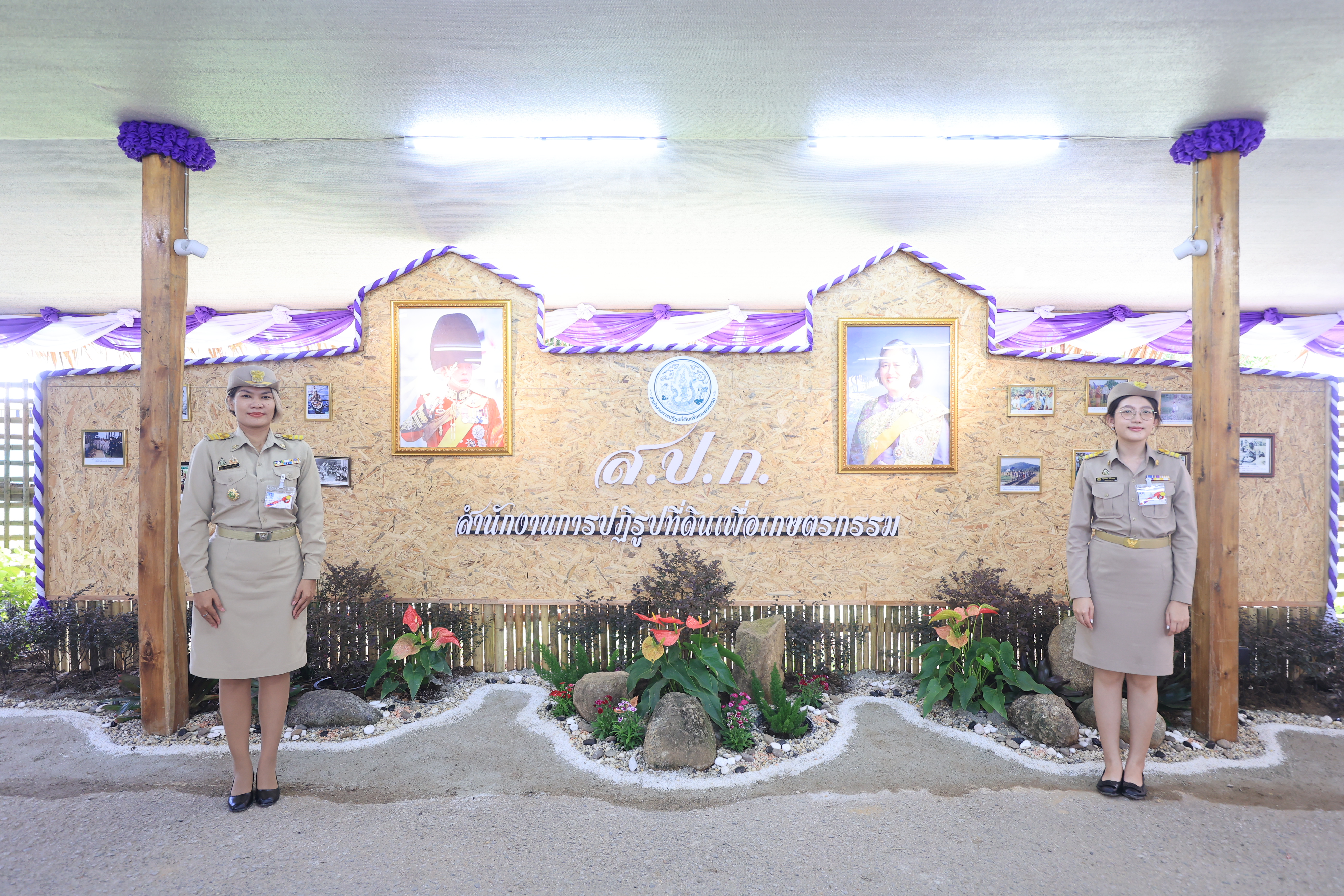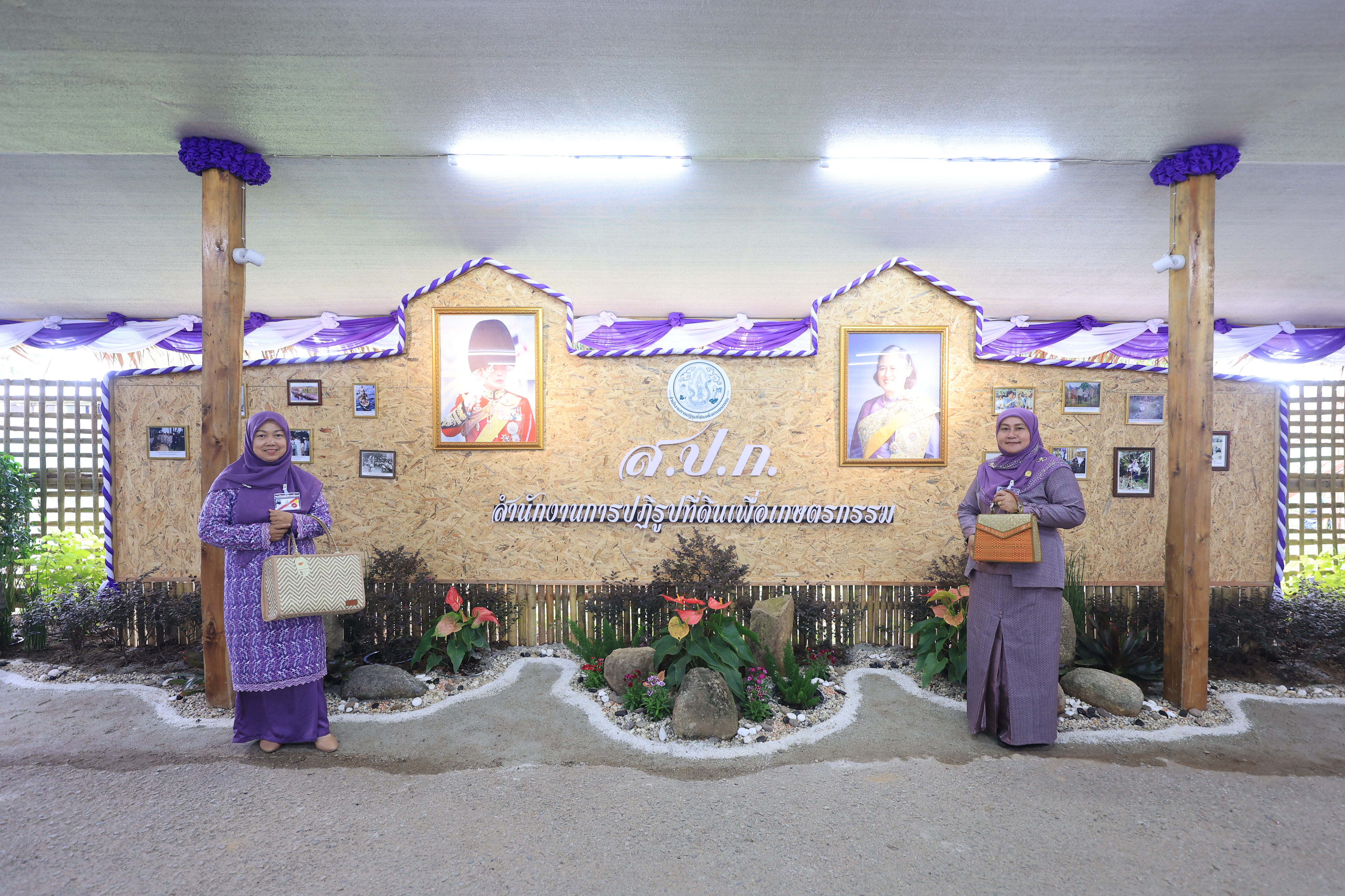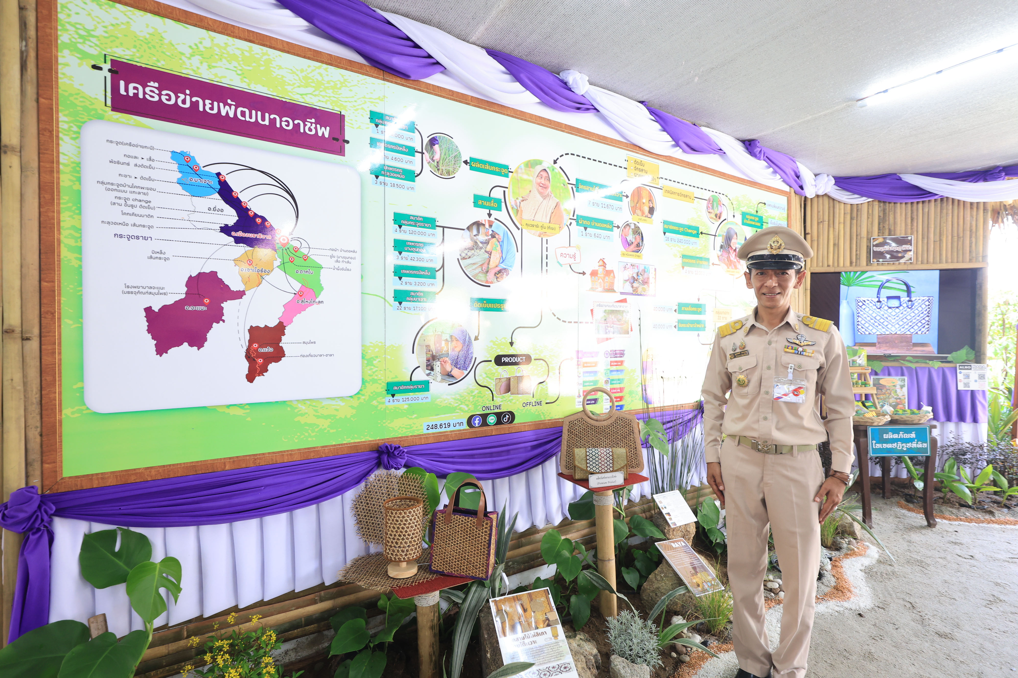 ในส่วนของ สำนักงานการปฏิรูปที่ดินเพื่อเกษตรกรรม (ส.ป.ก.) โดย สำนักงานการปฏิรูปที่ดินจังหวัดนราธิวาส (ส.ป.ก. นราธิวาส) ร่วมจัดนิทรรศการแสดงผลงาน โดยนำเสนอการพัฒนาอาชีพในเขตปฏิรูปที่ดินจังหวัดนราธิวาส มุ่งเน้นการสร้างรายได้และพัฒนาอาชีพให้กับคนในชุมชน โดยใช้ต้นกระจูดมาเป็นจุดเริ่มต้น ในการผลิตเป็นผลิตภัณฑ์ต่าง ๆ เช่น เสื่อกระจูด และ กระเป๋ากระจูด มีการเชื่อมโยงการทำงานตั้งแต่การปลูก การเก็บเกี่ยว ไปจนถึงการแปรรูป และการขายทั้งแบบออฟไลน์และออนไลน์ ซึ่งมีการกระจายรายได้กว่า 868,400 บาท การเชื่อมโยงเครือข่าย 13 หน่วยงาน 93 ราย มีเครือข่ายความรู้ ร่วมกับเครือข่าย Change ทั้งด้านการตัดเย็บ และการสานเสื่อกระจูดที่มีลวดลายที่เป็นเอกลักษณ์และสวยงาม รวมทั้งการฝากจำหน่ายสินค้าระหว่างกลุ่ม ทำให้เป็นการกระจายรายได้ระหว่างกลุ่ม ทั้งนี้กลุ่มกระจูดรายา ยังได้ถ่ายทอดความรู้ให้แก่สถานศึกษาในพื้นที่ เพื่อต่อยอดภูมิปัญญาและสร้างรายได้ให้แก่เยาวชนรุ่นหลัง แสดงให้ถึงความสำเร็จในการนำภูมิปัญญาท้องถิ่น มาสร้างมูลค่าทางเศรษฐกิจให้กับชุมชนได้อย่างเป็นระบบและยั่งยืน