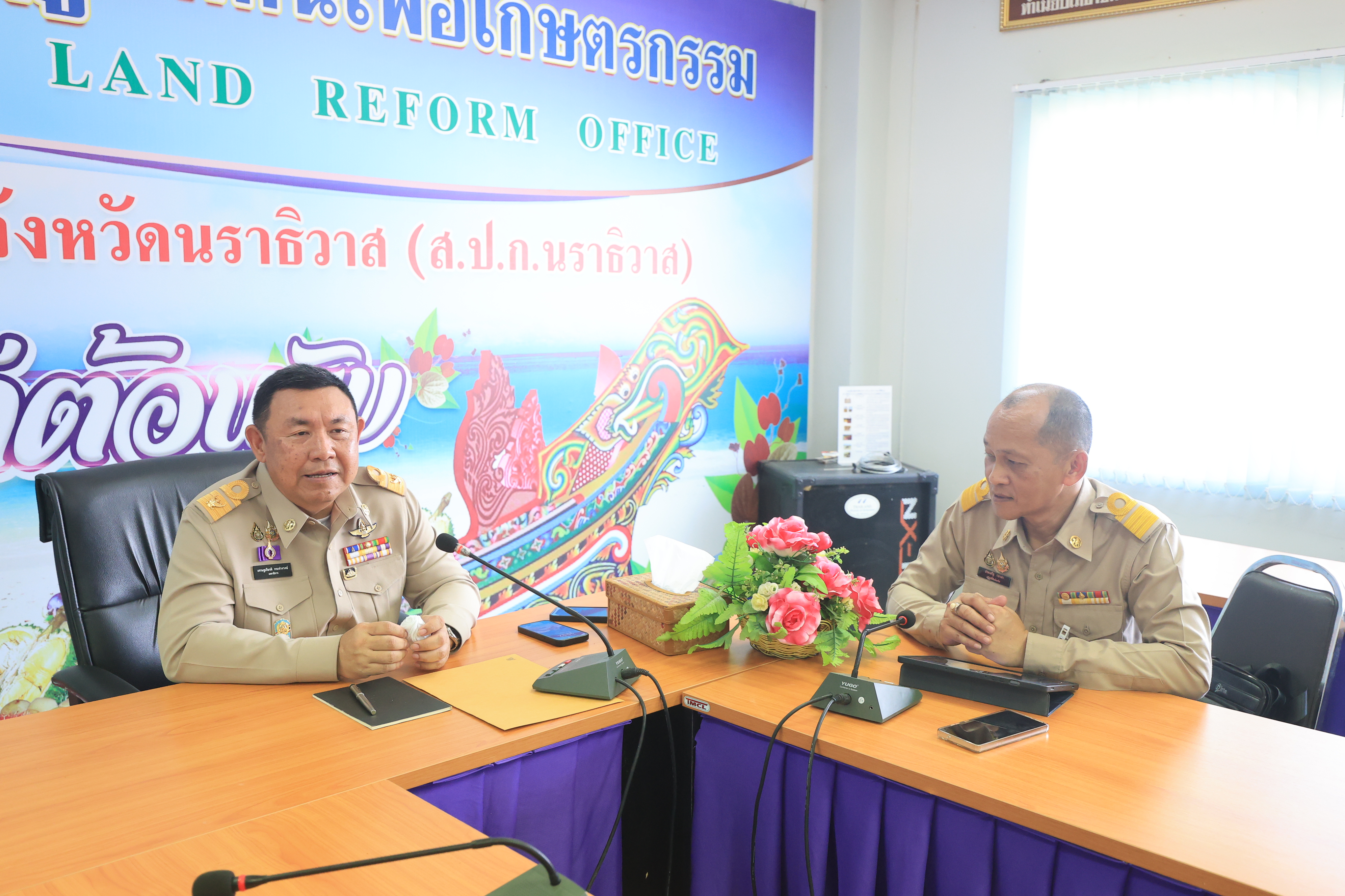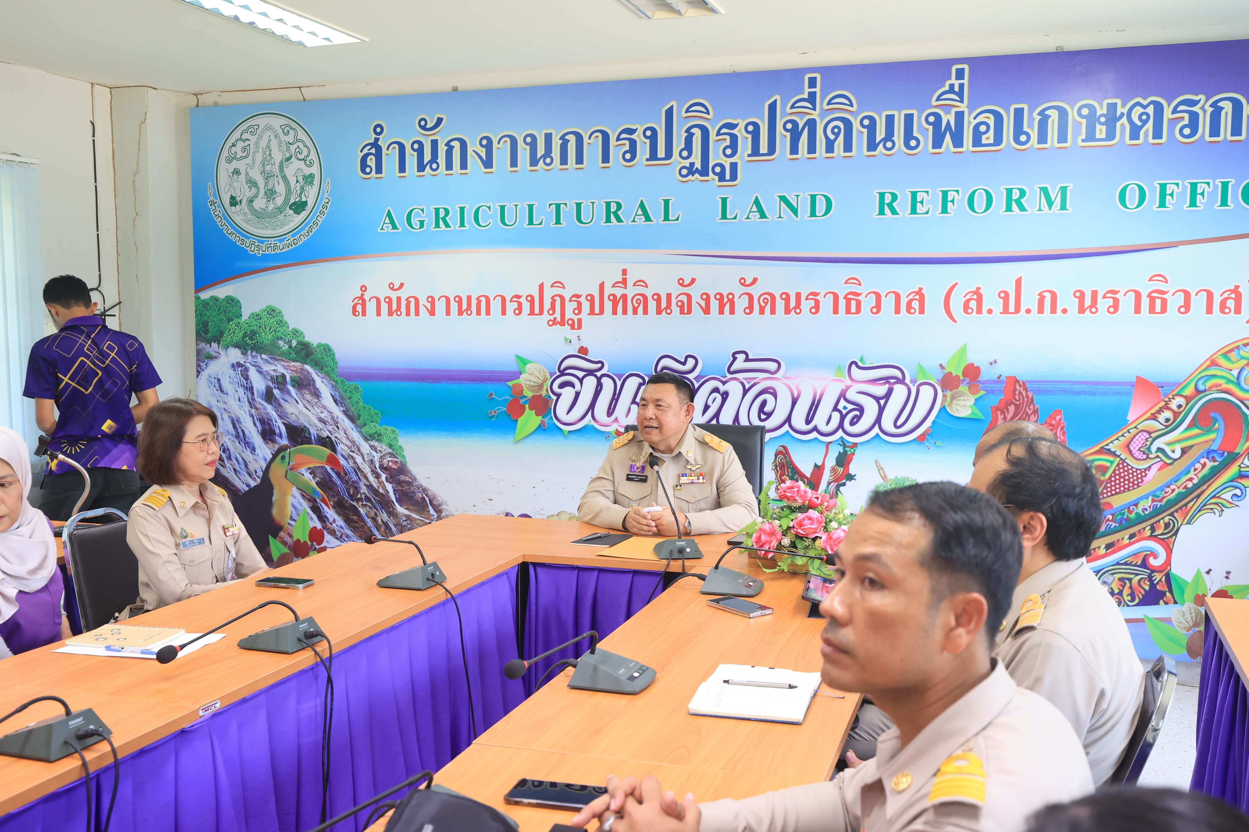 ในการนี้ ส.ป.ก. นราธิวาส ได้รายงานความก้าวหน้าการปฏิบัติราชการ อาทิ การจัดที่ดิน การออกโฉนดเพื่อการเกษตร รายงานปัญหาและอุปสรรคในการปฏิบัติงานต่าง ๆ โดย เลขาธิการ ส.ป.ก. ได้มอบแนวทางการปฏิบัติงาน พร้อมทั้งให้กำลังใจข้าราชการและเจ้าหน้าที่ ให้ปฏิบัติงานด้วยความซื่อสัตย์สุจริตและเต็มกำลังความสามารถ เพื่อให้งานสำเร็จลุล่วงไปได้ด้วยดี เพื่อให้ผลการปฏิบัติงานสำเร็จตามแผนงาน และสร้างประโยชน์สุขให้แก่เกษตรกรได้อยู่ดีมีสุขอย่างยั่งยืนต่อไป