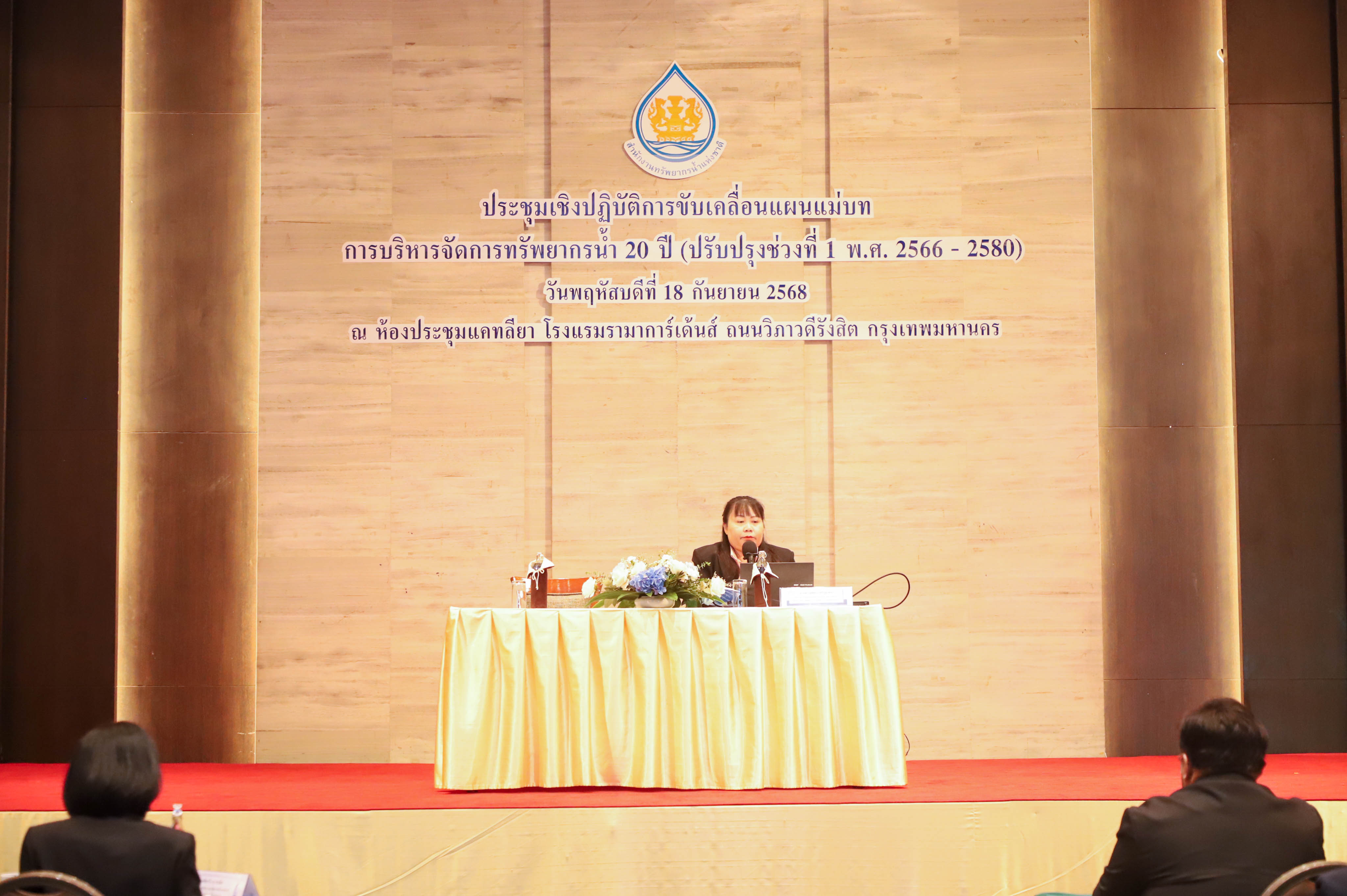นายเศรษฐเกียรติ กระจ่างวงษ์ เลขาธิการ ส.ป.ก. มอบหมายให้ นายสมศักดิ์ การเจริญกุลวงศ์ ผู้ตรวจราชการกรม พร้อมด้วยเจ้าหน้าที่ที่เกี่ยวข้อง ร่วมการประชุมเชิงปฏิบัติการขับเคลื่อนแผนแม่บทการบริหารจัดการทรัพยากรน้ำ 20 ปี (ปรับปรุงช่วงที่ 1 พ.ศ. 2566 - 2580) โดยมี นางพัชรวีร์ สุวรรณิก รองเลขาธิการสำนักงานทรัพยากรน้ำแห่งชาติ (สทนช.) เป็นประธานเปิดงาน ณ ห้องประชุม แคทลียา โรงแรมรามา การ์เด้นส์ กรุงเทพฯ ในวันที่ 18 กันยายน 2568