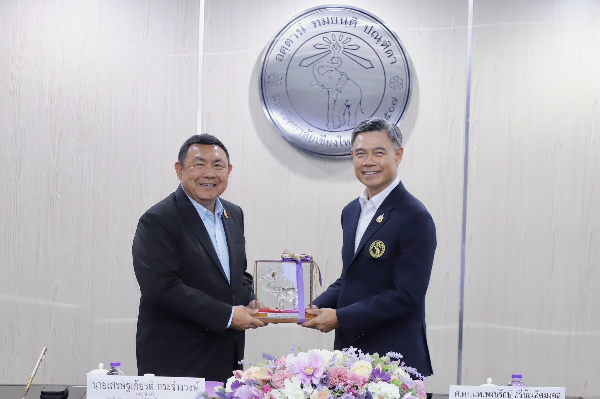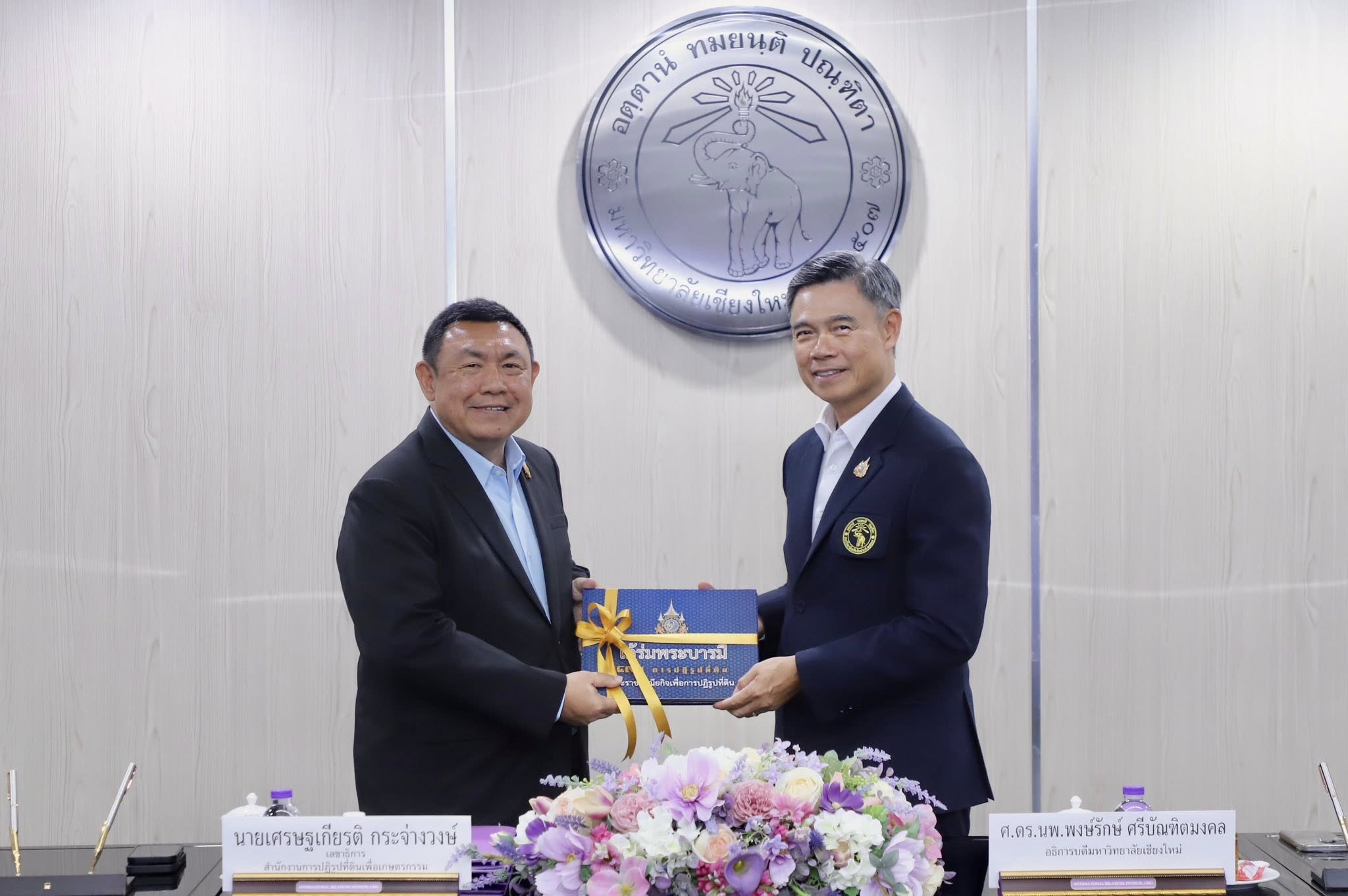 วันจันทร์ที่ 22 กันยายน 2568 เวลา 15.00 น. นายเศรษฐเกียรติ กระจ่างวงษ์ เลขาธิการสำนักงานการปฏิรูปที่ดินเพื่อเกษตรกรรม (ส.ป.ก.) เดินทางไปยังห้องพระยาศรีวิสารวาจา สำนักงานมหาวิทยาลัย มหาวิทยาลัยเชียงใหม่ เพื่อลงนามบันทึกข้อตกลงความร่วมมือกับมหาวิทยาลัยเชียงใหม่ ว่าด้วยเรื่องการขับเคลื่อนขยายผลการพัฒนาตามแนวพระราชดำริไปสู่เขตปฏิรูปที่ดิน กับ ศาสตราจารย์ ดร.นพ.พงษ์รักษ์ ศรีบัณฑิตมงคล อธิการบดีมหาวิทยาลัยเชียงใหม่ โดยมี นายปรีชา ลิ้มถวิล รองเลขาธิการ ส.ป.ก. , นางสาวฐิภาพรรณ พึ่งไพฑูรย์ หัวหน้าผู้ตรวจราชการกรม , ผู้บริหาร ปฏิรูปที่ดินจังหวัดภาคเหนือ คณาจารย์ บุคลากร มหาวิทยาลัยเชียงใหม่ และข้าราชการ เจ้าหน้าที่ ส.ป.ก. ร่วมเป็นเกียรติและสักขีพยานในโอกาสพิธีลงนามบันทึกข้อตกลงความร่วมมือในครั้งนี้