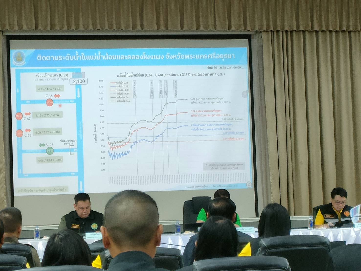 เวลา 11.30 น. รองนายกรัฐมนตรี และ รมว.กษ. เป็นประธานการประชุมเพื่อรับฟังสถานการณ์น้ำในพื้นที่จังหวัดชัยนาท ณ ห้องประชุมพระครูวิมลคุณากร สำนักงานชลประทานที่ 12 ตำบลบางหลวง อำเภอสรรพยา จังหวัดชัยนาท และลงพื้นที่ตรวจติดตามสถานการณ์น้ำที่เขื่อนเจ้าพระยา จังหวัดชัยนาท โดยในพื้นที่จังหวัดลพบุรี ได้ลงพื้นที่ ณ เขื่อนป่าสักชลสิทธิ์ ตำบลหนองบัว อำเภอพัฒนานิคม จังหวัดลพบุรี และในพื้นที่จังหวัดพระนครศรีอยุธยา ได้ลงพื้นที่ ณ เขื่อนพระราม 6 ตำบลท่าหลวง อำเภอท่าเรือ จังหวัดพระนครศรีอยุธยา ทั้งนี้ รองนายกรัฐมนตรี และ รมว.กษ. ได้มอบหมายให้ กรมชลประทาน โดยสำนักงานชลประทานที่ 12 เร่งกำจัดผักตบชวาและสิ่งกีดขวางทางน้ำ เพื่อเพิ่มประสิทธิภาพการระบายน้ำ รวมทั้งประสานหน่วยงานที่เกี่ยวข้อง วางแผนขุดลอกแม่น้ำเจ้าพระยา เพื่อเตรียมความพร้อมรองรับมือทั้งสถานการณ์ภัยแล้งและน้ำท่วม อีกทั้งกำชับให้บำรุงรักษาอาคารชลประทานอย่างต่อเนื่อง จัดเตรียมเครื่องจักร เครื่องมือ และบุคลากรให้สามารถปฏิบัติงานได้ตลอด 24 ชั่วโมง บูรณาการทำงานร่วมกับผู้ว่าราชการจังหวัดและหน่วยงานท้องถิ่นอย่างใกล้ชิด เพื่อเร่งบรรเทาผลกระทบและช่วยเหลือประชาชนในพื้นที่ให้ได้มากที่สุด จากการตรวจติดตามสถานการณ์น้ำทั้ง 3 เขื่อน ซึ่งทั้ง 3 เขื่อนมีความสำคัญต่อการเก็บกักและการระบายน้ำ มีการเชื่อมโยงกับพื้นที่เกษตรกรรมหลายจังหวัด โดย รองนายกรัฐมนตรี และ รมว.กษ. ได้กล่าวว่า นายกรัฐมนตรี และรัฐบาลให้ความสำคัญอย่างยิ่งต่อการบริหารจัดการน้ำ เพราะปัญหาน้ำท่วมและภัยแล้งส่งผลกระทบโดยตรงต่อชีวิตความเป็นอยู่ของประชาชนและผลผลิตทางการเกษตร เราต้องทำงานเชิงรุกและทำงานร่วมกันแบบบูรณาการ ทั้งกรมชลประทาน กรมทรัพยากรน้ำ กรมส่งเสริมการเกษตร และองค์กรปกครองส่วนท้องถิ่น ต้องเชื่อมโยงข้อมูลและทำงานเป็นทีม เพื่อป้องกันความเสียหายและสร้างความเชื่อมั่นให้กับเกษตรกร และขอให้ความเชื่อมั่นคน กทม. ได้ว่า สถานการณ์น้ำในปีนี้จะไม่ส่งผลกระทบต่อพื้นที่ กทม. อย่างแน่นอน