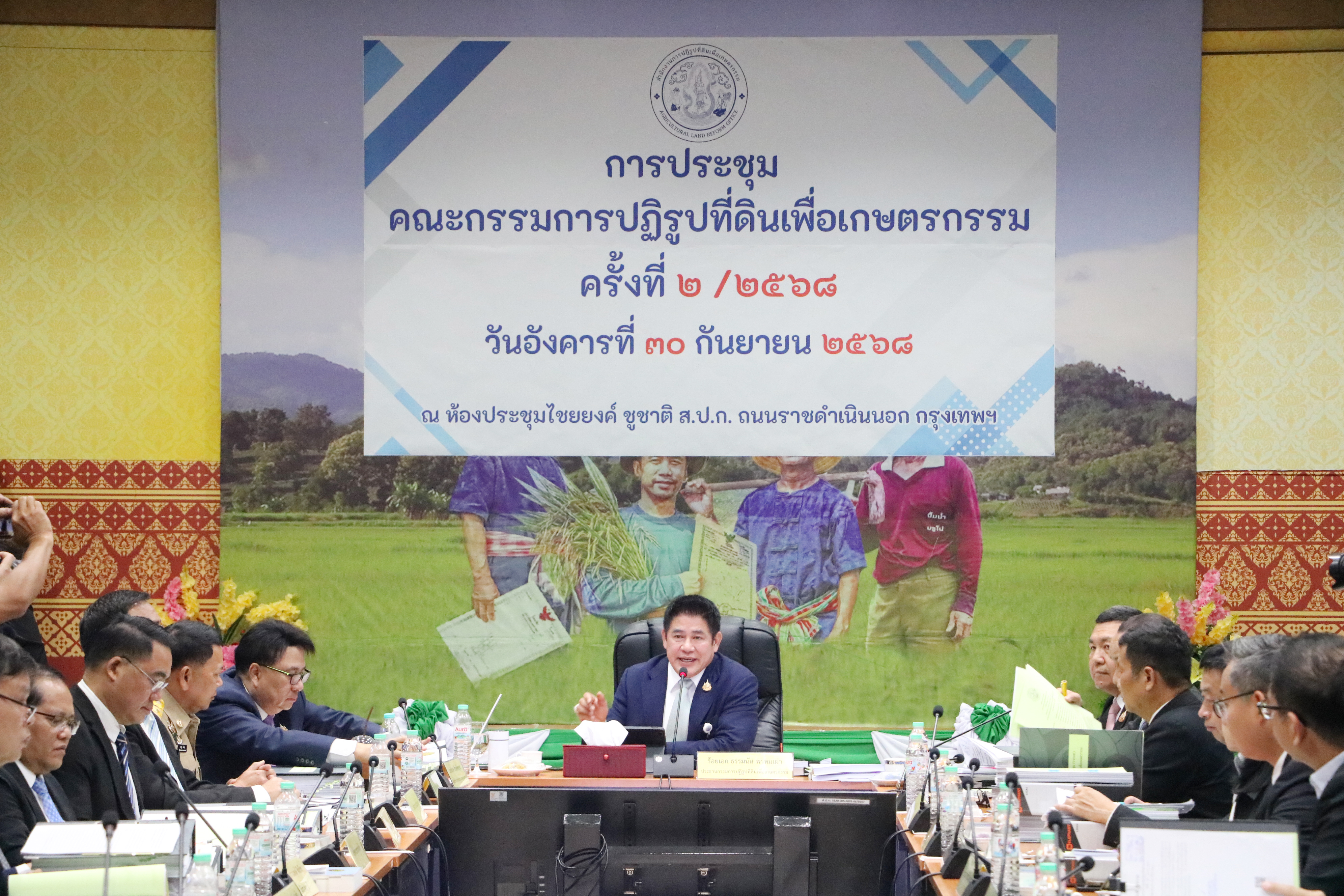 ร้อยเอก ธรรมนัส พรหมเผ่า รองนายกรัฐมนตรี และรัฐมนตรีว่าการกระทรวงเกษตรและสหกรณ์ เป็นประธานการประชุมคณะกรรมการปฏิรูปที่ดินเพื่อเกษตรกรรม (คปก.) ครั้งที่ 2/2568 พร้อมด้วย นายนเรศ ธำรงค์ทิพยคุณ รัฐมนตรีช่วยว่าการกระทรวงเกษตรและสหกรณ์ เป็นรองประธานการประชุม ร่วมด้วย นายเศรษฐเกียรติ กระจ่างวงษ์ เลขาธิการสำนักงานการปฏิรูปที่ดินเพื่อเกษตรกรรม (ส.ป.ก.) ณ ห้องประชุมไชยยงค์ ชูชาติ ส.ป.ก. ถนนราชดำเนินนอก กรุงเทพฯ ในวันที่ 30 กันยายน 2568 เวลา 09.30 น.