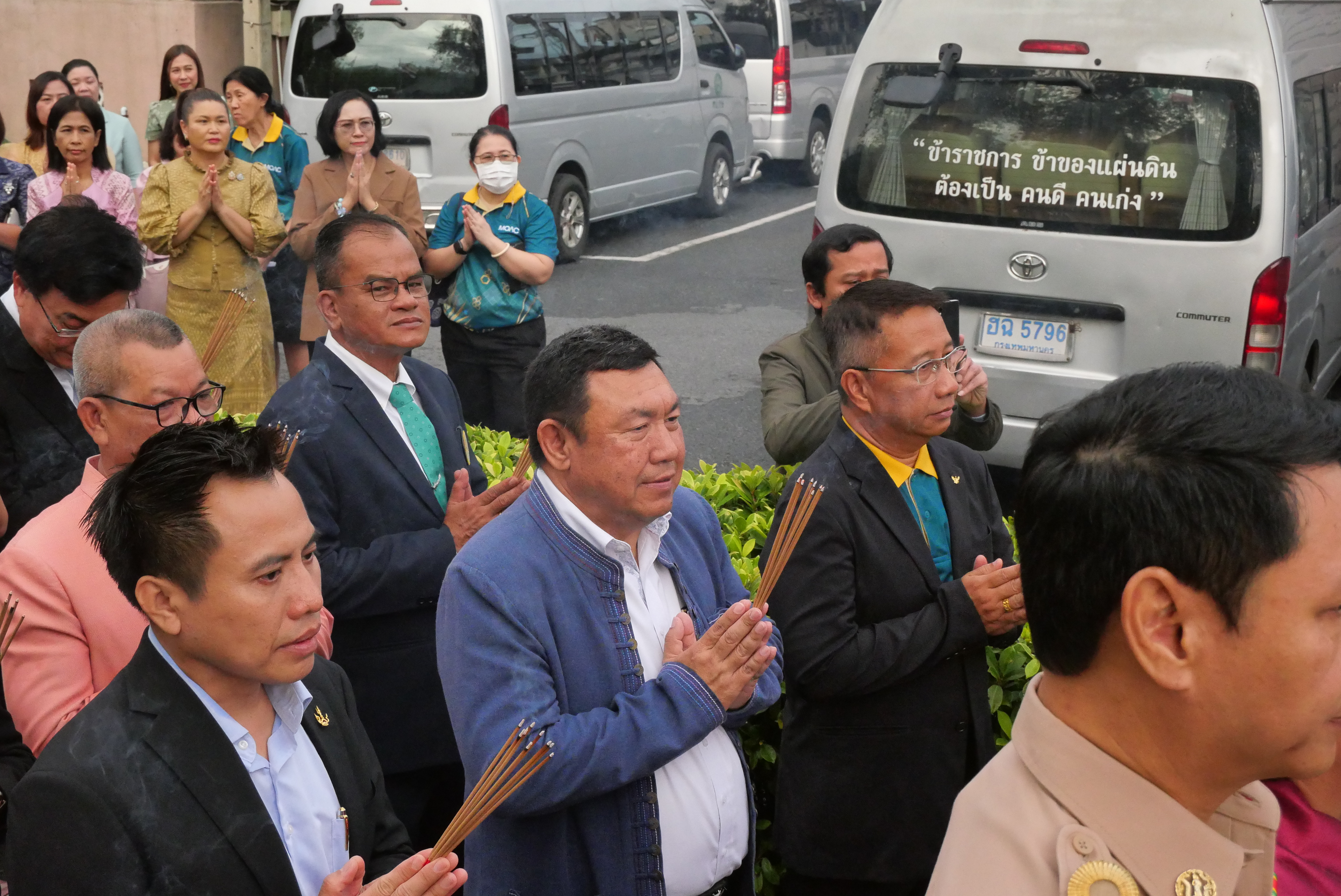 คณะผู้บริหาร ส.ป.ก. ร่วมพิธีสักการะสิ่งศักดิ์สิทธิ์ประจำกระทรวงเกษตรและสหกรณ์ และแสดงความยินดี เนื่องในโอกาส ปลัดกระทรวงเกษตรและสหกรณ์ เข้ารับตำแหน่งใหม่