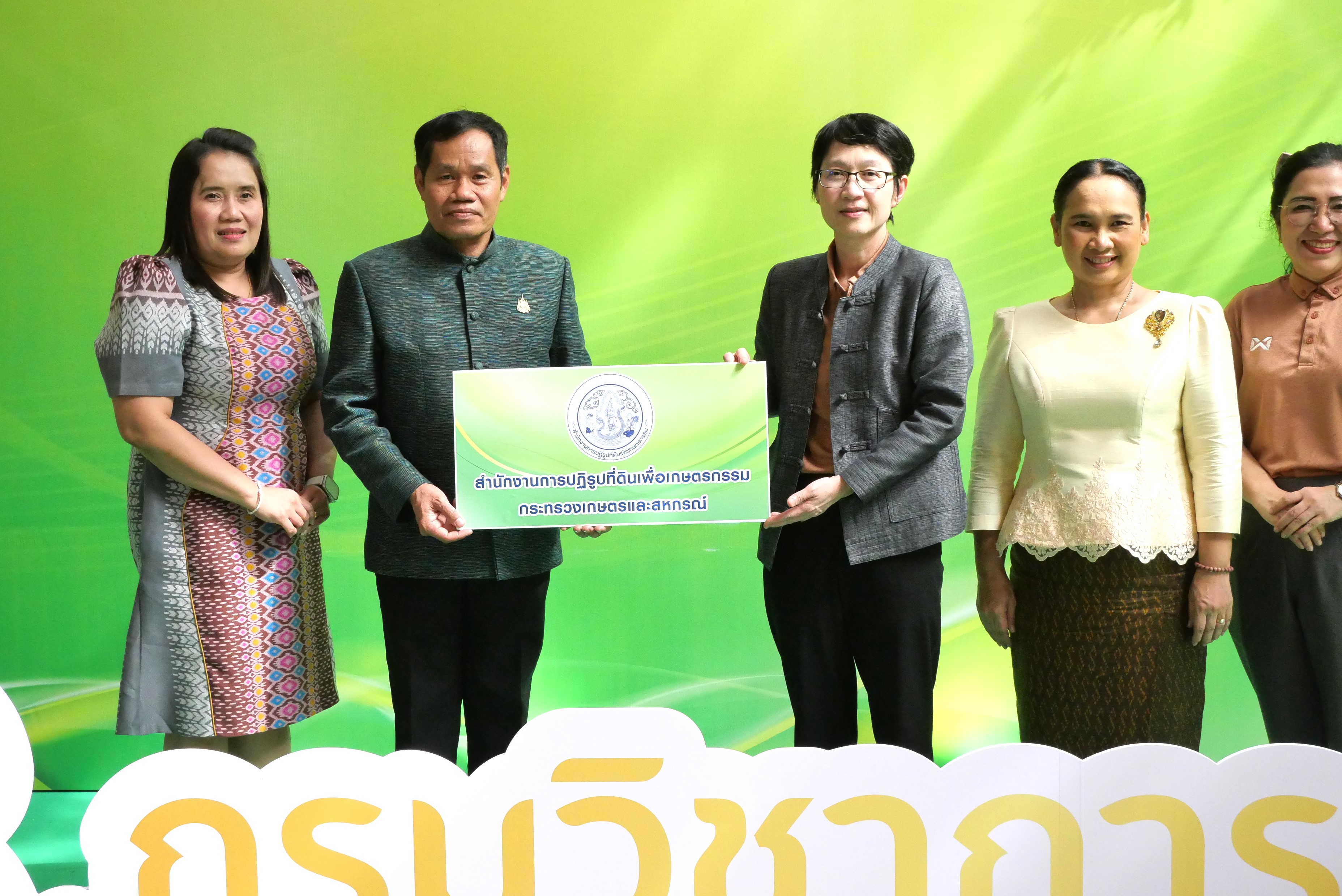วันพุธที่ 1 ตุลาคม 2568 นายเศรษฐเกียรติ กระจ่างวงษ์ เลขาธิการสำนักงานการปฏิรูปที่ดินเพื่อเกษตรกรรม (เลขาธิการ ส.ป.ก.) มอบหมายให้ นายกฤตวิทย์ พิมพ์ทองงาม ผู้ตรวจราชการกรม ส.ป.ก. ร่วมเป็นเกียรติและแสดงความยินดีในโอกาสวันคล้ายวันสถาปนากรมวิชาการเกษตร ครบรอบปีที่ 53 ณ บริเวณโถง ชั้น 1 อาคารศูนย์ปฏิบัติการฝึกอบรมและถ่ายทอดเทคโนโลยี กรมวิชาการเกษตร เกษตรกลาง บางเขน เขตจตุจักร กรุงเทพมหานคร ในการนี้ ส.ป.ก. ร่วมบริจาคสมทบทุนให้กับกองทุนสวัสดิการกรมวิชาการเกษตร โดยมี นางสาวปรียานุช ทิพยะวัฒน์ รองอธิบดีกรมวิชาการเกษตร เป็นผู้รับมอบ