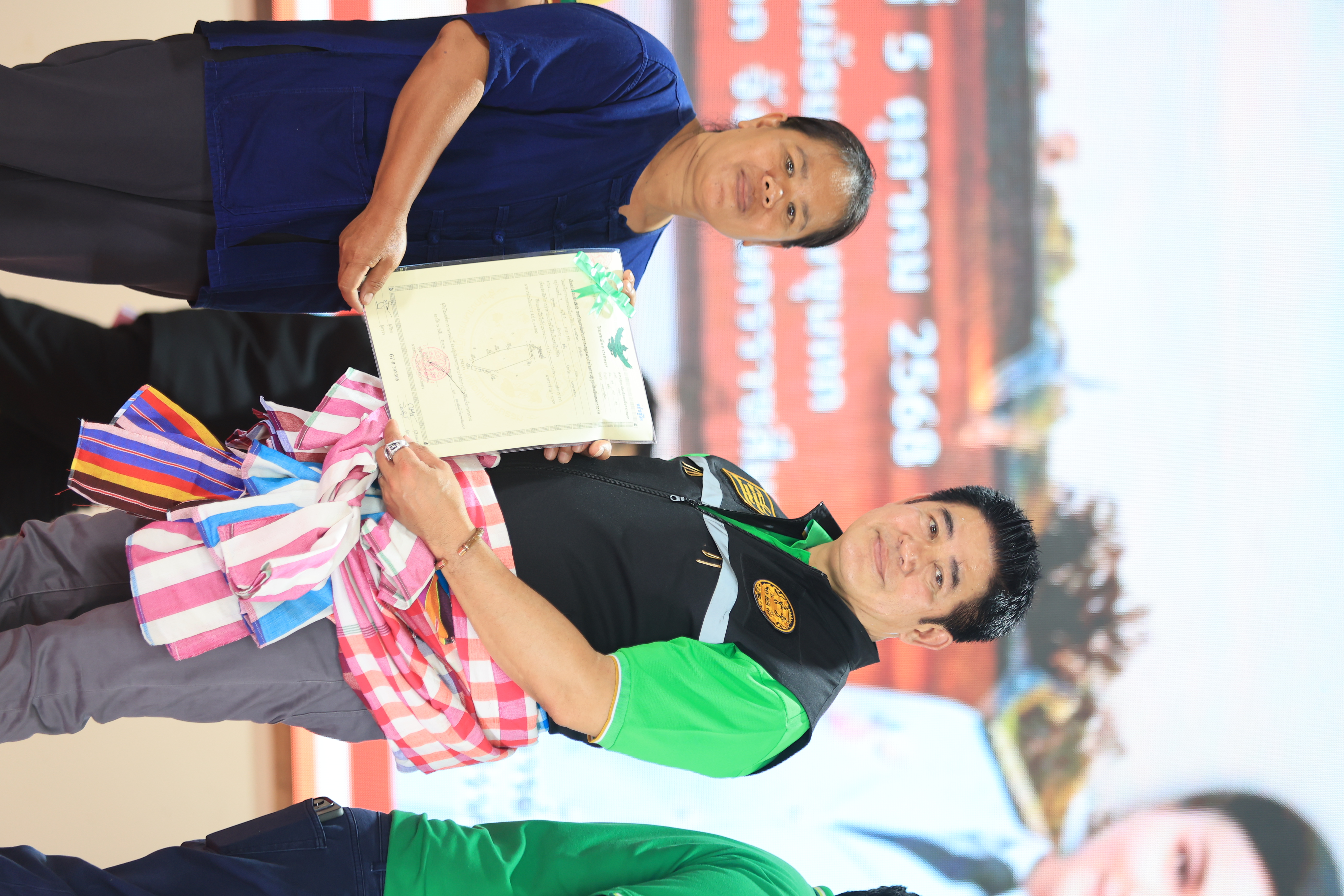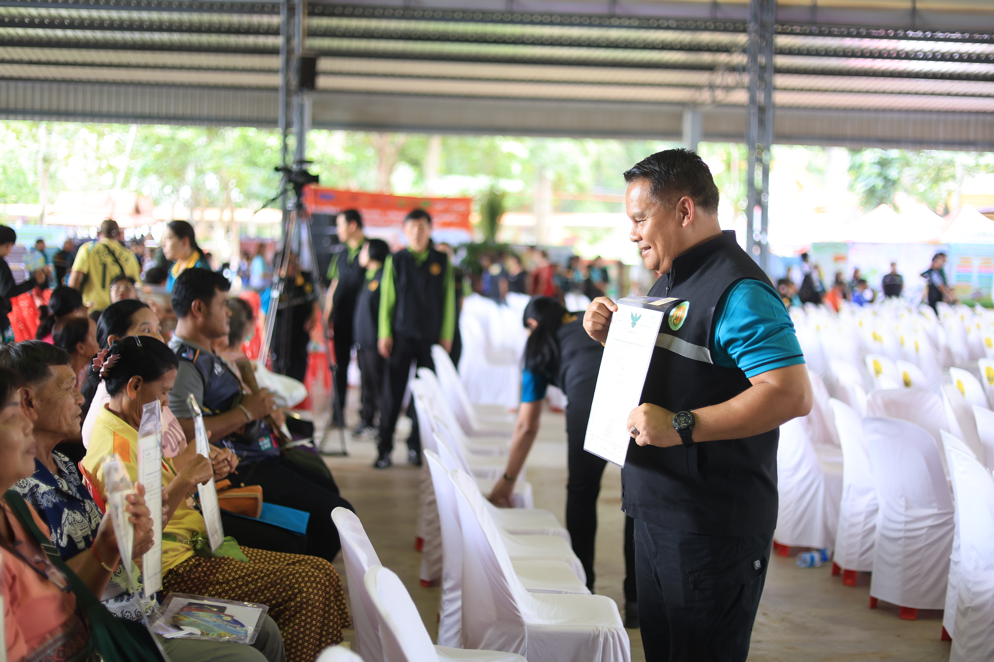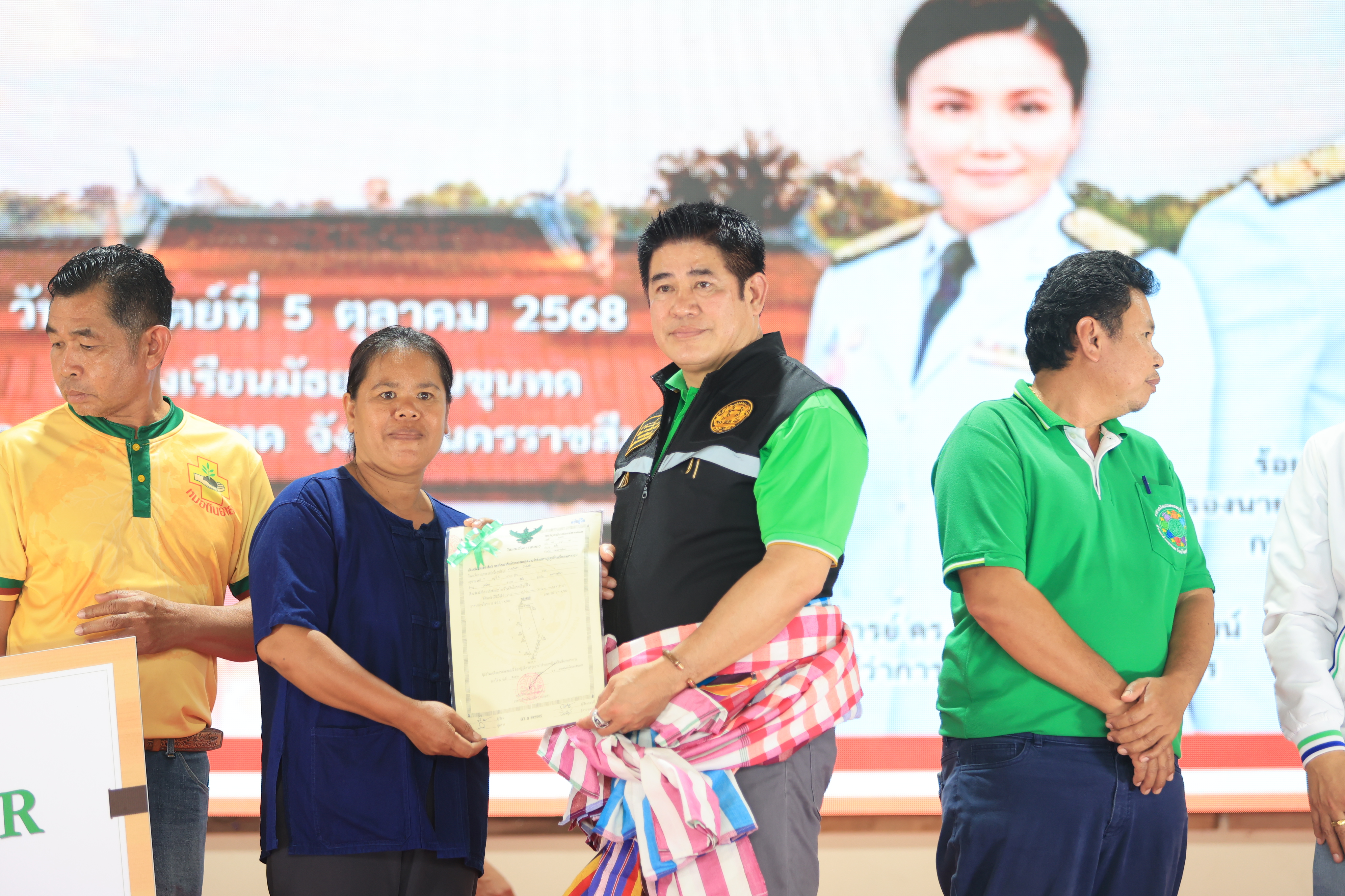 ในการนี้ สำนักงานการปฏิรูปที่ดินเพื่อเกษตรกรรม โดย สำนักงานการปฏิรูปที่ดินจังหวัดนครราชสีมา (ส.ป.ก. นครราชสีมา) ได้จัดพิธีมอบโฉนดเพื่อการเกษตร จำนวน 126 ราย 126 แปลง นอกจากนี้ ได้มีการมอบเงินช่วยเหลือโครงการสนับสนุนช่วยเหลือเกษตรกรผู้ปลูกข้าวนาปีและส่งเสริมการเพาะปลูกให้เหมาะสมกับศักยภาพพื้นที่ ปีการผลิต 2568/69 ท่อนพันธุ์มันสำปะหลัง ปัจจัยการผลิตปรับปรุงบำรุงดิน เมล็ดพันธุ์หญ้าอาหารสัตว์ และเยี่ยมชมนิทรรศการจากหน่วยงานต่าง ๆ ที่มาให้ความรู้และบริการแก่เกษตรกรในพื้นที่อีกด้วย