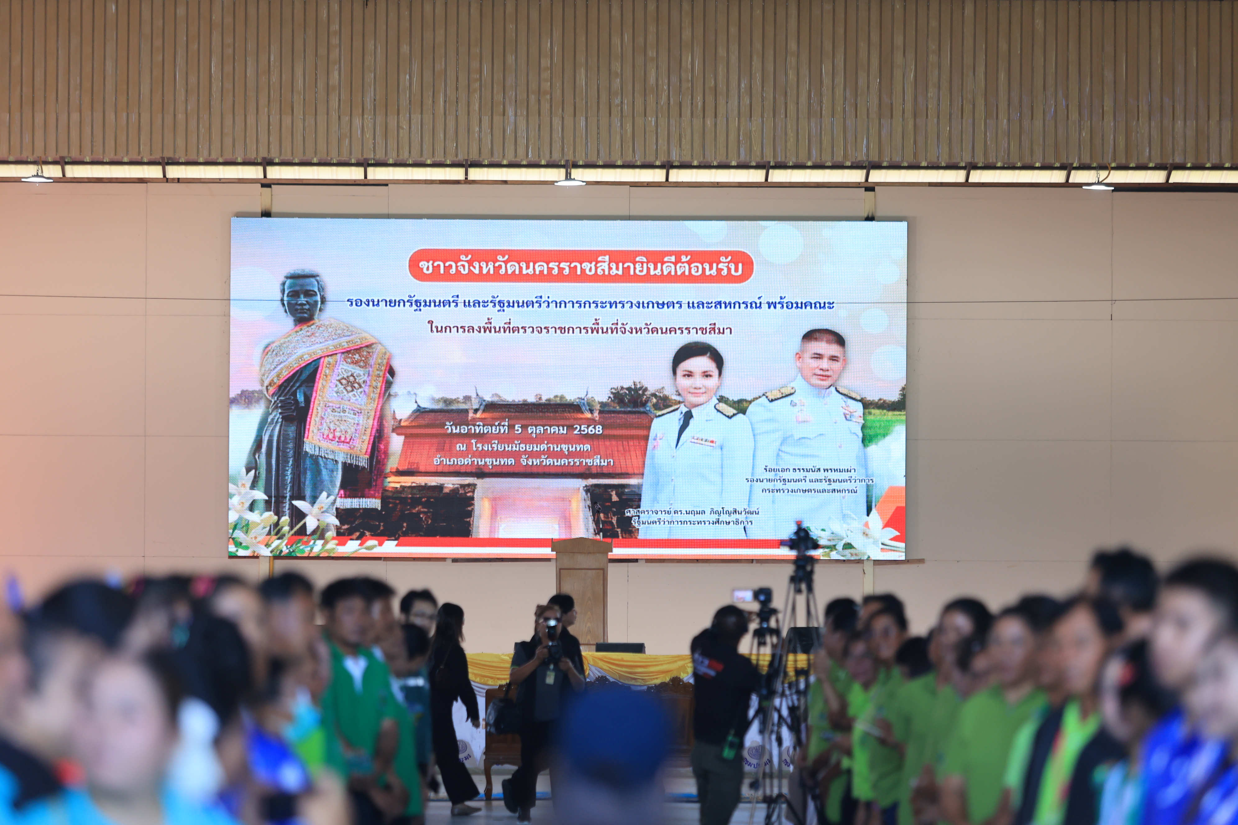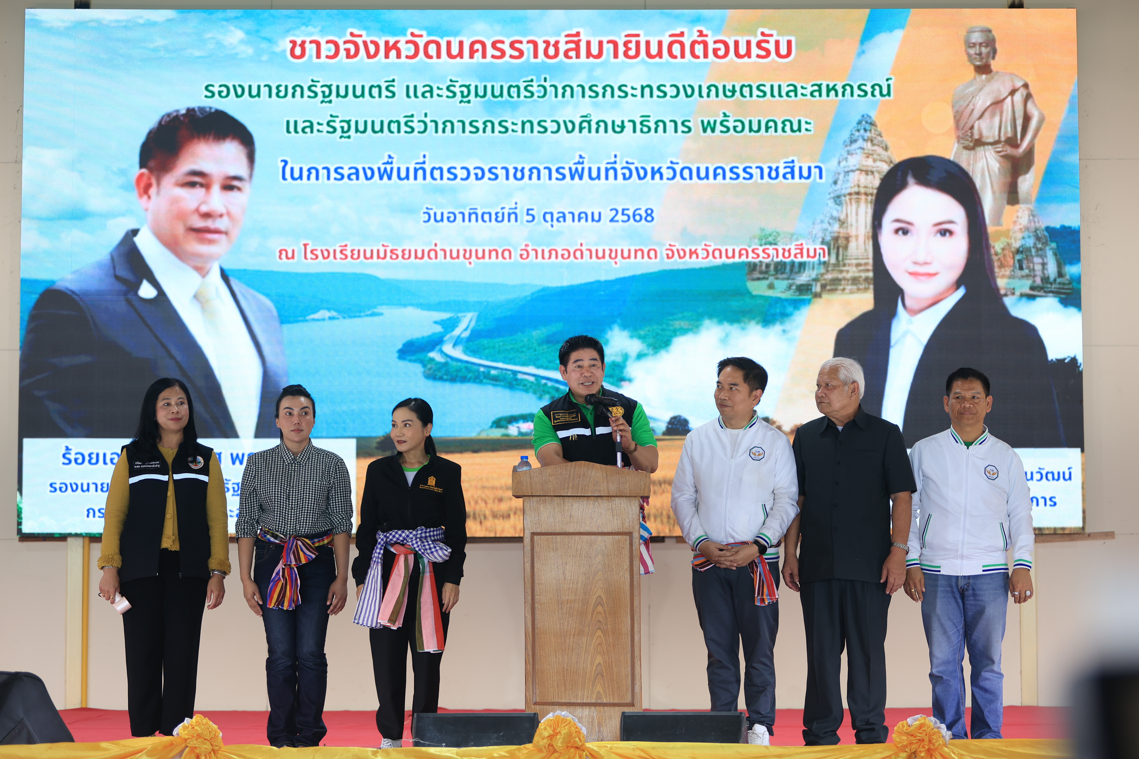 5 ตุลาคม 2568 เวลา 10.00 น. นายเศรษฐเกียรติ กระจ่างวงษ์ เลขาธิการ ส.ป.ก. พร้อมด้วย นายอำมริต คงแก้ว ปฏิรูปที่ดินจังหวัดนครราชสีมา ปฏิรูปที่ดินจังหวัดภาคตะวันออกเฉียงเหนือ และเจ้าหน้าที่ผู้เกี่ยวข้อง ร่วมติดตามรองนายกรัฐมนตรี และรัฐมนตรีว่าการกระทรวงเกษตรและสหกรณ์ (ร้อยเอก ธรรมนัส พรหมเผ่า) พร้อมด้วย รัฐมนตรีว่าการกระทรวงศึกษาธิการ (ศ.ดร.นฤมล ภิญโญสินวัฒน์) นายวิณะโรจน์ ทรัพย์ส่งสุข ปลัดกระทรวงเกษตรและสหกรณ์ ผู้บริหารกระทรวงเกษตรและสหกรณ์ และหน่วยงานที่เกี่ยวข้อง ลงพื้นที่ตรวจราชการ ในเขตพื้นที่อำเภอด่านขุนทด จังหวัดนครราชสีมา โดยมี หน่วยงานส่วนท้องถิ่น และเกษตรกร เข้าร่วม ซึ่งรองนายกรัฐมนตรี และรัฐมนตรีว่าการกระทรวงเกษตรและสหกรณ์ (ร้อยเอก ธรรมนัส พรหมเผ่า) ได้มอบนโยบายและรับฟังปัญหาของเกษตรกร ณ โรงเรียนมัธยมด่านขุนทด ตำบลด่านขุนทด อำเภอด่านขุนทด จังหวัดนครราชสีมา
