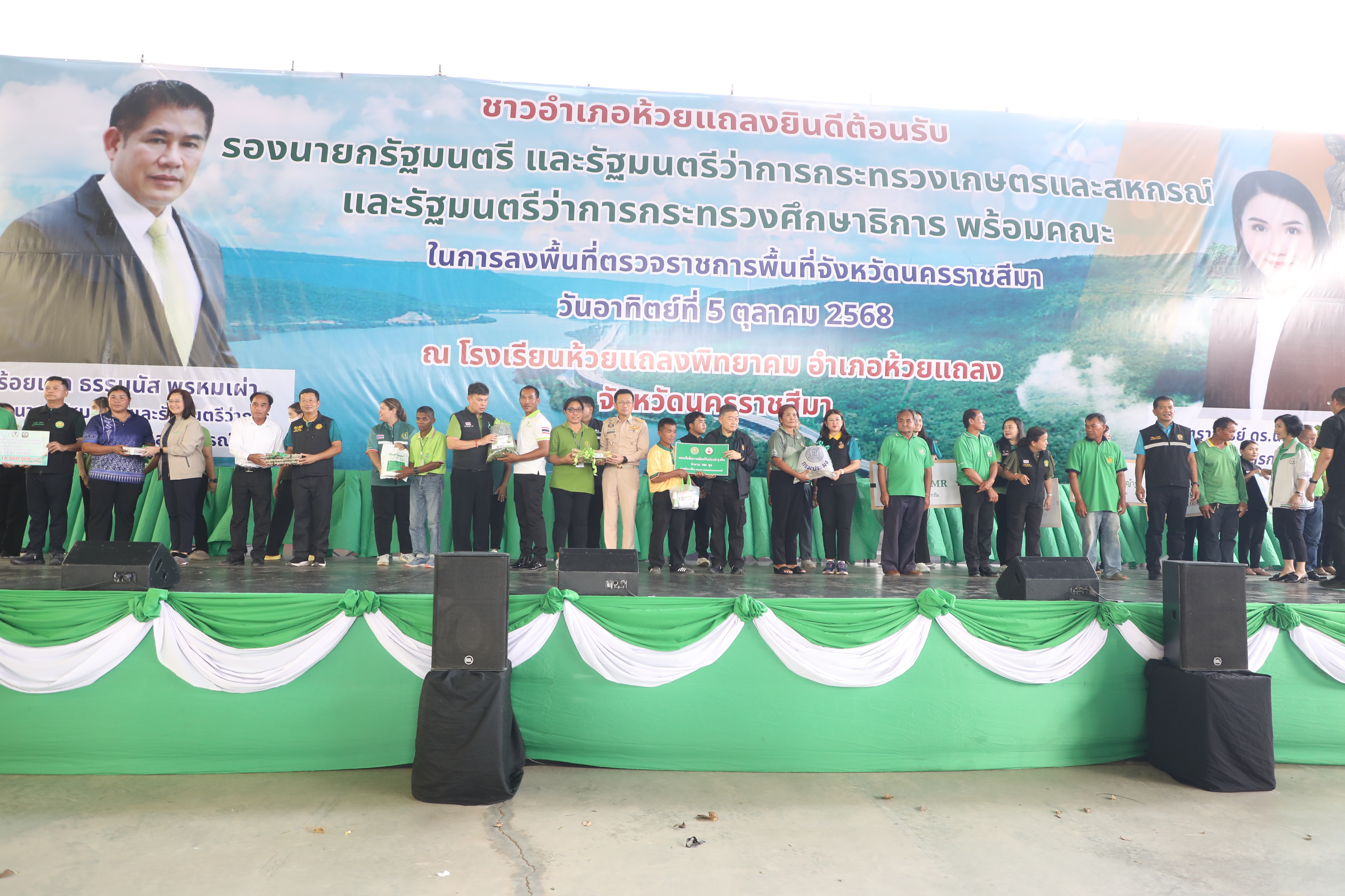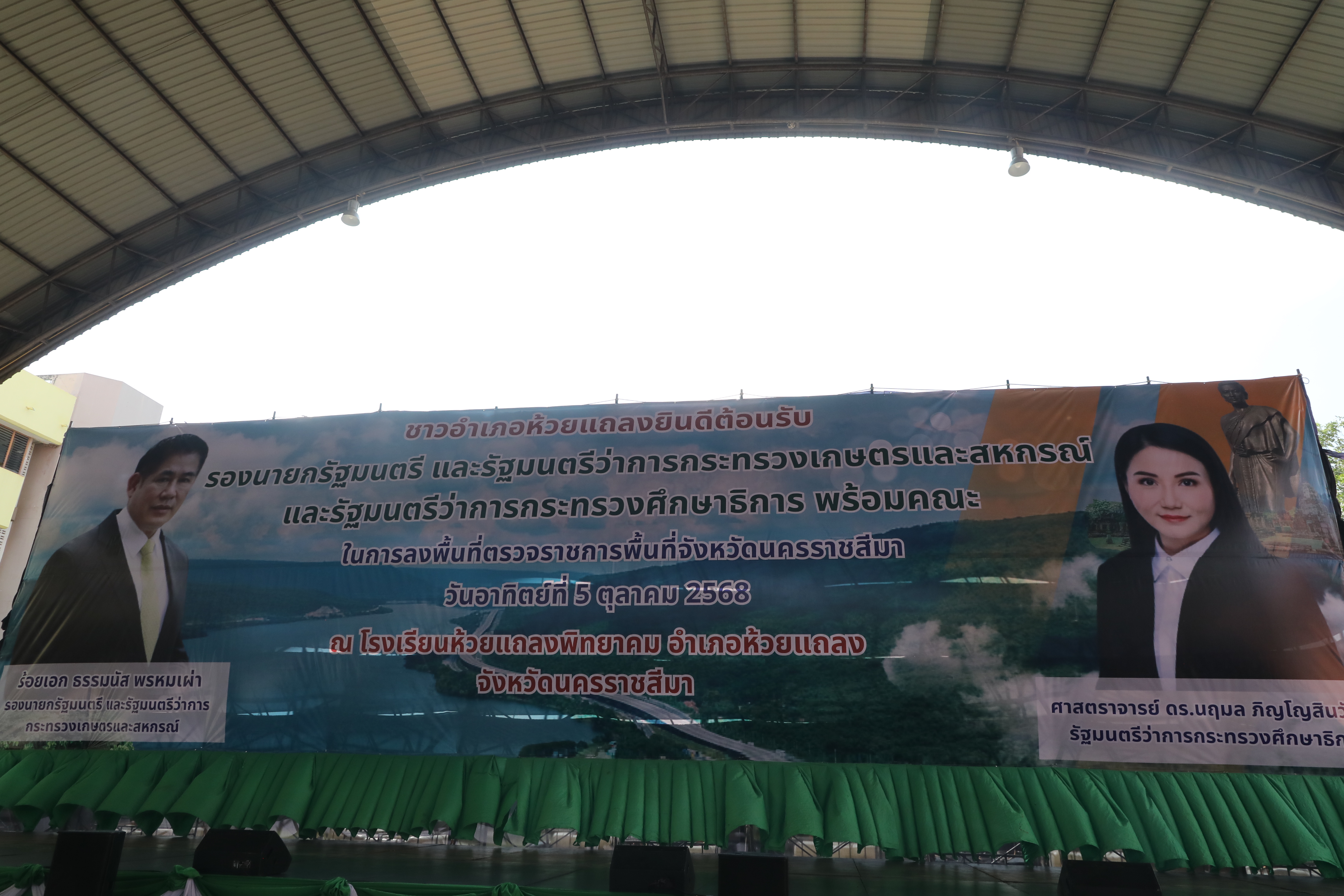 5 ตุลาคม 2568 เวลา 14.00 น. นายเศรษฐเกียรติ กระจ่างวงษ์ เลขาธิการ ส.ป.ก. มอบหมายให้ นายวัฒนา มังธิสาร รองเลขาธิการ ส.ป.ก. พร้อมด้วย นายอำมริต คงแก้ว ปฏิรูปที่ดินจังหวัดนครราชสีมา ปฏิรูปที่ดินจังหวัดภาคตะวันออกเฉียงเหนือ และเจ้าหน้าที่ผู้เกี่ยวข้อง ร่วมติดตามรองนายกรัฐมนตรี และรัฐมนตรีว่าการกระทรวงเกษตรและสหกรณ์ (ร้อยเอก ธรรมนัส พรหมเผ่า) พร้อมด้วย รัฐมนตรีว่าการกระทรวงศึกษาธิการ (ศ.ดร.นฤมล ภิญโญสินวัฒน์) นายวิณะโรจน์ ทรัพย์ส่งสุข ปลัดกระทรวงเกษตรและสหกรณ์ ผู้บริหารกระทรวงเกษตรและสหกรณ์ และหน่วยงานที่เกี่ยวข้อง ลงพื้นที่ตรวจราชการ ในเขตพื้นที่อำเภอห้วยแถลง จังหวัดนครราชสีมา โดยมี หน่วยงานส่วนท้องถิ่น และเกษตรกร เข้าร่วม ซึ่งรองนายกรัฐมนตรี และรัฐมนตรีว่าการกระทรวงเกษตรและสหกรณ์ (ร้อยเอก ธรรมนัส พรหมเผ่า) ได้มอบนโยบายและรับฟังปัญหาของเกษตรกร โรงเรียนห้วยแถลงพิทยาคม ตำบลห้วยแถลง อำเภอห้วยแถลง จังหวัดนครราชสีมา