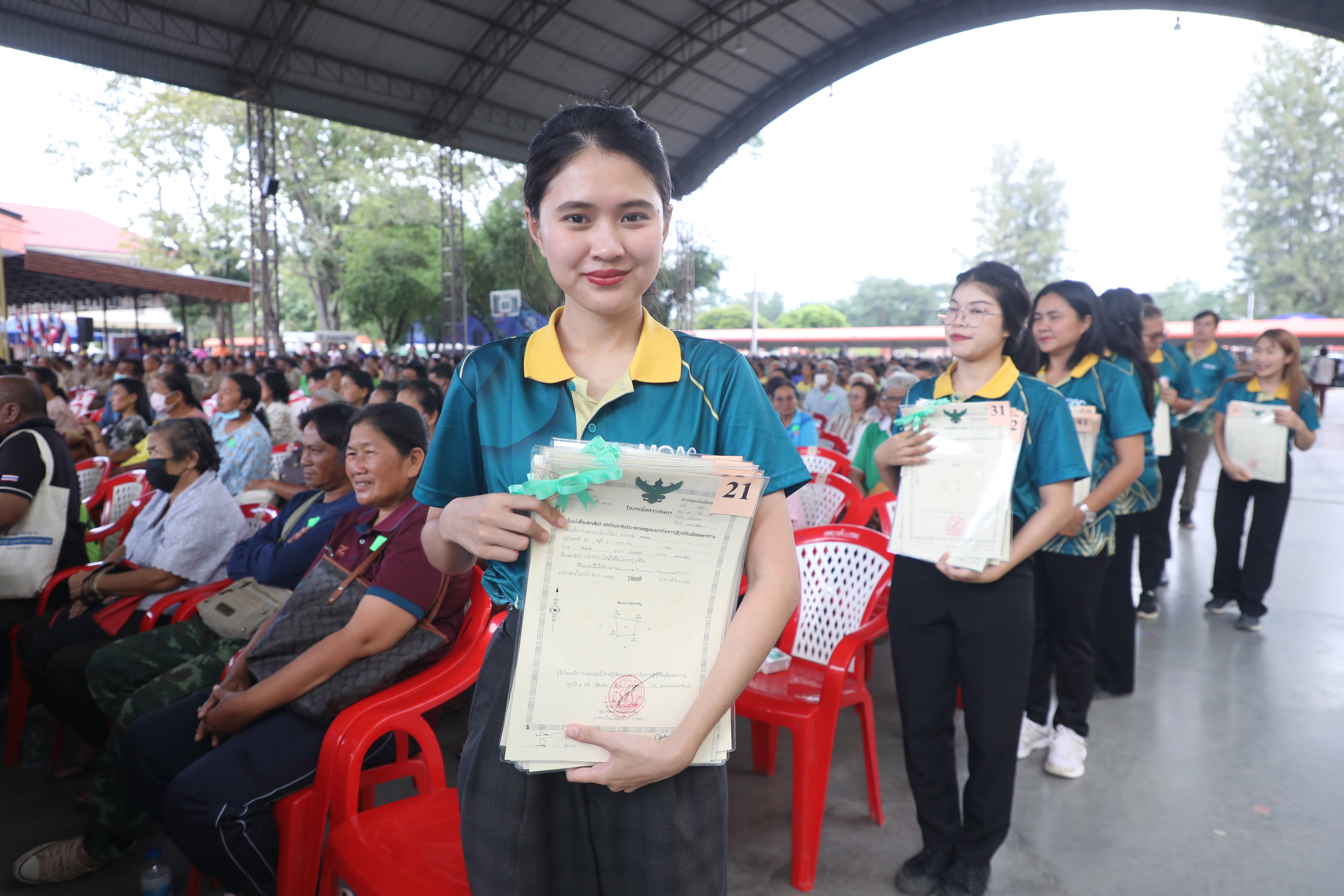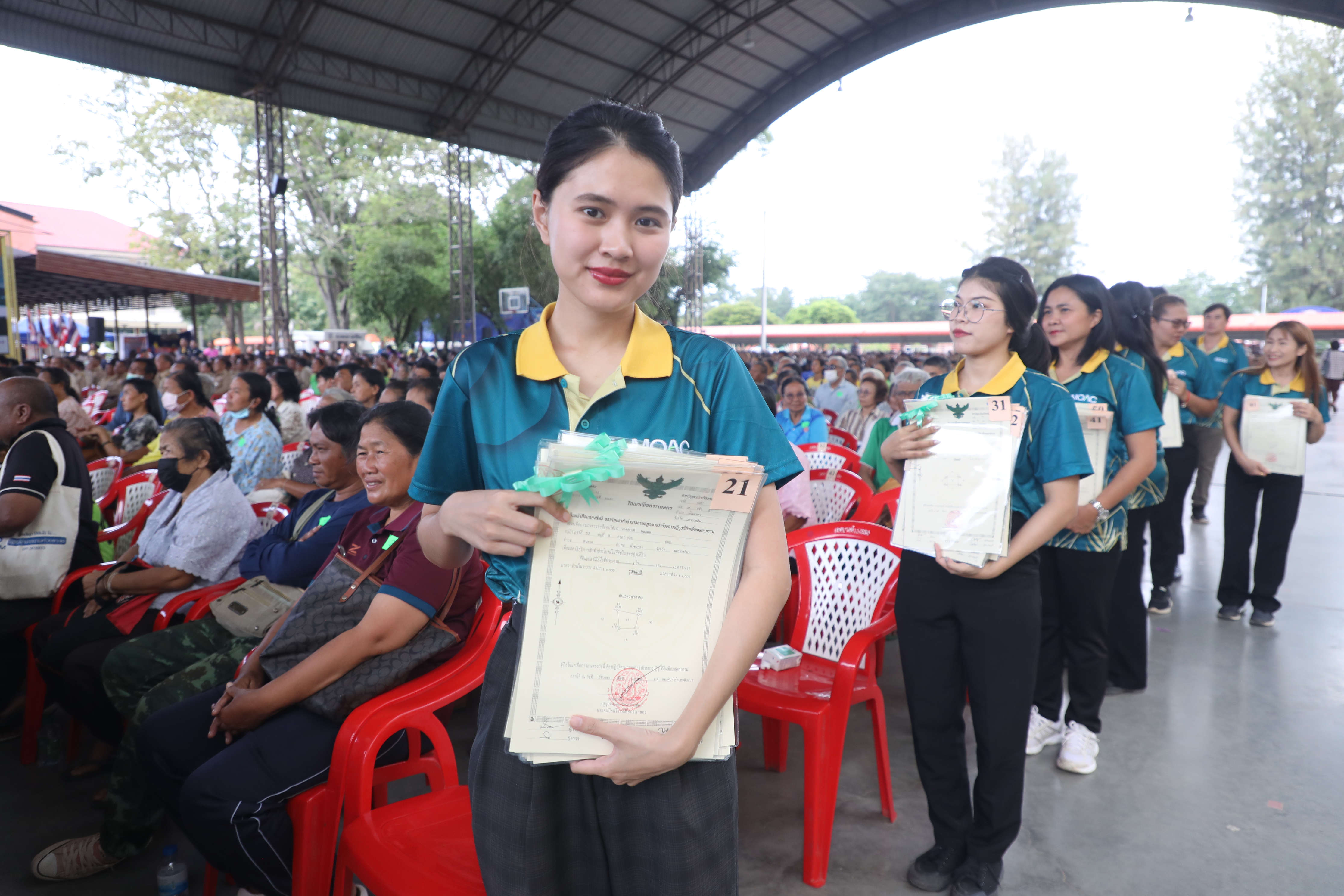 ในการนี้ สำนักงานการปฏิรูปที่ดินเพื่อเกษตรกรรม โดย สำนักงานการปฏิรูปที่ดินจังหวัดนครราชสีมา (ส.ป.ก. นครราชสีมา) ได้จัดพิธีมอบโฉนดเพื่อการเกษตร จำนวน 225 ราย 225 แปลง นอกจากนี้ ได้มีการมอบเงินช่วยเหลือโครงการสนับสนุนช่วยเหลือเกษตรกรผู้ปลูกข้าวนาปีและส่งเสริมการเพาะปลูกให้เหมาะสมกับศักยภาพพื้นที่ ปีการผลิต 2568/69 ท่อนพันธุ์มันสำปะหลัง ปัจจัยการผลิตปรับปรุงบำรุงดิน เมล็ดพันธุ์หญ้าอาหารสัตว์ และเยี่ยมชมนิทรรศการจากหน่วยงานต่าง ๆ ที่มาให้ความรู้และบริการแก่เกษตรกรในพื้นที่อีกด้วย