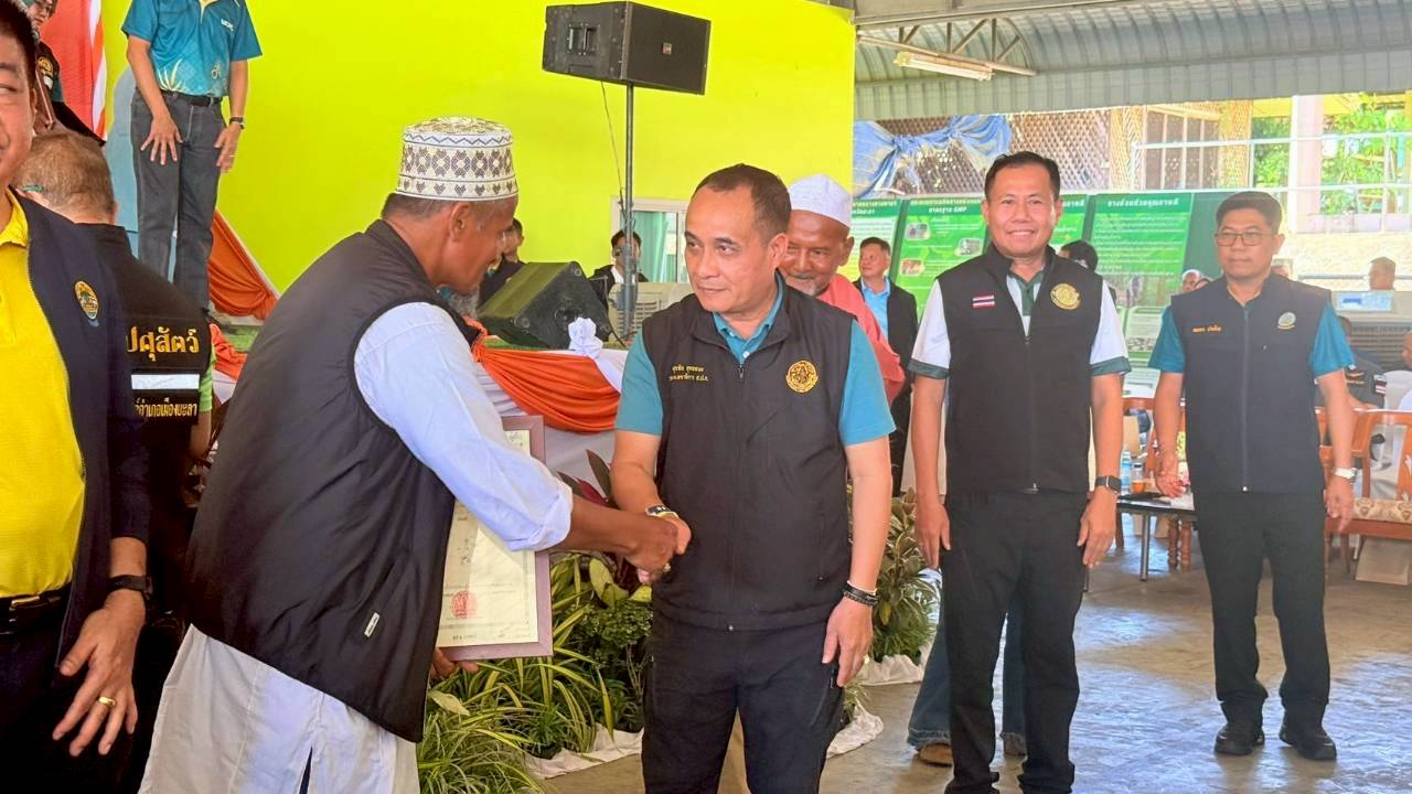 สำนักงานการปฏิรูปที่ดินเพื่อเกษตรกรรม (ส.ป.ก.)โดยนายเศรษฐเกียรติ กระจ่างวงษ์ เลขาธิการ ส.ป.ก. ได้มอบหมายให้ นายสุรชัย ยุทธชนะ รองเลขาธิการ ส.ป.ก. นำปฏิรูปที่ดินจังหวัดภาคใต้ ข้าราชการและเจ้าหน้าที่ ส.ป.ก.ยะลา ลงพื้นที่ติดตามคณะ รมช.กษ. และออกหน่วยให้บริการประชาชน โดยมีการมอบโฉนดเพื่อการเกษตร ให้กับเกษตรกร จำนวน 61 แปลง 50ราย เนื้อที่ประมาณ 171 ไร่