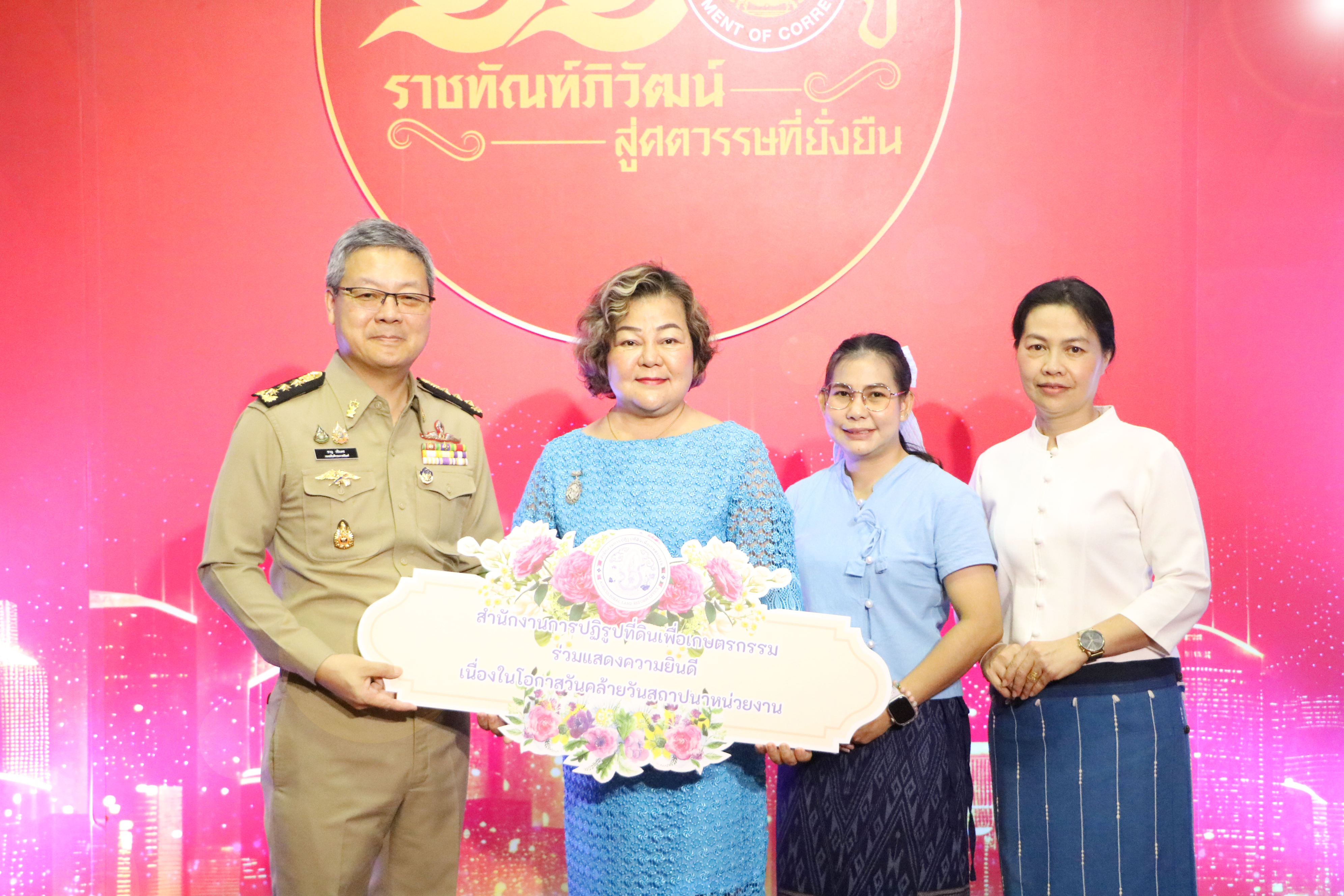 วันศุกร์ที่ 10 ตุลาคม 2568 นายเศรษฐเกียรติ กระจ่างวงษ์ เลขาธิการสำนักงานการปฏิรูปที่ดินเพื่อเกษตรกรรม (เลขาธิการ ส.ป.ก.) มอบหมายให้ นางศตญา หนุนพงษ์ หัวหน้าฝ่ายบริหารทั่วไป และคณะ ร่วมเป็นเกียรติและแสดงความยินดีในโอกาสวันคล้ายวันสถาปนากรมราชทัณฑ์ครอบรอบปีที่ 110 ภายใต้ concept "ราชทัณฑ์ภิวัฒน์ สู่ศตวรรษที่ยั่งยืน" ณ ห้องประชุม ชั้น 3 กรมราชทัณฑ์ ในการนี้ ส.ป.ก. ร่วมบริจาคสมทบทุนให้กับมูลนิธิกรมราชทัณฑ์เพื่อกิจกรรมของกรมราชทัณฑ์ต่อไป โดยมี นายชาญ วชิรเดช รองอธิบดีกรมราชทัณฑ์ เป็นผู้รับมอบและให้การต้อนรับ