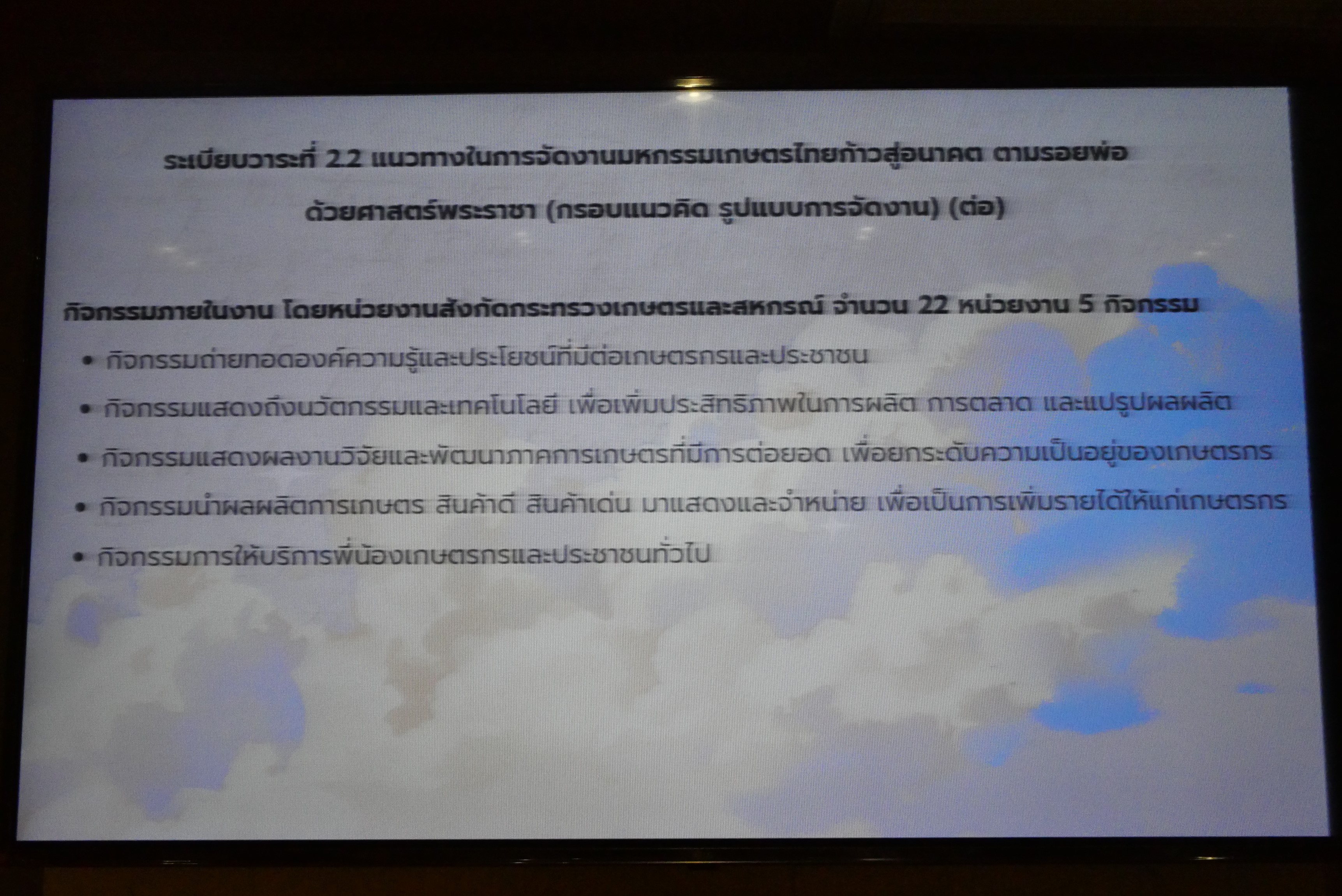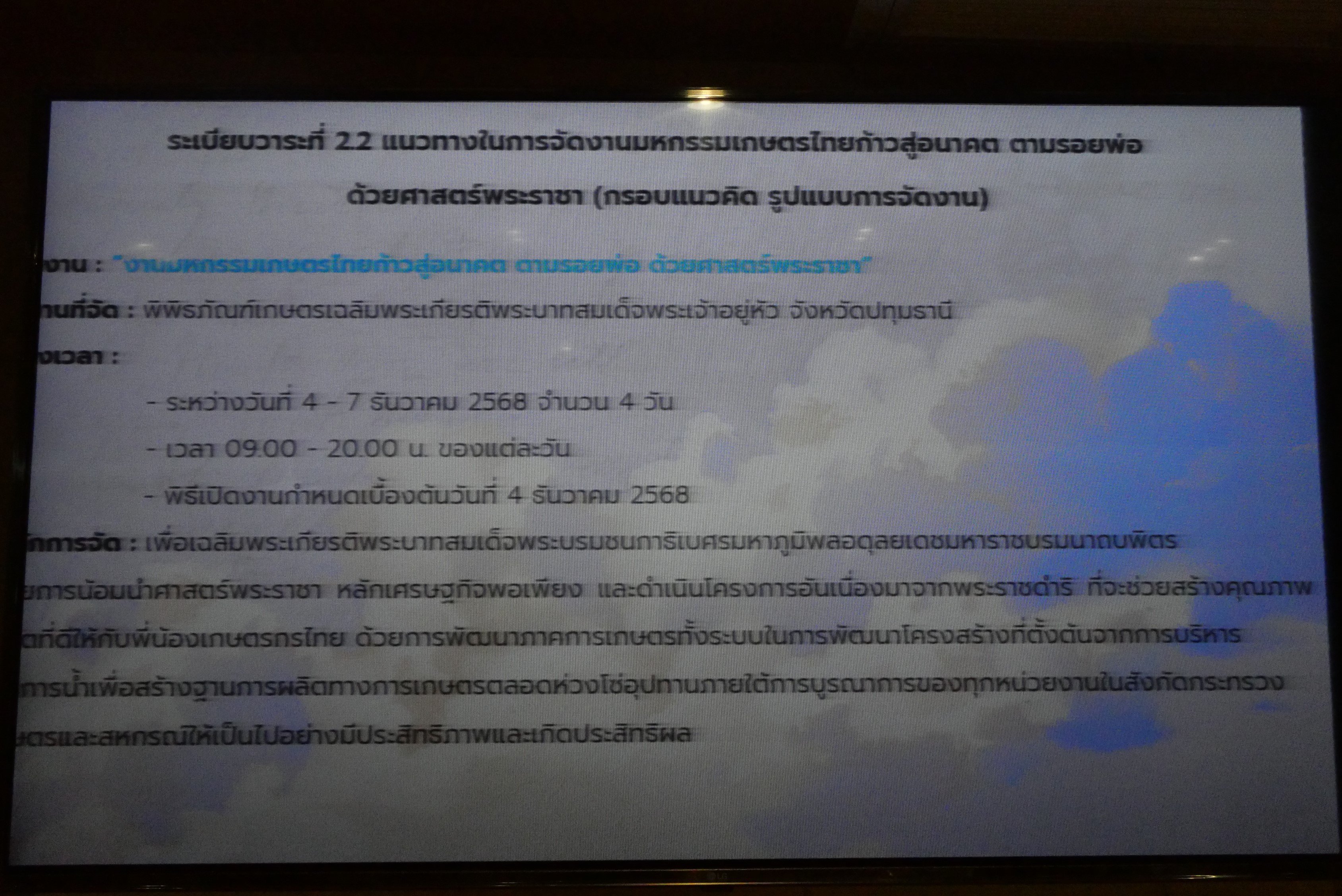 2. การมอบหมายหน่วยงานเข้าร่วมจัดงานมหกรรมเกษตรไทยก้าวสู่อนาคต ตามรอยพ่อ ด้วยศาสตร์พระราชา