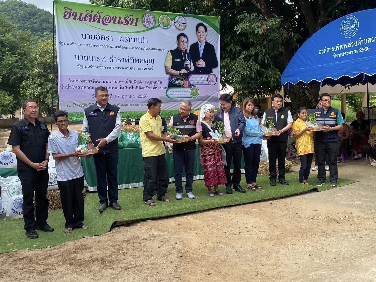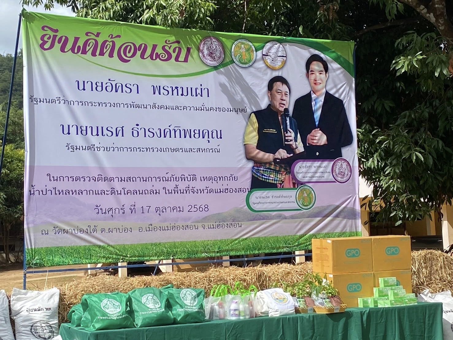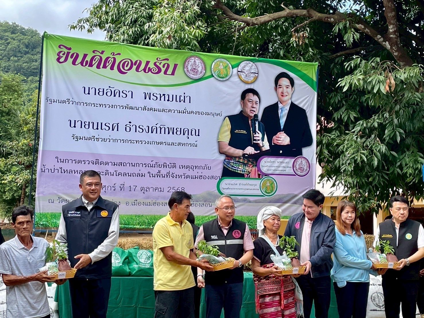 วันที่ 17 ตุลาคม 2568 นายเศรษฐเกียรติ กระจ่างวงษ์ เลขาธิการสำนักงานการปฏิรูปที่ดินเพื่อเกษตรกรรม (ส.ป.ก) ได้มอบหมายให้นายกฤษณะ ดีปาละ หัวหน้าผู้ตรวจราชการ ส.ป.ก. พร้อมด้วยนางดาวรุ่ง ตันติไวทยพันธุ์ ปฏิรูปที่ดินจังหวัดแม่ฮ่องสอน และ เจ้าหน้าที่ ส.ป.ก. จังหวัดแม่ฮ่องสอน ที่เกี่ยวข้องลงพื้นที่เพื่อติดตาม รัฐมนตรีช่วยว่าการกระทรวงเกษตรและสหกรณ์ (นายนเรศ ธำรงค์ทิพยคุณ) พร้อมด้วยรัฐมนตรีว่าการกระทรวงการ พัฒนาสังคมและความมั่นคงของมนุษย์ (นายอัครา พรหมเผ่า) คณะผู้บริหาร ลงพื้นที่เพื่อติดตาม สถานการณ์ภัยพิบัติ อุทกภัยน้ำป่าไหลหลากและดินโคนถล่มในพื้นที่จังหวัดแม่ฮ่องสอน ดังนี้