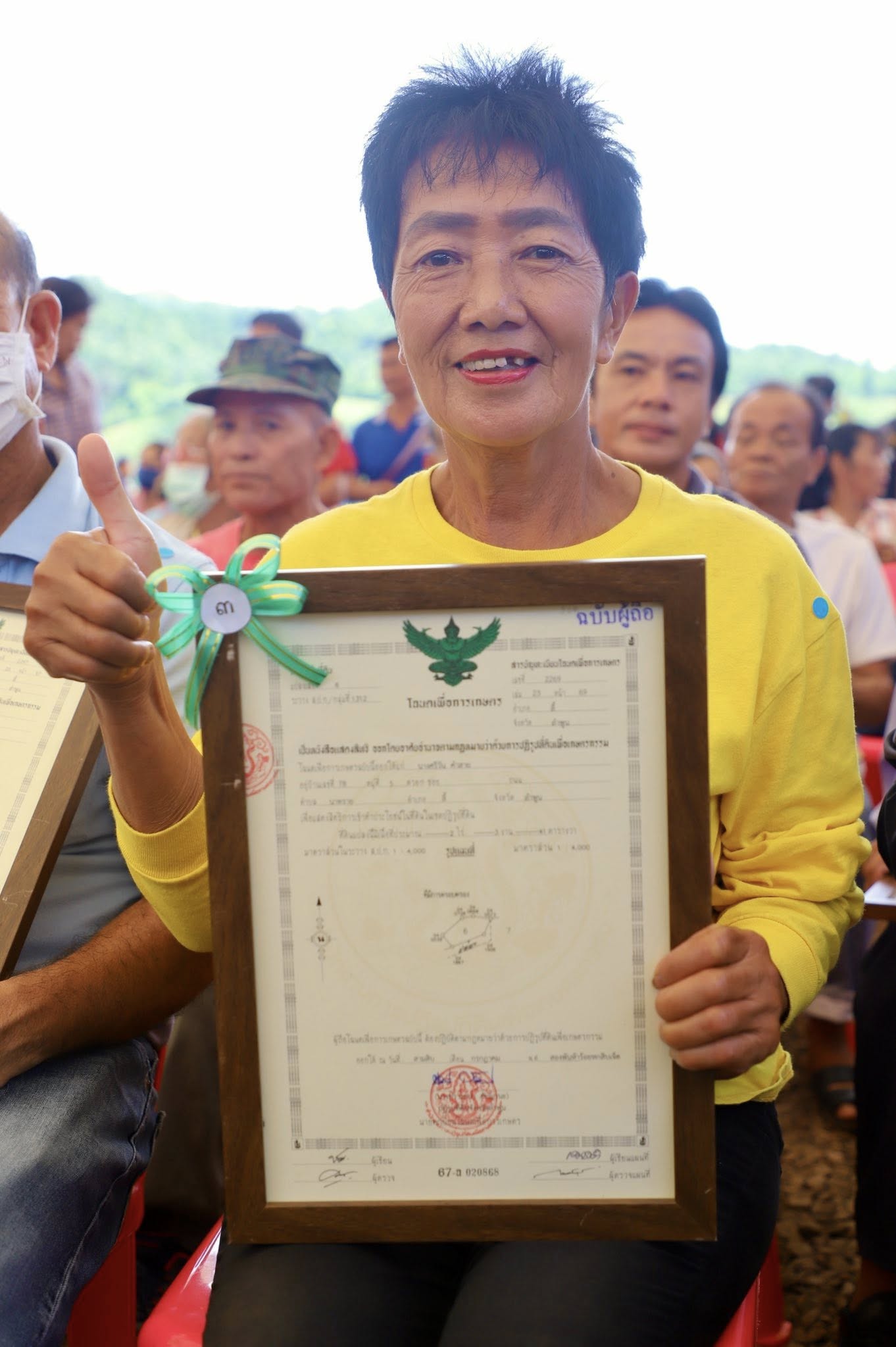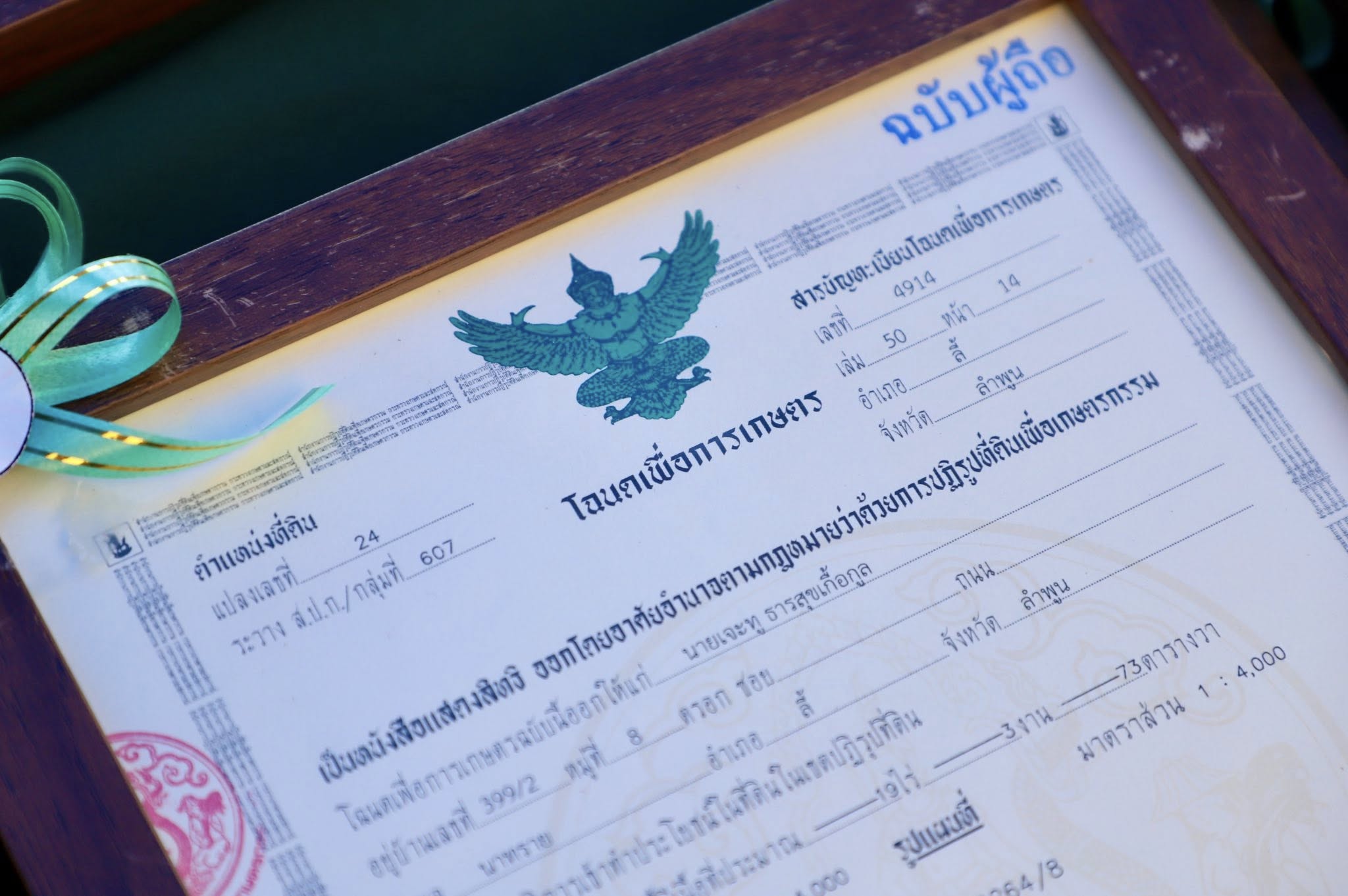 นอกจากนี้ยังเป็นประธานในพิธีมอบโฉนดเพื่อการเกษตร จำนวน 21 ราย 21 แปลง เนื้อที่ประมาณ 139-0-51 ไร่ โฉนดต้นไม้จำนวน 10 ราย ประกอบไปด้วยเกษตรกรในเขตปฏิรูปที่ดิน จากตำบลแม่ลาน และตำบลนาทราย อำเภอลี้ จังหวัดลำพูน และมอบปัจจัยการผลิต