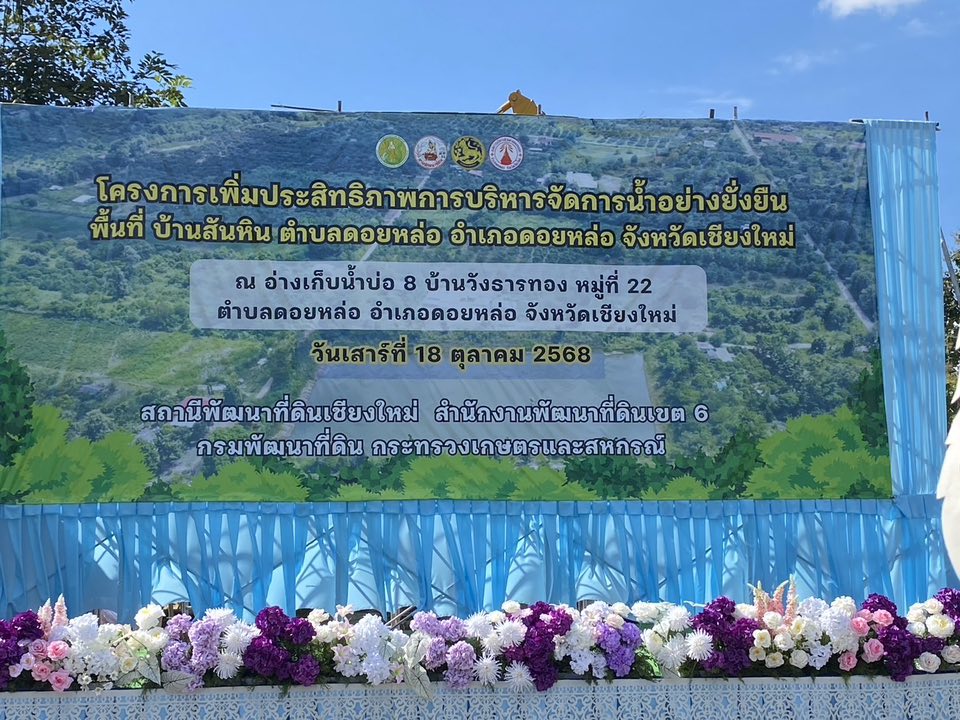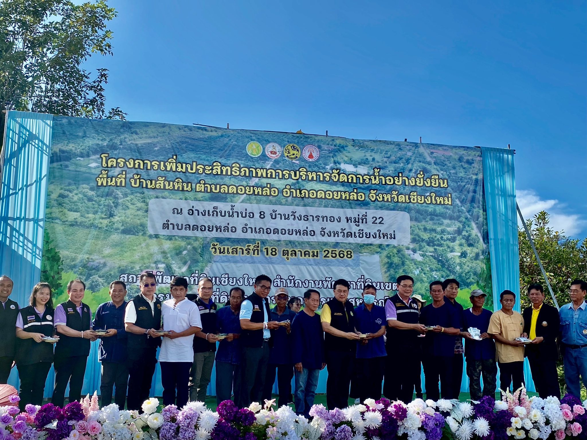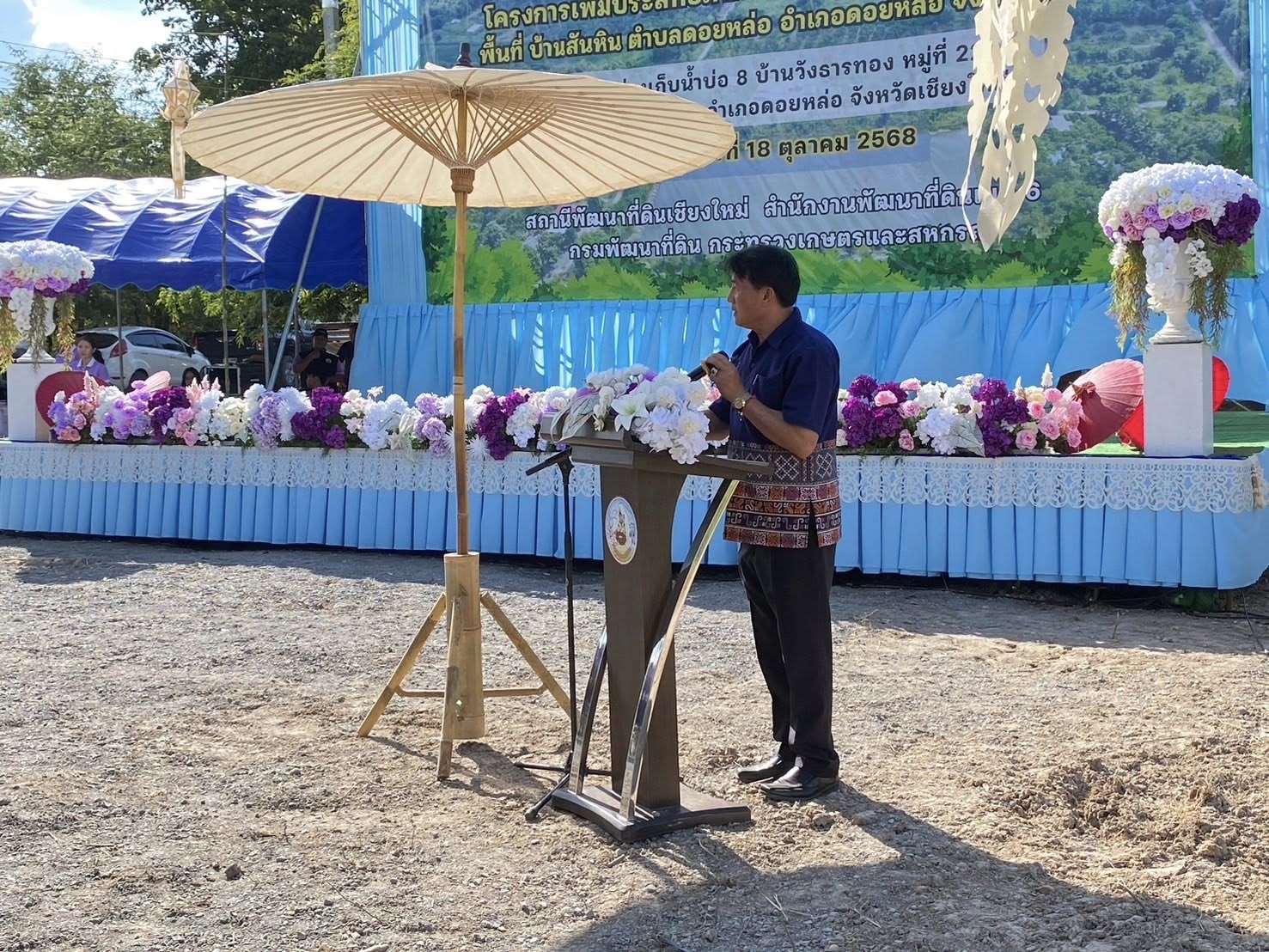 3. โครงการเพิ่มประสิทธิภาพการบริหารจัดการน้ำอย่างยั่งยืน โดย นายกองค์การบริหารส่วนตำบลดอยหล่อ เป็นผู้กล่าวต้อนรับ และ นายสุรชาติ มาลาศรี รองอธิบดีกรมพัฒนาที่ดิน รายงานภาพรวมโครงการ พร้อมชี้แจงรายละเอียดการดำเนินงานโครงการดังกล่าวฯ ณ บ้านสันหิน ตำบลดอยหล่อ อำเภอดอยหล่อ จังหวัดเชียงใหม่
