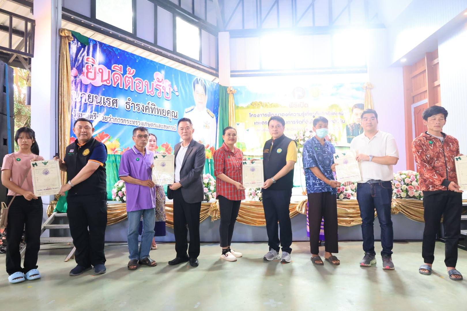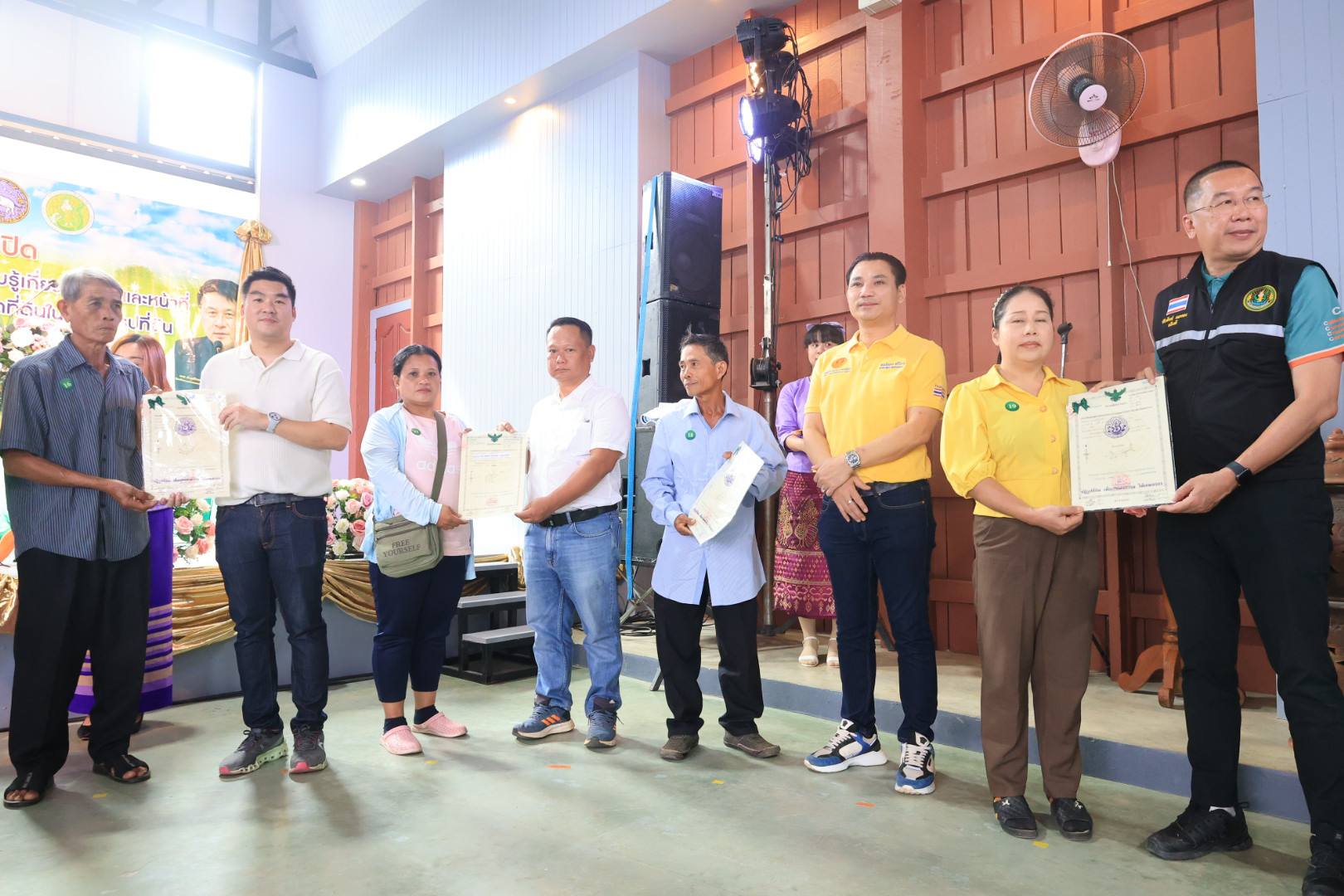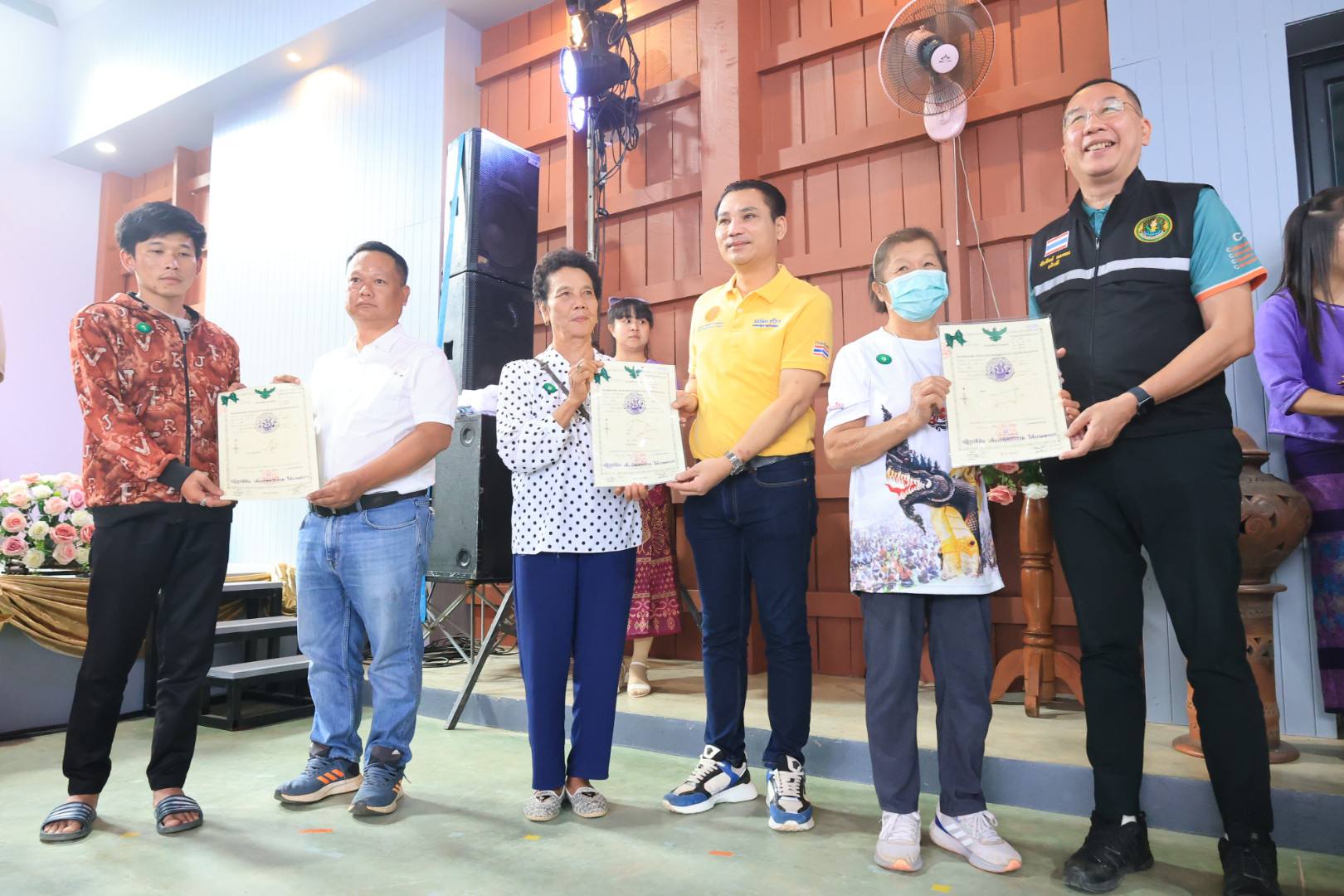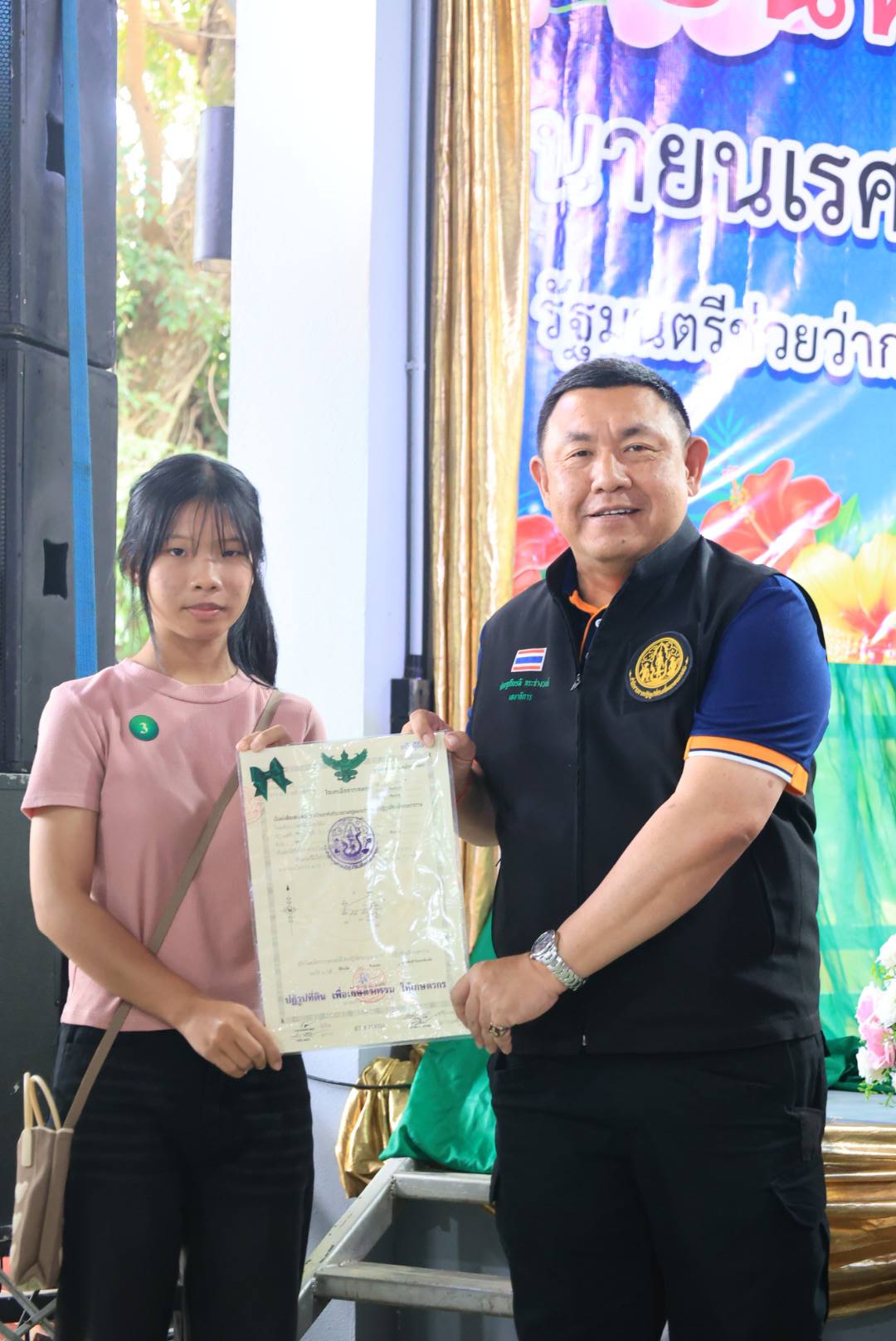 ในการนี้ รัฐมนตรีช่วยว่าการกระทรวงเกษตรและสหกรณ์ (นายนเรศ ธำรงค์ทิพยคุณ) ได้มอบโฉนดเพื่อการเกษตร จำนวน 250 ราย และมอบโฉนดต้นไม้ จำนวน 15 ราย รวม 265 ราย รวมถึงได้มอบปัจจัยการผลิต แก่เกษตรกรในเขตอำเภอเวียงป่าเป้า จังหวัดเชียงราย อีกด้วย