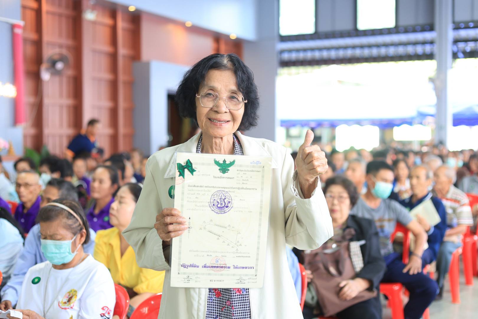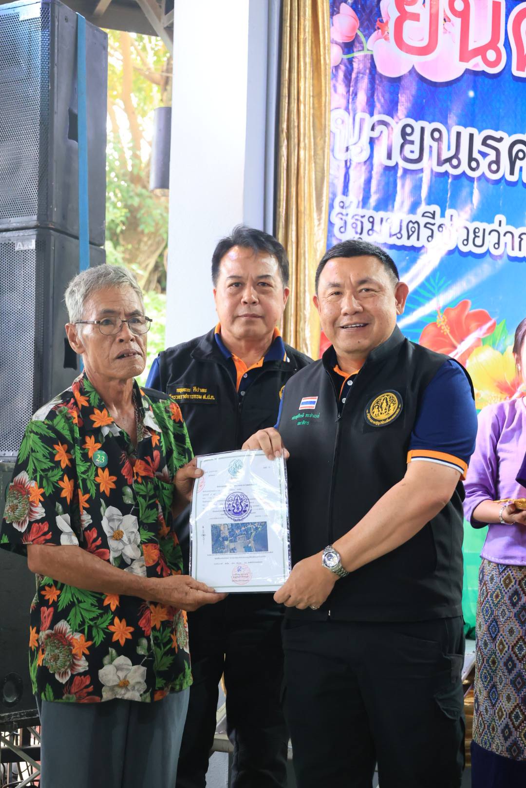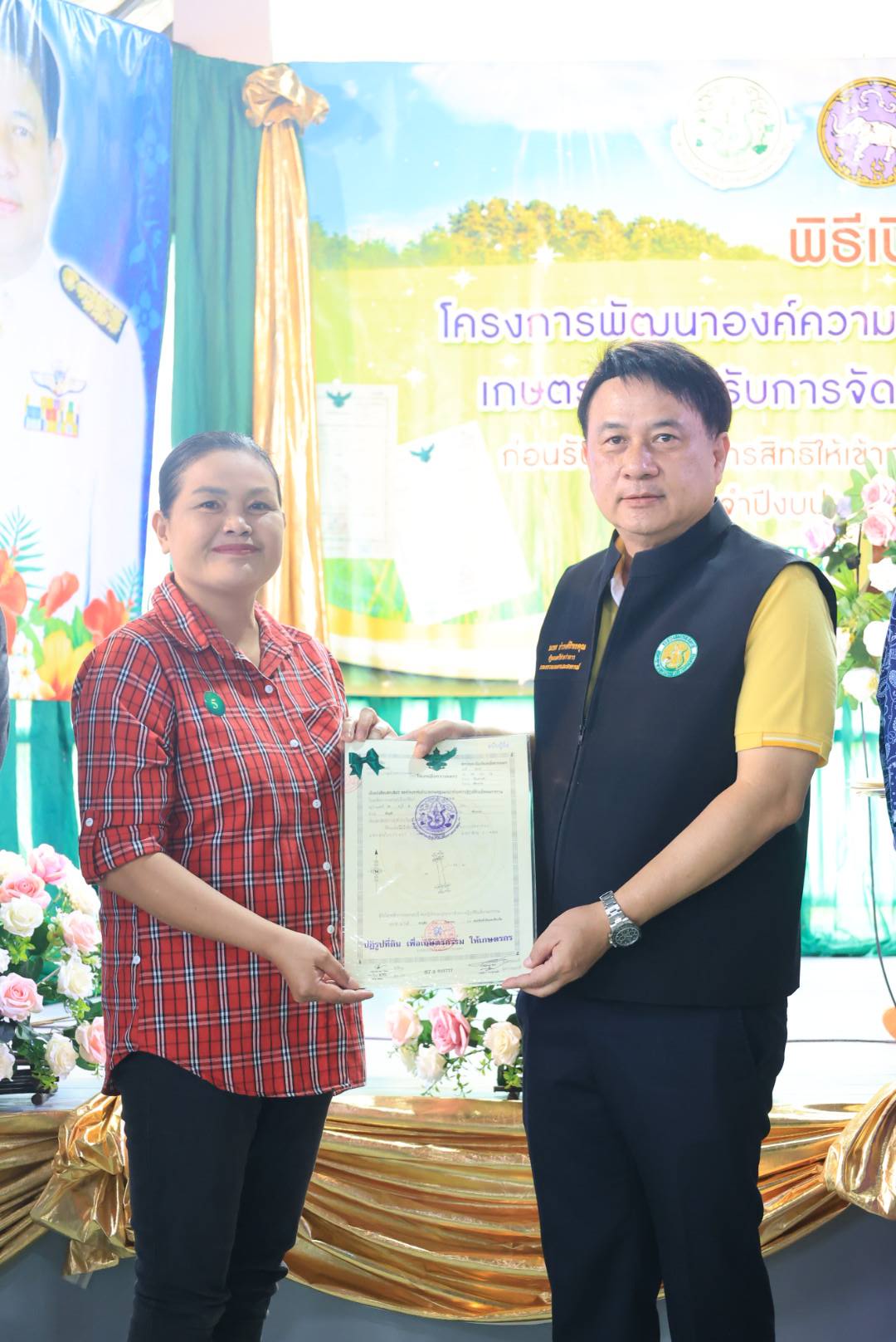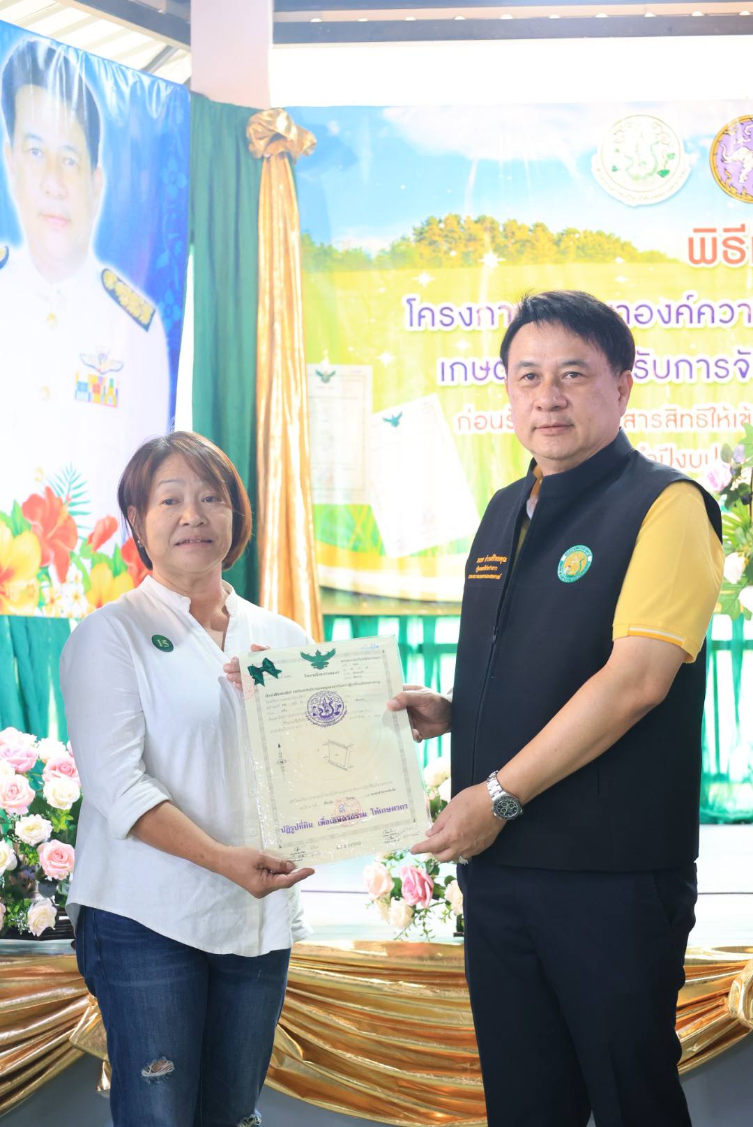 ในการนี้ รัฐมนตรีช่วยว่าการกระทรวงเกษตรและสหกรณ์ (นายนเรศ ธำรงค์ทิพยคุณ) ได้มอบโฉนดเพื่อการเกษตร จำนวน 250 ราย และมอบโฉนดต้นไม้ จำนวน 15 ราย รวม 265 ราย รวมถึงได้มอบปัจจัยการผลิต แก่เกษตรกรในเขตอำเภอเวียงป่าเป้า จังหวัดเชียงราย อีกด้วย