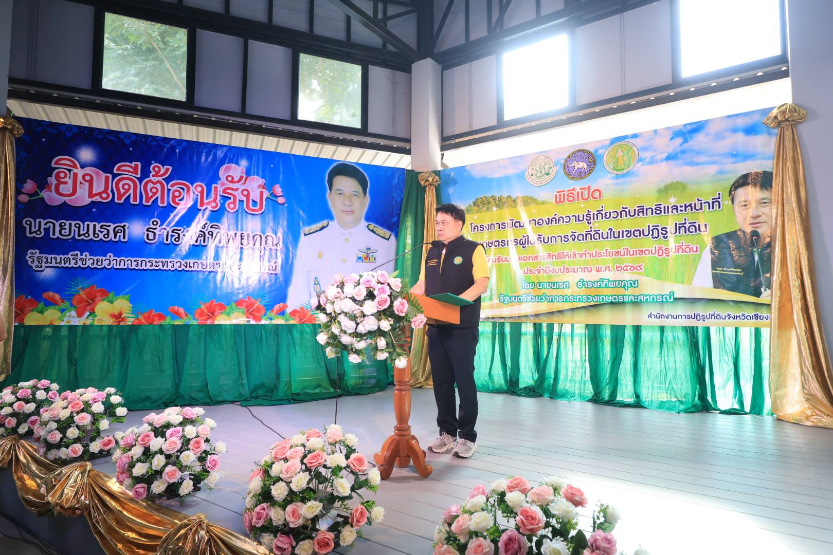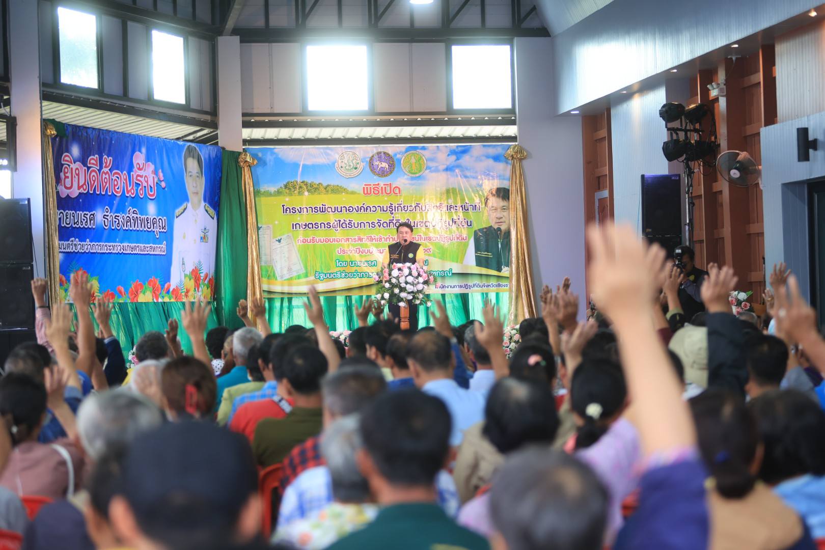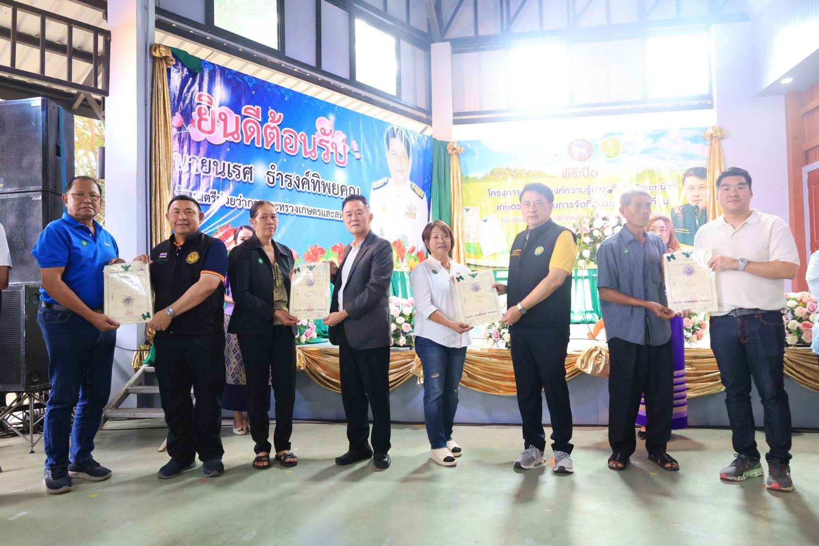 ในการนี้ นายประสงค์ หล้าอ่อน รองผู้ว่าราชการจังหวัดเชียงราย กล่าวต้อนรับ, นายเศรษฐเกียรติ กระจ่างวงษ์ เลขาธิการ ส.ป.ก. กล่าวรายงาน จากนั้น รัฐมนตรีช่วยว่าการกระทรวงเกษตรและสหกรณ์ (นายนเรศ ธำรงค์ทิพยคุณ) ได้มอบนโยบาย "กระทรวงเกษตรและสหกรณ์ ได้ให้ความสำคัญ ในโยบายของ รองนายกรัฐมนตรี และรัฐมนตรีว่าการกระทรวงเกษตรและสหกรณ์ (ร้อยเอก ธรรมนัส พรหมเผ่า) ในการปรับปรุงเอกสารสิทธิ ส.ป.ก. 4-01 ให้เป็นโฉนดเพื่อการเกษตร ซึ่งจะทำให้พี่น้องเกษตรกร สามารถนำไปต่อยอด เข้าถึงโอกาสการให้บริการของภาครัฐ โอกาสเข้าถึงแหล่งทุนได้เพิ่มมากขึ้น มีทางเลือกในการพัฒนาที่ดิน และพัฒนาอาชีพของตนเอง เพื่อสร้างคุณภาพชีวิตที่ดีอย่างยั่งยืน" รมช.กษ. นเรศ กล่าว