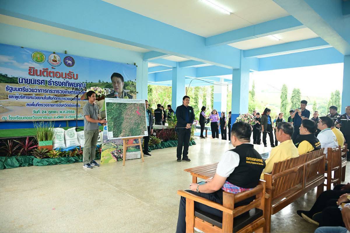 24 ตุลาคม 2568 เวลา 13:30 น. นายเศรษฐเกียรติ กระจ่างวงษ์ เลขาธิการ ส.ป.ก. มอบหมายให้ นายกฤษณะ ดีปาละ หัวหน้าผู้ตรวจราชการกรม พร้อมด้วย นายชำนาญ บุญประเสริฐ ปฏิรูปที่ดินจังหวัดเชียงราย ปฏิรูปที่ดินจังหวัดเขตภาคเหนือ และเจ้าหน้าที่ผู้เกี่ยวข้อง ร่วมติดตามรัฐมนตรีช่วยว่าการกระทรวงเกษตรและสหกรณ์ (นายนเรศ ธำรงค์ทิพยคุณ) ตรวจราชการในเขตพื้นที่จังหวัดเชียงราย โดยมี ผู้บริหารกระทรวงเกษตรและสหกรณ์ เจ้าหน้าที่ เกษตรกรในพื้นที่เข้าร่วม ณ โรงเรียนดอยเวียงผาพิทยา ตำบลเวียง อำเภอเวียงป่าเป้า จังหวัดเชียงราย