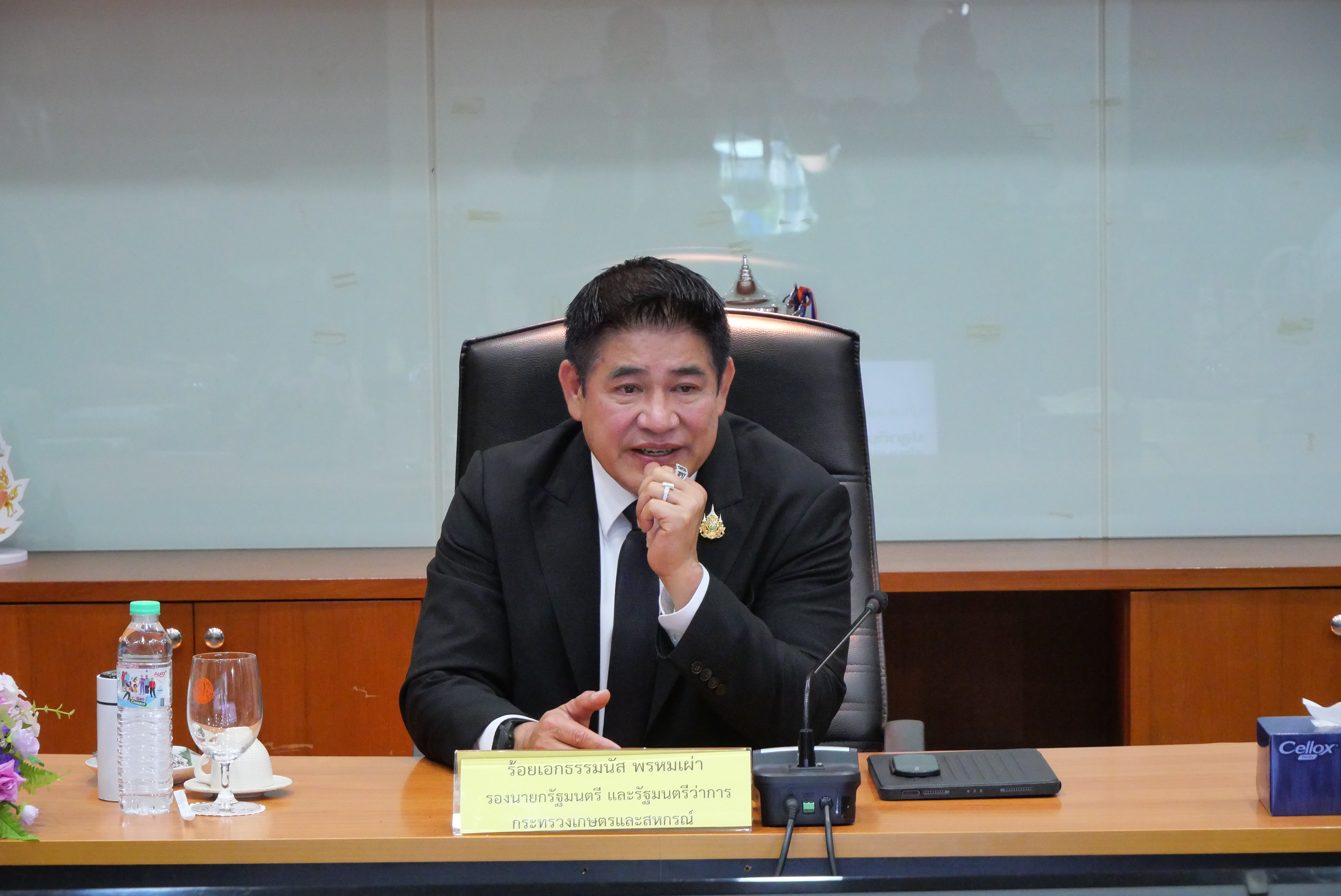 วันพุธที่ 5 พฤศจิกายน 2568 เวลา 09.30 น. นายเศรษฐเกียรติ กระจ่างวงษ์ เลขาธิการสำนักงานการปฏิรูปที่ดินเพื่อเกษตรกรรม (เลขาธิการ ส.ป.ก.) ร่วมประชุมรับฟังการนำเสนอโครงการ ปลูกต้นยูคาลิปตัสบนคันนา พัฒนาชีวิต สร้างเศรษฐกิจยั่งยืน พร้อมด้วย นายสุรชัย ยุทธชนะ นายปรีชา ลิ้มถวิล รองเลขาธิการ ส.ป.ก. เข้าร้วมประชุมรับฟัง ณ ห้องประชุม สุทธิพร จีระพันธุ ส.ป.ก. ถนนราชดำเนินนอก เขตพระนคร กรุงเทพฯ โดยมี ร้อยเอก ธรรมนัส พรหมเผ่า รองนายกรัฐมนตรี และรัฐมนตรีว่าการกระทรวงเกษตรและสหกรณ์ ประธาน พร้อมด้วย นายนเรศ ธำรงทิพยคุณ รัฐมนตรีช่วยว่าการกระทรวงเกษตรและสหกรณ์ คณะที่ปรึกษารัฐมนตรีว่าการกระทรวงเกษตรและสหกรณ์ นายวิณะโรจน์ ทรัพย์ส่งสุข ปลัดกระทรวงเกษตรและสหกรณ์ หัวหน้าส่วนราชการ ผู้บริหารหน่วยงานในสังกัด