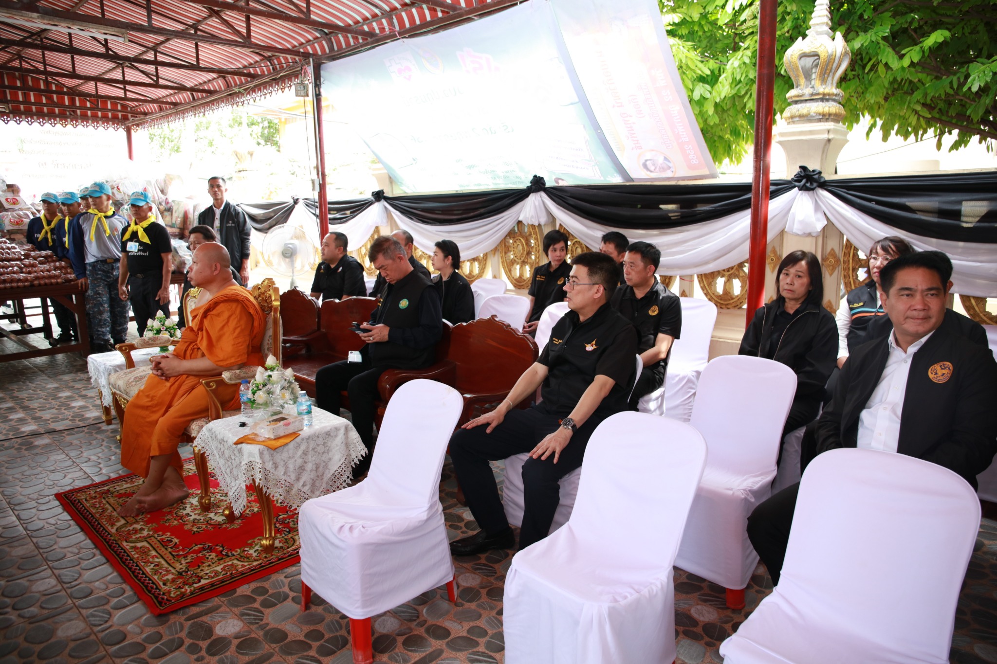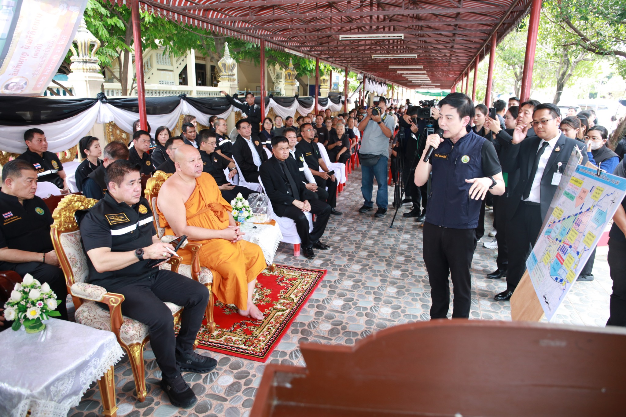 ต่อมาในเวลา 12.10 น. รองนายกรัฐมนตรี และรัฐมนตรีว่าการกระทรวงเกษตรและสหกรณ์ พร้อมคณะ ลงพื้นที่ติดตามสถานการณ์อุทกภัยในพื้นที่วัดลาดสนุ่น ต.คูคต อ.ลำลูกกา จ.ปทุมธานี พร้อมทั้งมอบถุงยังชีพ จำนวน 300 ชุด เพื่อช่วยบรรเทาความเดือดร้อนทั้งด้านความเป็นอยู่และการดำเนินชีวิตของประชาชนในพื้นที่อย่างเร่งด่วน