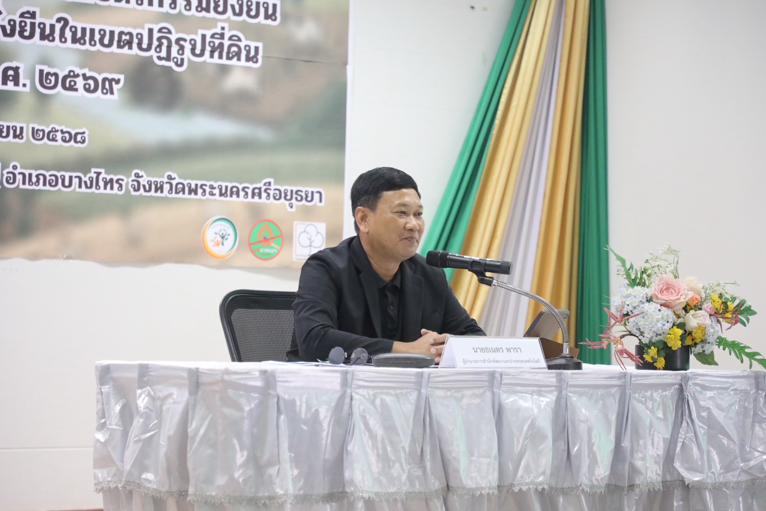 : ผลักดันสังคมคาร์บอนต่ำ ลดการเผาพื้นที่เกษตรกรรม เน้นการผลิตที่ใส่ใจสิ่งแวดล้อม และส่งเสริมเกษตรมูลค่าสูง เพื่อเป็นแนวทางให้เจ้าหน้าที่ ส.ป.ก. ขับเคลื่อนงานตามนโยบาย ณ ศูนย์การเรียนรู้เพื่อการปฏิรูปที่ดิน ตำบลช้างใหญ่ อำเภอบางไทร จังหวัดพระนครศรีอยุธยา