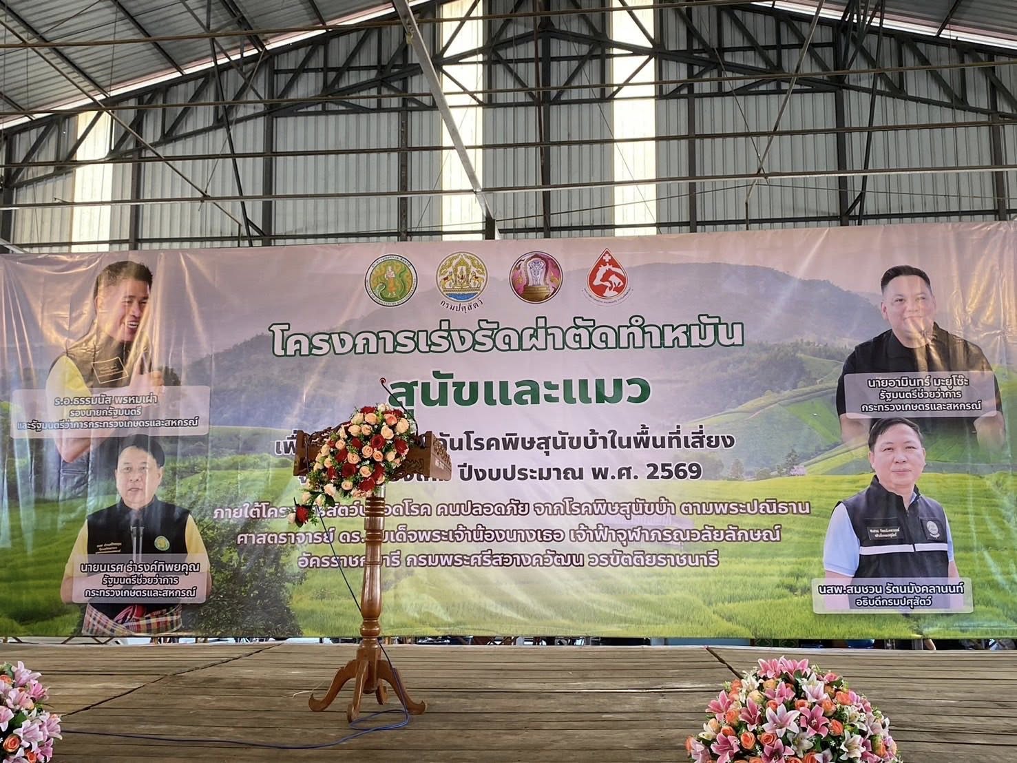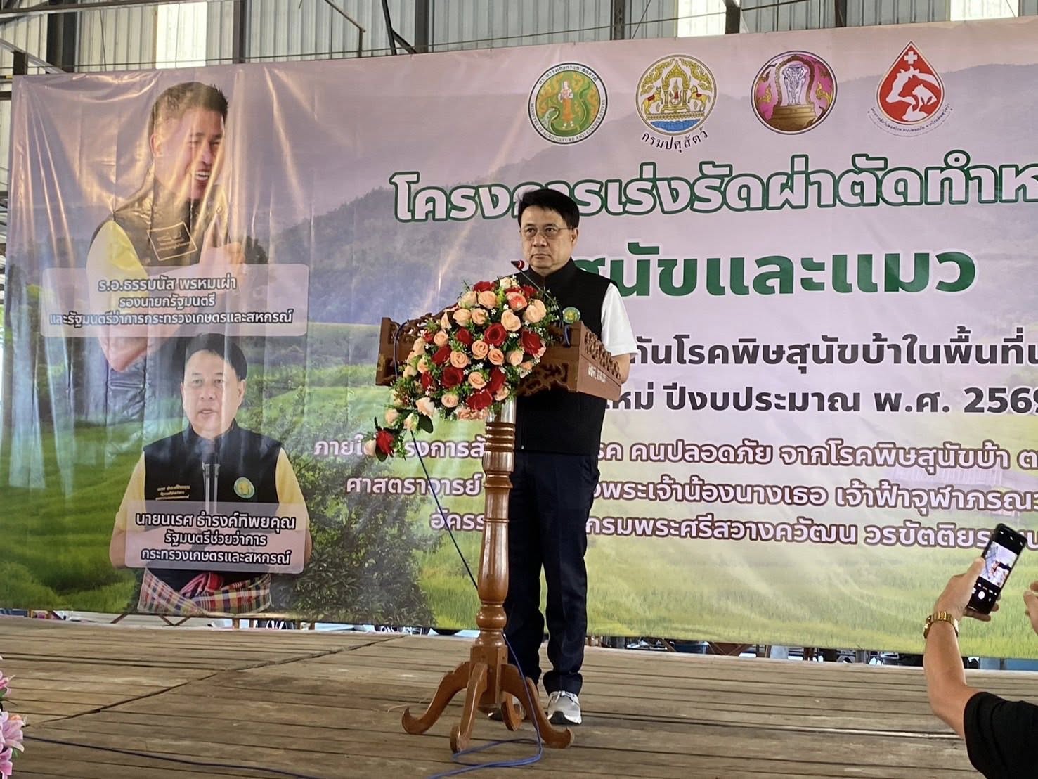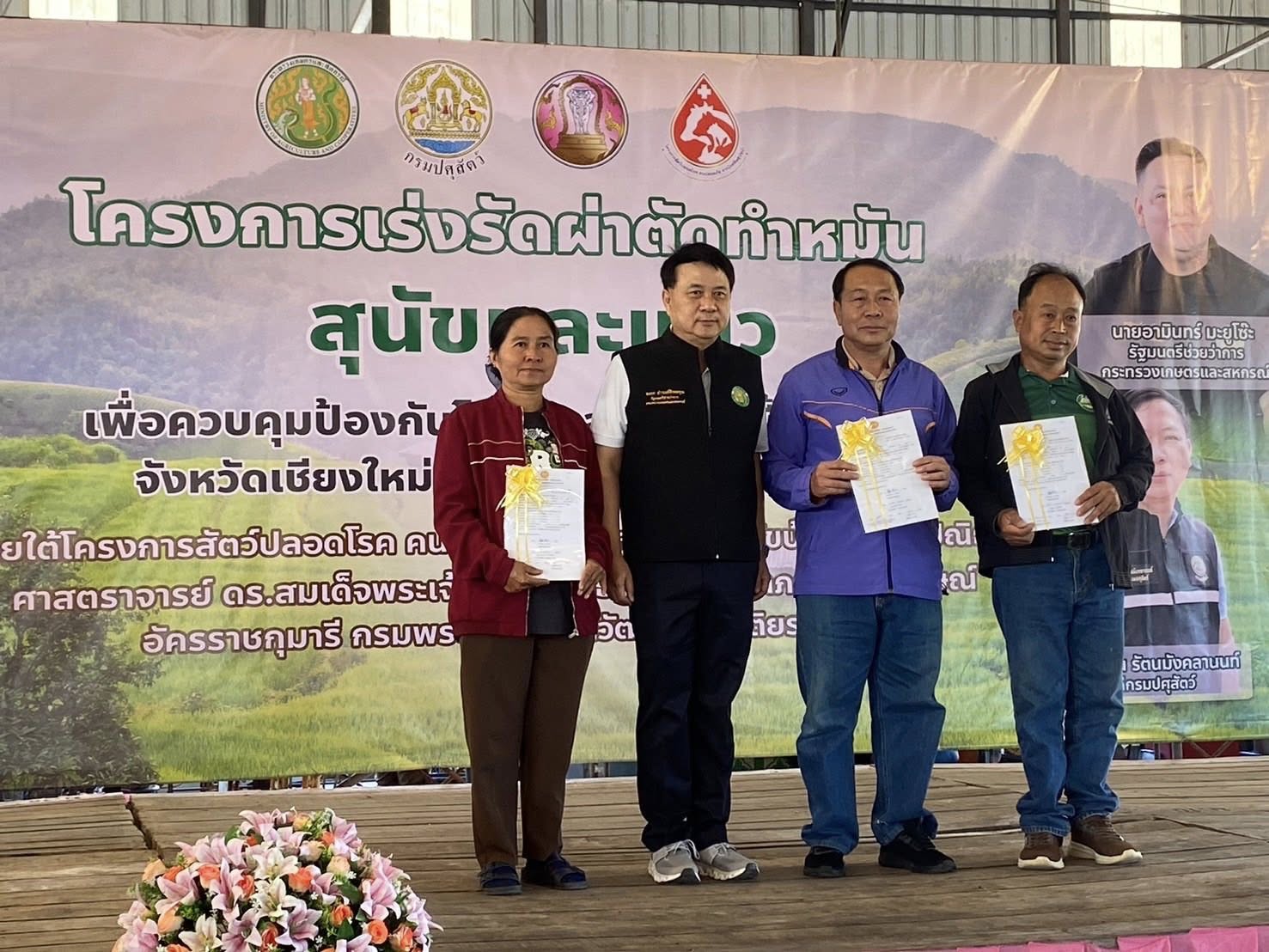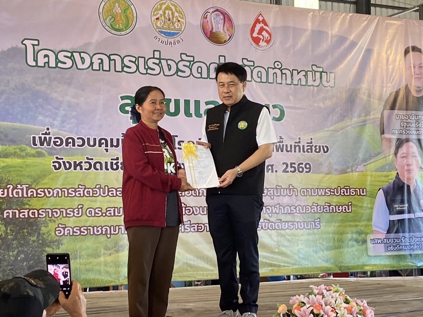 วันที่ 21 พฤศจิกายน 2568 นายเศรษฐเกียรติ กระจ่างวงษ์ เลขาธิการสำนักงานการปฏิรูปที่ดินเพื่อเกษตรกรรม (ส.ป.ก.) ได้มอบหมายให้นายกฤษณะ ดีปาละ หัวหน้าผู้ตรวจราชการ ส.ป.ก. พร้อมด้วย นายดำรงค์ ไชยโย ปฏิรูปที่ดินจังหวัดเชียงใหม่ และเจ้าหน้าที่ ส.ป.ก. จังหวัดเชียงใหม่ ที่เกี่ยวข้องลงพื้นที่เพื่อติดตาม รัฐมนตรีช่วยว่าการกระทรวงเกษตรและสหกรณ์ (นายนเรศ ธำรงค์ทิพยคุณ) คณะผู้บริหารกระทรวงเกษตรและสหกรณ์ ลงพื้นที่ตรวจราชการในพื้นที่ ณ อำเภอจอมทอง จังหวัดเชียงใหม่ โดยมีรองผู้ว่าราชการจังหวัดเชียงใหม่ กล่าวต้อนรับ และรองอธิบดีกรมปศุสัตว์ กล่าวรายงานวัตถุประสงค์การดำเนินการกิจกรรมโครงการเร่งรัดผ่าตัดทำหมันสุนัขและแมว เพื่อควบคุมป้องกันโรคพิษสุนัขบ้าในพื้นที่เสี่ยง ประจำปีงบประมาณ 2569 ณ ตลาดนาเจริญ ต.ข่วงเปา อ.จอมทอง จ.เชียงใหม่