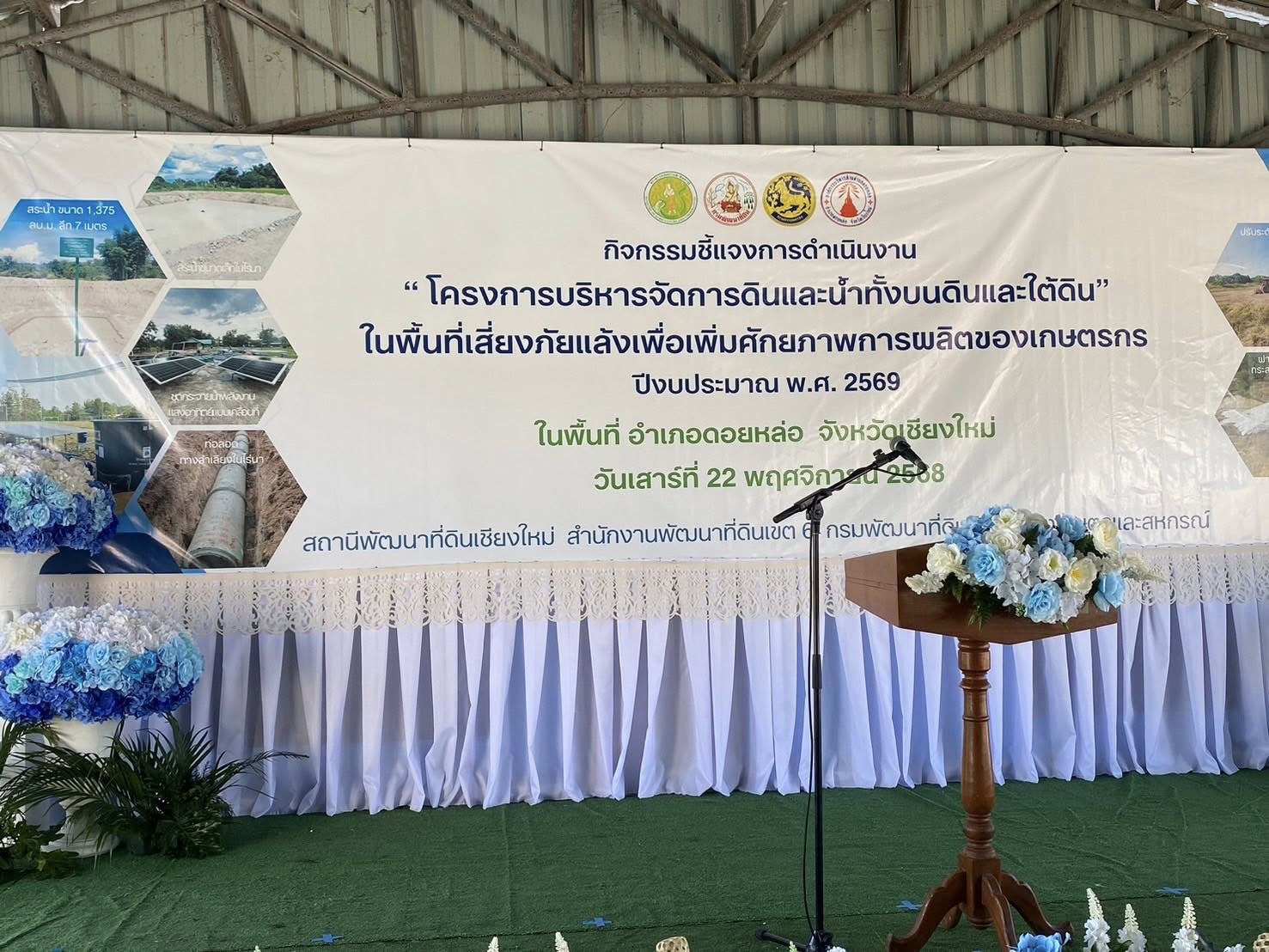 ในเวลาต่อมา รัฐมนตรีช่วยว่าการกระทรวงเกษตรและสหกรณ์ นายนเรศ ธำรงค์ทิพยคุณ) พร้อมด้วยคณะผู้บริหารกระทรวงเกษตรและสหกรณ์ได้เดินทางไปยังเทศบาลตำบลยางคราม อำเภอดอยหล่อ จังหวัดเชียงใหม่ เพื่อลงพื้นที่ตรวจราชการ โครงการบริหารจัดการที่ดินและน้ำทั้งบนดินและใต้ดินในพื้นที่เสี่ยงภัยแรงเพื่อเพิ่มศักยภาพการผลิตของเกษตรกรประจำปีงบประมาณ 2569 โดยมีนายอำเภอดอยหล่อ กล่าวต้อนรับ และผู้อำนวยการสถานีพัฒนาที่ดินเชียงใหม่กล่าวรายงานวัตถุประสงค์ของการดำเนินโครงการ ฯ ดังกล่าว พร้อมบรรยายสรุปแผนงาน แนวทางการดำเนินงาน รายละเอียดกิจกรรมในพื้นที่เป้าหมาย และประโยชน์ที่ได้รับ