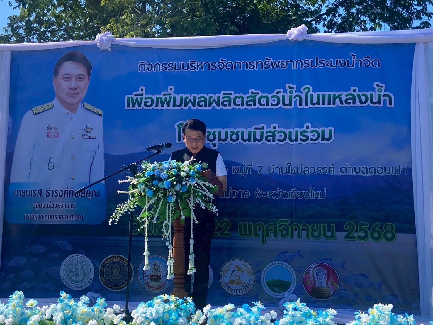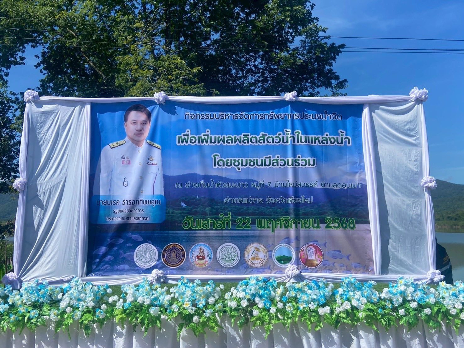 วันที่ 22 พฤศจิกายน 2568 นายเศรษฐเกียรติ กระจ่างวงษ์ เลขาธิการสำนักงานการปฏิรูปที่ดินเพื่อเกษตรกรรม (ส.ป.ก) ได้มอบหมายให้นายกฤษณะ ดีปาละ หัวหน้าผู้ตรวจราชการ ส.ป.ก. พร้อมด้วย นายดำรงค์ ไชยโย ปฏิรูปที่ดินจังหวัดเชียงใหม่ และเจ้าหน้าที่ ส.ป.ก. จังหวัดเชียงใหม่ ที่เกี่ยวข้องลงพื้นที่เพื่อติดตาม รัฐมนตรีช่วยว่าการกระทรวงเกษตรและสหกรณ์ (นายนเรศ ธำรงค์ทิพยคุณ) คณะผู้บริหารกระทรวงเกษตรและสหกรณ์ ลงพื้นที่ตรวจราชการในพื้นที่ ณ อ่างเก็บน้ำห้วยมะนาว ตำบลดอนเปา อำเภอแม่วาง จังหวัดเชียงใหม่ โดยมีผู้ว่าราชการจังหวัดเชียงใหม่ กล่าวต้อนรับ และผู้แทนกรมประมง กล่าวรายงานวัตถุประสงค์การจัดกิจกรรม ในพื้นที่อ่างเก็บน้ำห้วยมะนาว และได้พบปะเกษตรกร และรับฟังปัญหาต่างๆ พร้อมทั้งมอบพันธ์ุสัตว์น้ำและปัจจัยการผลิต