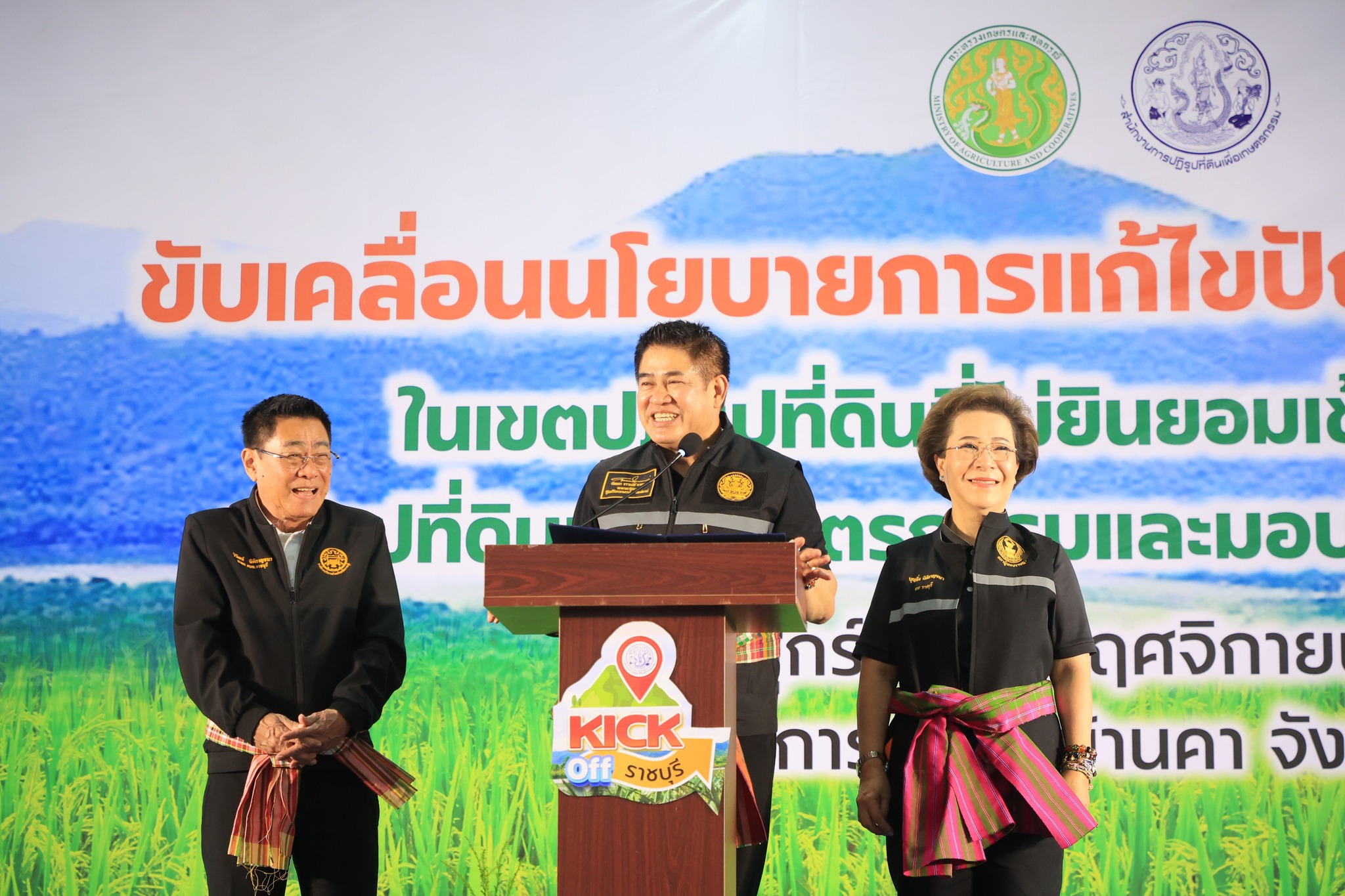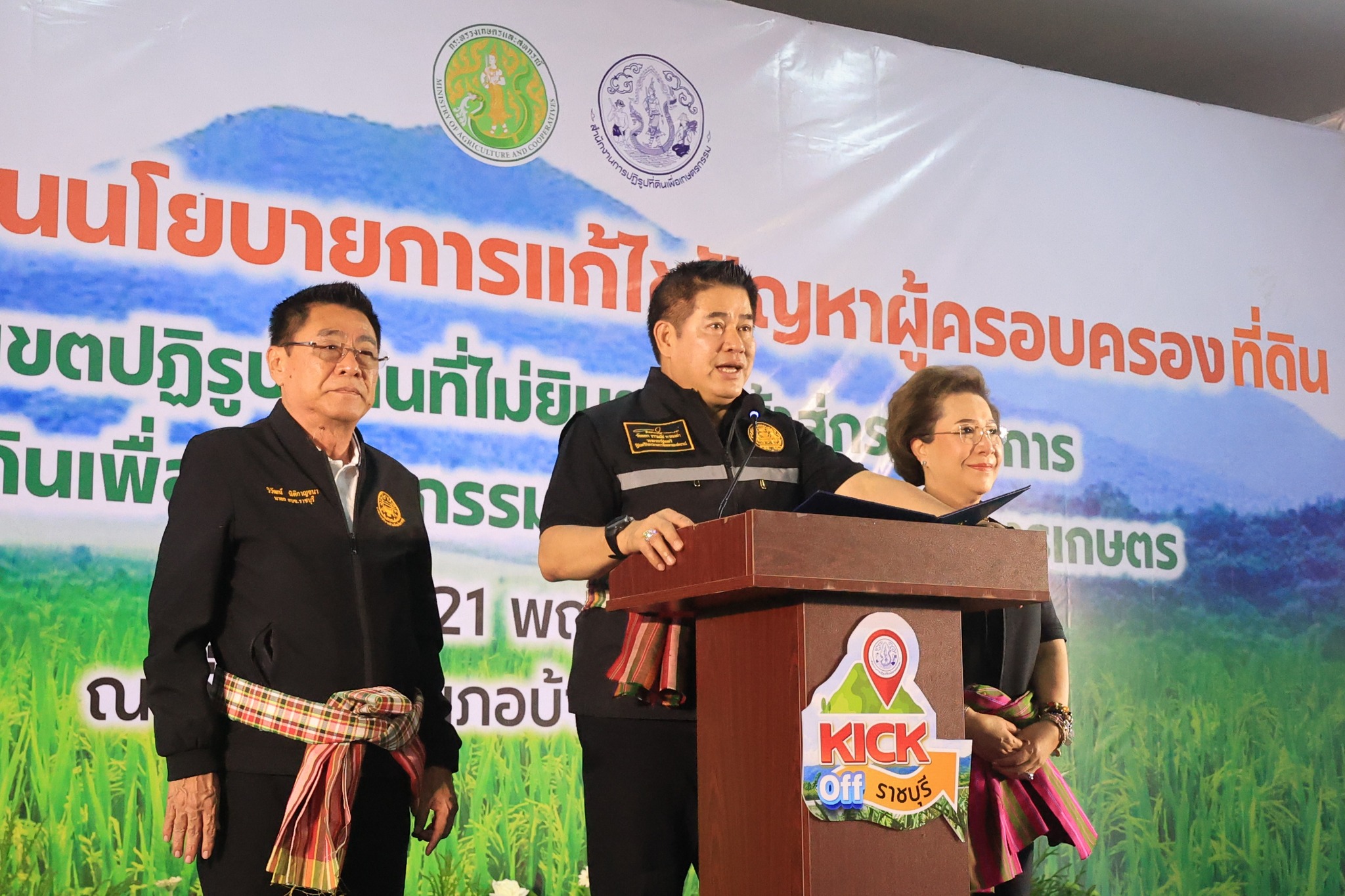 วันที่ 21 พฤศจิกายน 2568 ร้อยเอก ธรรมนัส พรหมเผ่า รองนายกรัฐมนตรี และรัฐมนตรีว่าการกระทรวงเกษตรและสหกรณ์ เป็นประธานในพิธี “Kick off ขับเคลื่อนนโยบายการแก้ไขปัญหาผู้ครอบครองในเขตปฏิรูปที่ดินที่ไม่ยินยอมเข้าสู่กระบวนการปฏิรูปที่ดินเพื่อเกษตรกรรม และมอบโฉนดเพื่อการเกษตร” โดยมี นายวิณะโรจน์ ทรัพย์ส่งสุข ปลัดกระทรวงเกษตรและสหกรณ์ นายเศรษฐเกียรติ กระจ่างวงษ์ เลขาธิการสำนักงานการปฏิรูปที่ดินเพื่อเกษตรกรรม (เลขาธิการ ส.ป.ก.) นางสาวฐิติลักษณ์ คำพา ผู้ว่าราชการจังหวัดราชบุรี คณะผู้บริหาร ส.ป.ก. ปฏิรูปที่ดินจังหวัด คณะผู้บริหารสังกัดกระทรวงเกษตรและสหกรณ์ เข้าร่วม ณ ที่ว่าการอำเภอบ้านคา จังหวัดราชบุรี