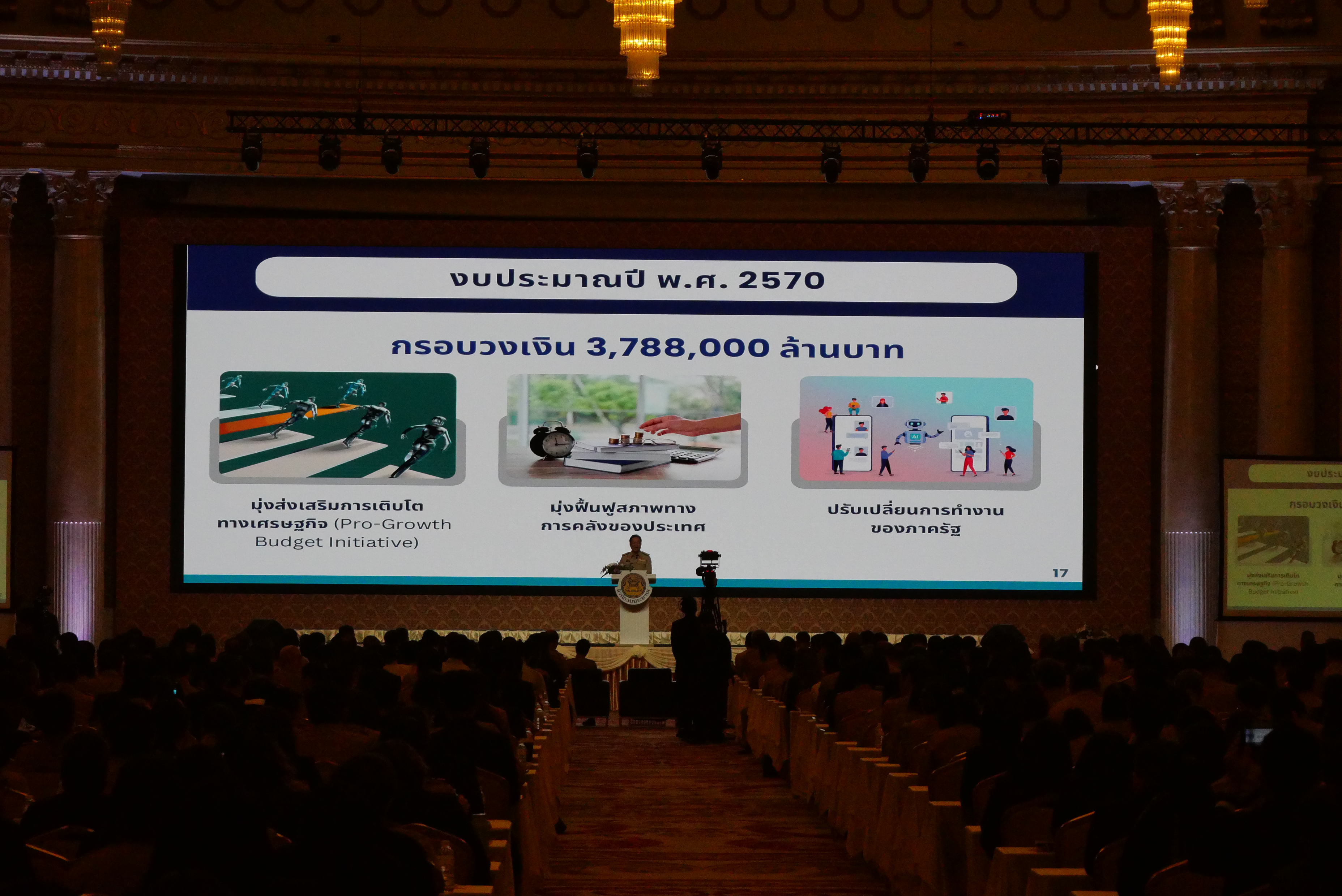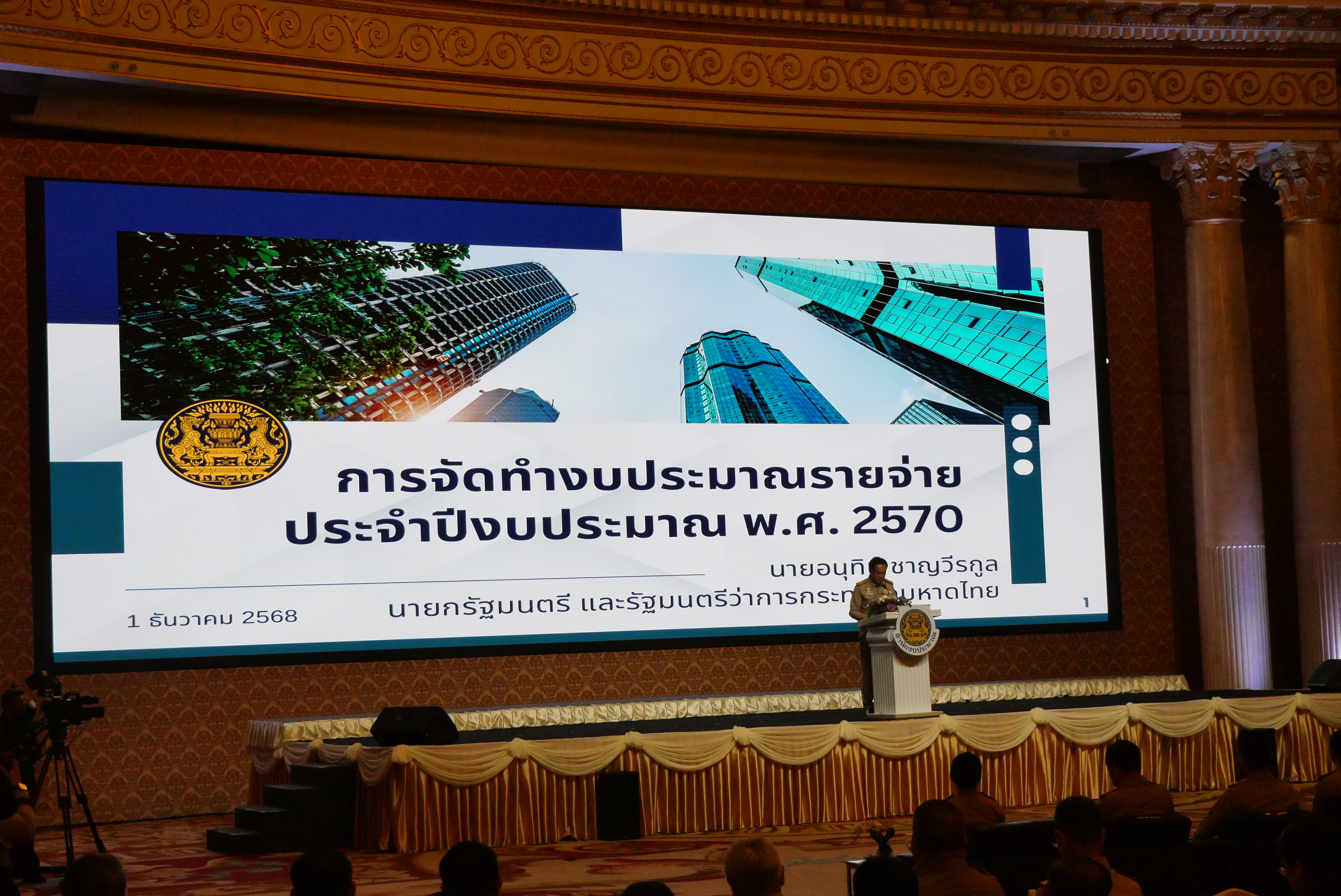 วันจันทร์ที่ 1 ธันวาคม 2568 เวลา 10.00 น. นายเศรษฐเกียรติ กระจ่างวงษ์ เลขาธิการสำนักงานการปฏิรูปที่ดินเพื่อเกษตรกรรม (เลขาธิการ ส.ป.ก.) มอบหมายให้ นายปรีชา ลิ้มถวิล รองเลขาธิการ ส.ป.ก. ร่วมประชุมสัมมนาการมอบนโยบายและแนวทางการจัดทำงบประมาณรายจ่ายประจำปีงบประมาณ พ.ศ. 2570 พร้อมด้วย นายเกียรติยศ ทรงสง่า ผู้อำนวยการสำนักวิชาการและแผนงาน และเจ้าหน้าที่ที่เกี่ยวข้อง ณ ห้องรอยัล จูบิลี่ บอลรูม อาคารชาเลนเจอร์ ชั้น 1 ศูนย์แสดงสินค้าและการประชุมอิมแพ็ค เมืองทองธานี อำเภอปากเกร็ด จังหวัดนนทบุรี โดยมี นายอนุทิน ชาญวีรกูล นายกรัฐมนตรี เป็นประธาน