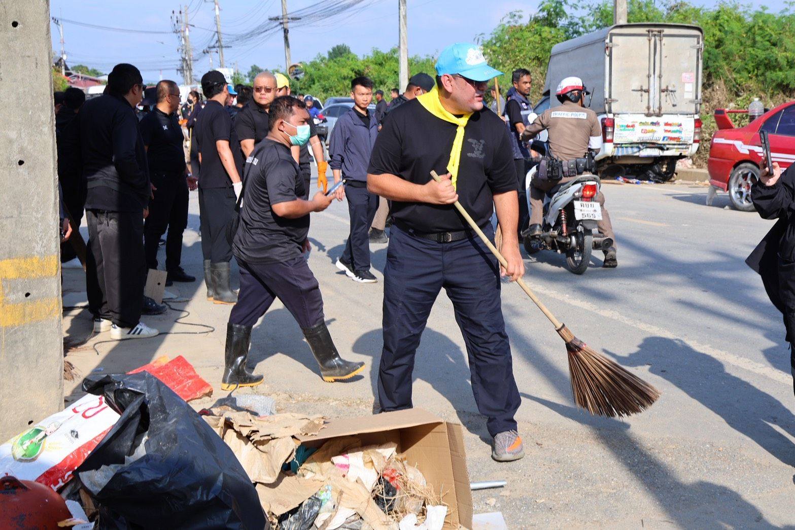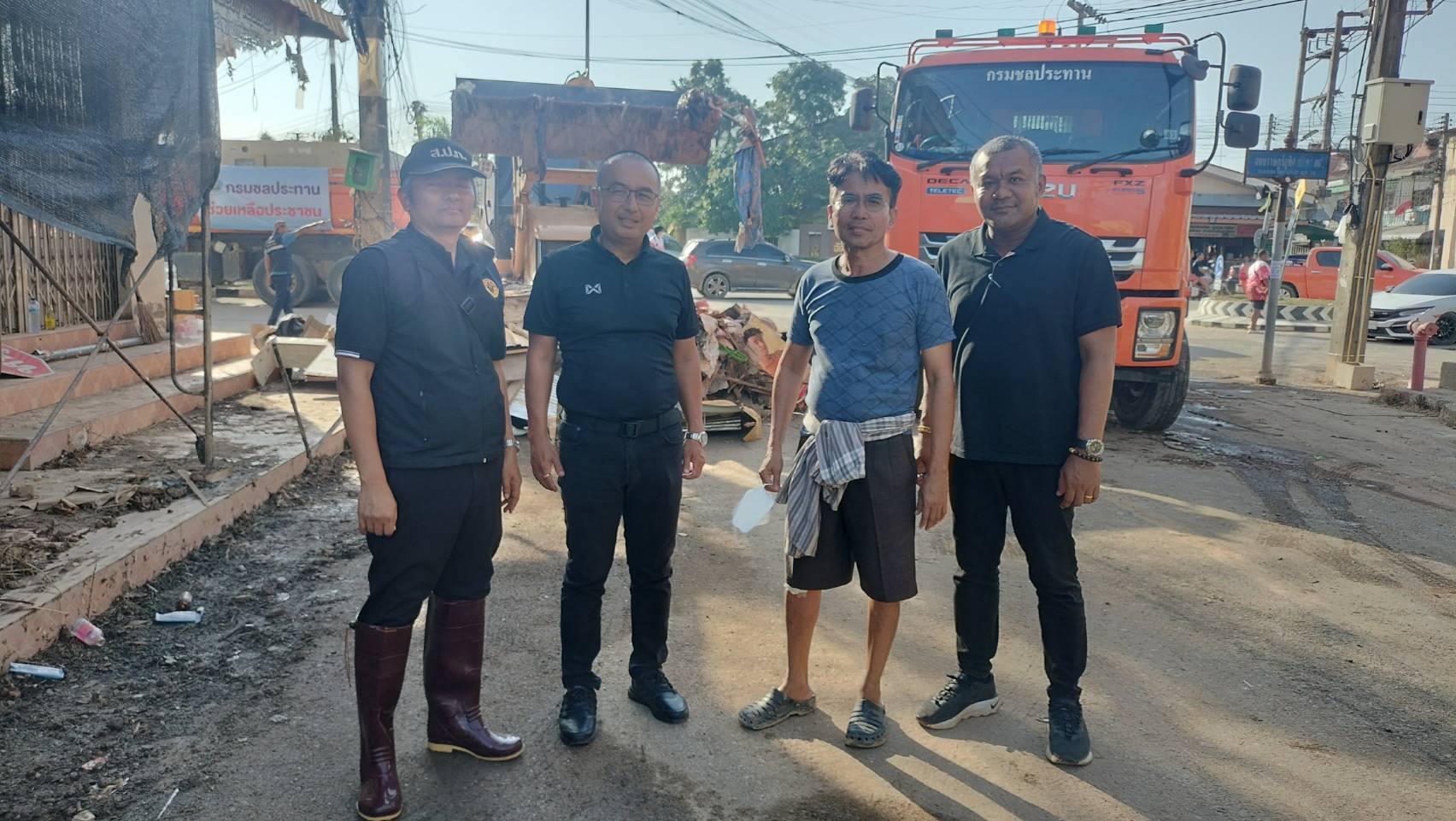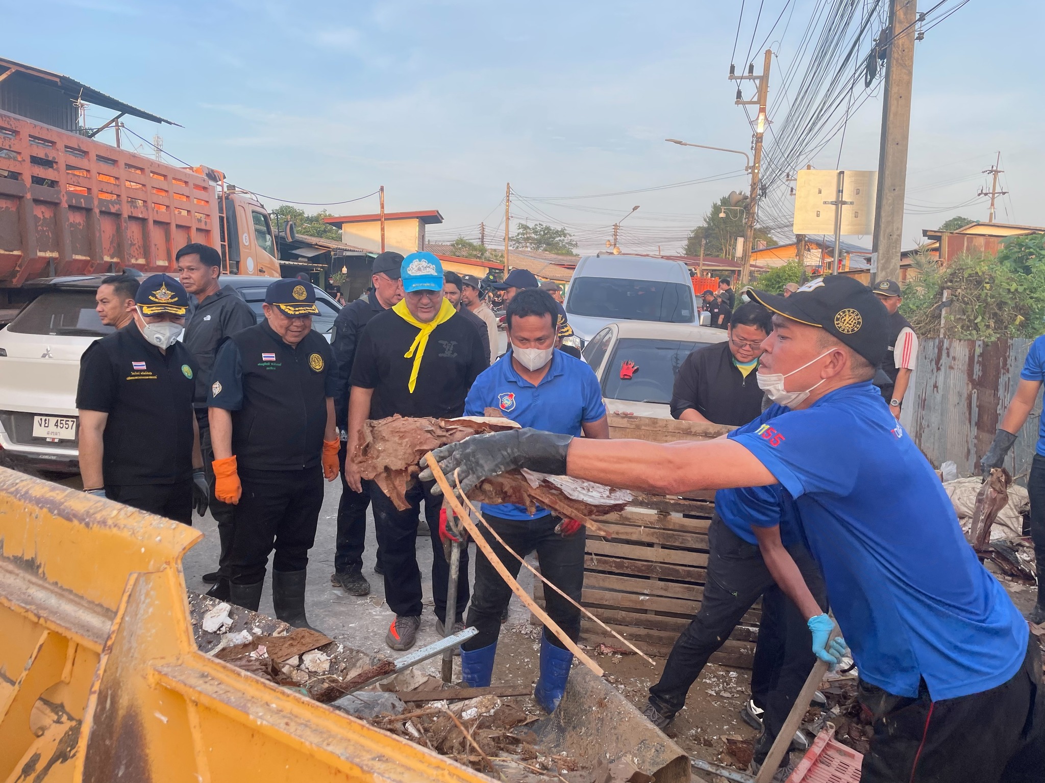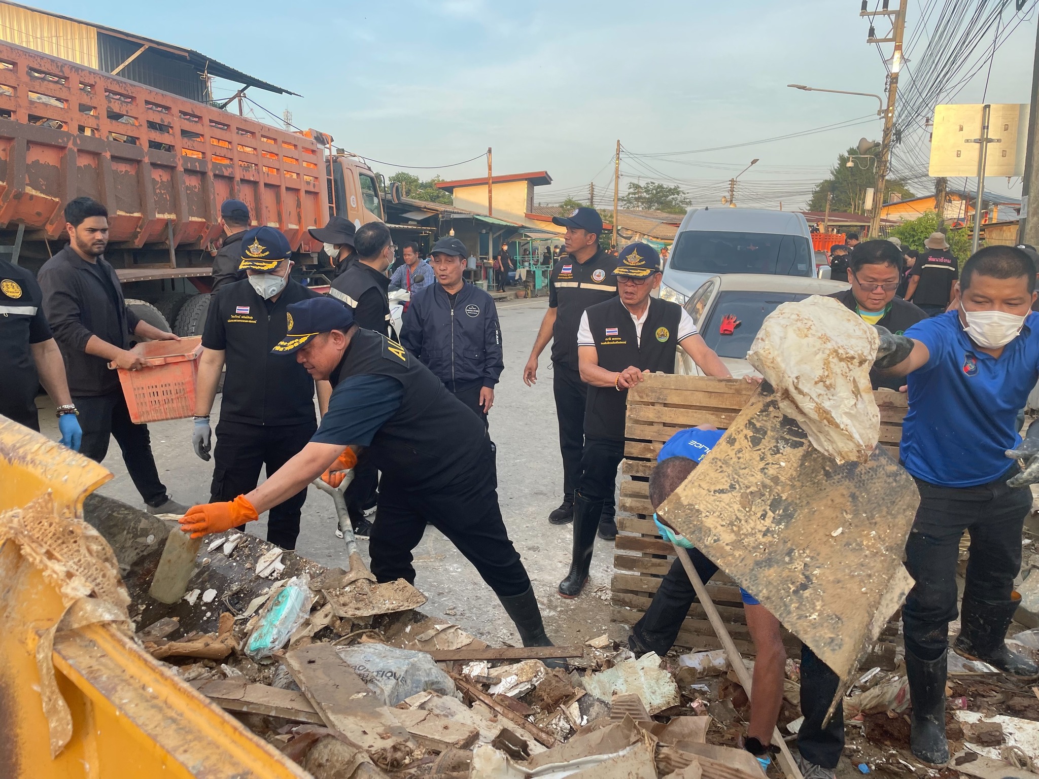 โดย ร้อยเอก ธรรมนัส ได้นำทีมจัดการยานพาหนะบนพื้นผิวจราจร เนื่องจากมีรถของประชาชนที่นำมาจอดเอาไว้และยังไม่สามารถขยับเคลื่อนออกได้ จากนั้นกรมชลประทานระดมเครื่องจักรเครื่องมือและรถบรรทุก เข้าดำเนินการฟื้นฟูพื้นที่ที่ได้รับความเสียหายบริเวณวงเวียนหน้าหมู่บ้านฉัตรทอง เขต 8 โดยเร่งทำความสะอาด เก็บขยะ และเคลียร์พื้นที่สาธารณะ เพื่อให้ประชาชนสามารถกลับมาใช้ชีวิตประจำวันได้ตามปกติโดยเร็วที่สุด