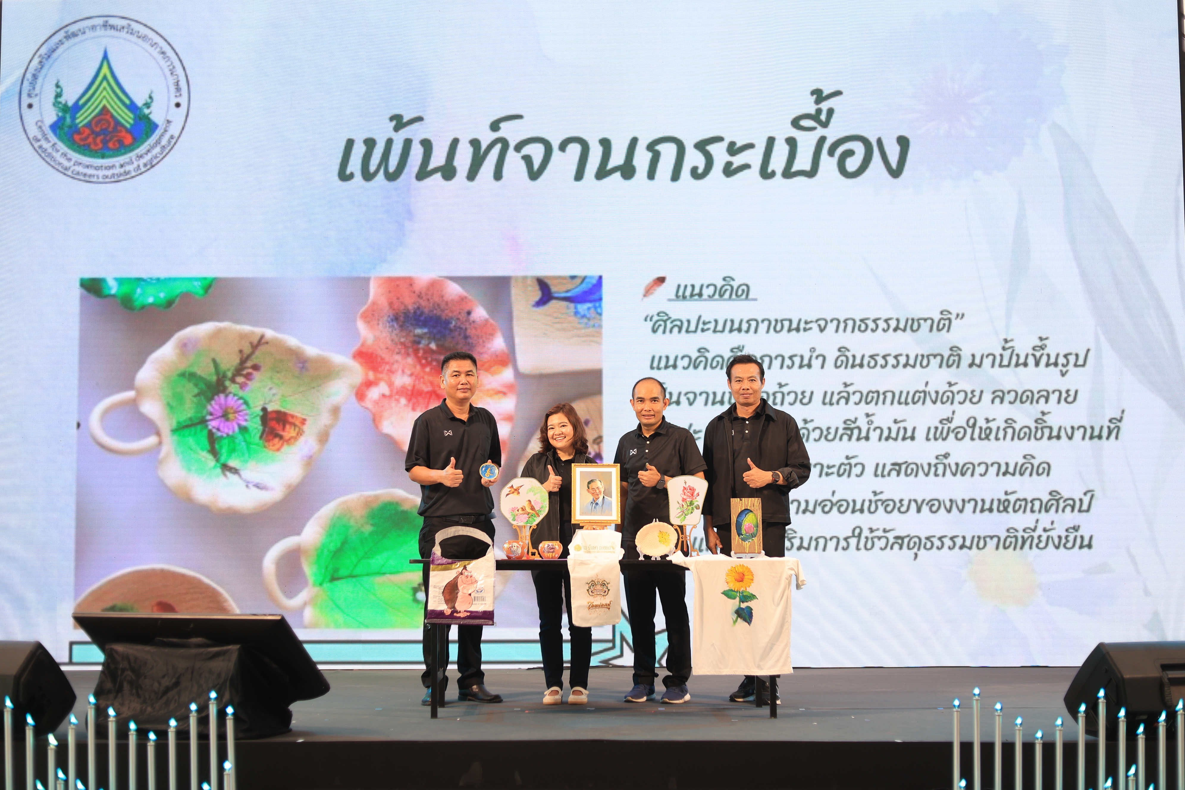 นอกจากนั้นยังนำผลผลิตการเกษตร สินค้าดีสินค้าเด่น มาจัดแสดงและจำหน่าย เพื่อเป็นการเพิ่มรายได้ให้แก่เกษตรกร จำนวน ๒ บูธ คือ เมี่ยงกลีบบัว จากวิสาหกิจชุมชนกลุ่มพัฒนาชุมชนบ้านดอนสามสิบ จังหวัดนครปฐม และเมล่อนจากวิสาหกิจชุมชนเมล่อน หมู่ใหญ่ร่วมใจพัฒนา จังหวัดพระนครศรีอยุธยา และยังมีกิจกรรมการให้บริการพี่น้องเกษตรกรและประชาชนทั่วไป เป็นการสาธิตกิจกรรมส่งเสริมอาชีพ ณ เวทีกลาง ได้แก่ การวาดภาพบนกระเบื้อง และมีของระลึกภายในงานคือจานรองแก้ว โดยศูนย์ส่งเสริมและพัฒนาอาชีพเสริมนอกภาคการเกษตร (ศพส.)