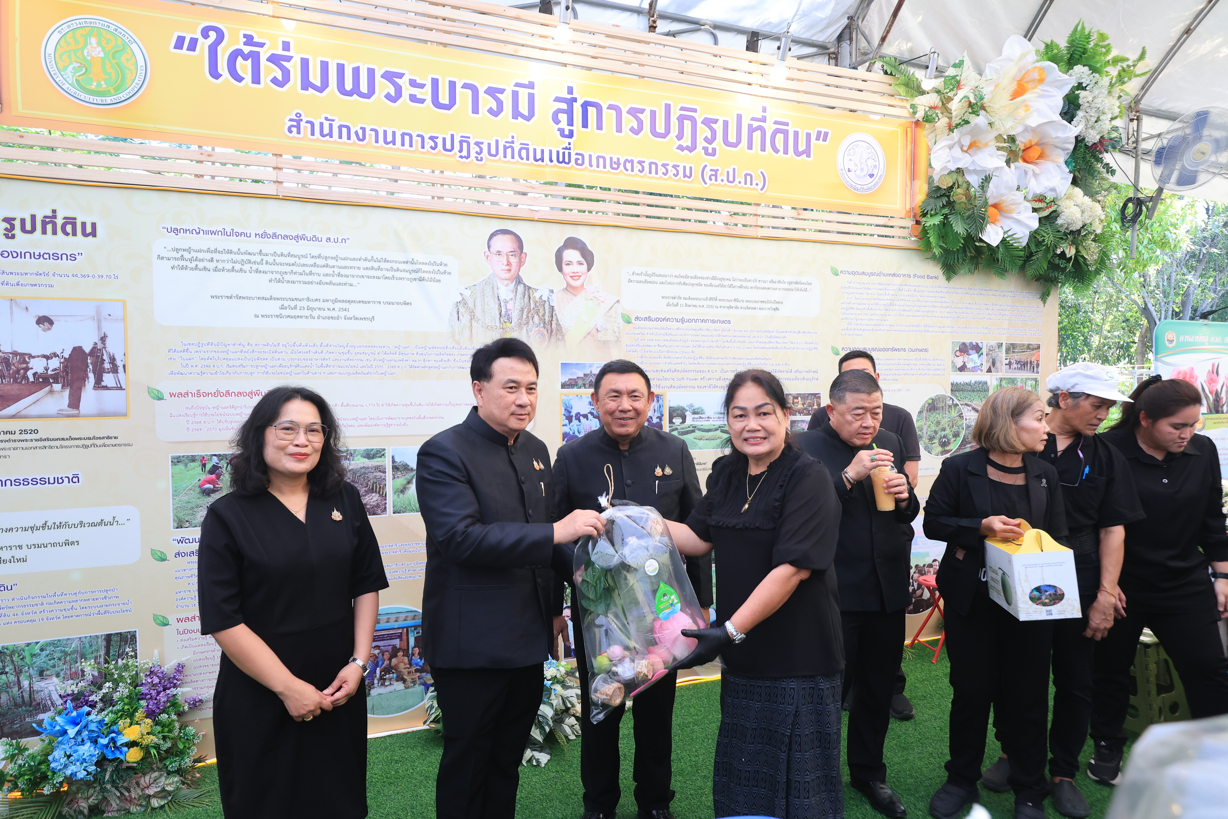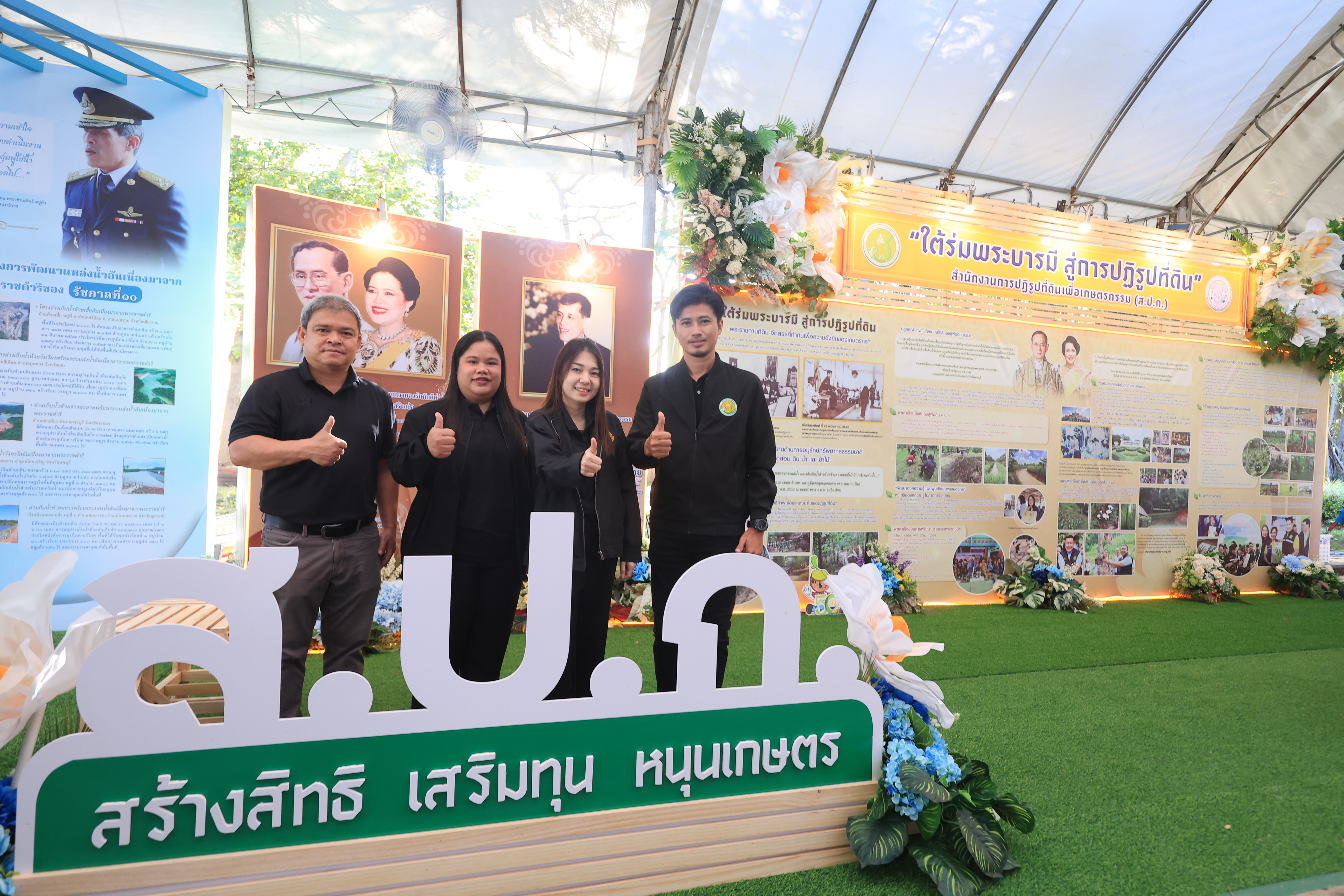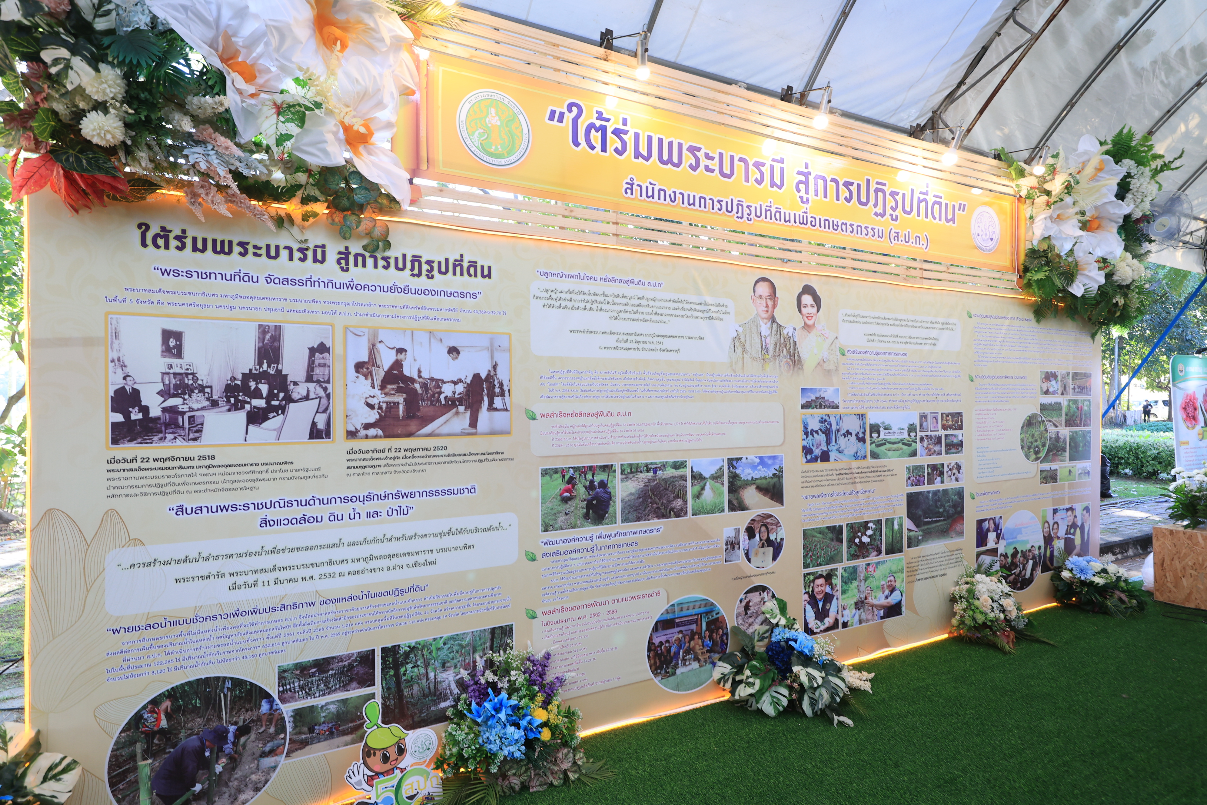 ซึ่ง ส.ป.ก. ได้จัดแสดงนิทรรศการที่มีเนื้อหาแสดงถึงการน้อมรำลึกในพระมหากรุณาธิคุณของพระบาทสมเด็จพระบรมชนกาธิเบศร มหาภูมิพล อดุลยเดชมหาราช บรมนาถบพิตร และ สมเด็จพระนางเจ้าสิริกิติ์ พระบรมราชินีนาถ พระบรมราชชนนีพันปีหลวง และแสดงให้เห็นจุดเริ่มต้นของการปฏิรูปที่ดินเพื่อเกษตรกรรม การนำมาสู่ที่ดินพระราชทาน การพัฒนาโครงสร้างพื้นฐานในที่ดินเกษตรกร การพัฒนาการเกษตรทุกมิติ ตั้งแต่การถ่ายทอดความรู้ นวัตกรรมและเทคโนโลยีเพื่อเพิ่มประสิทธิภาพในการผลิตและแปรรูปผลผลิต ตลอดจนมีการขยายผลต่อยอดเพื่อยกระดับความเป็นอยู่ของเกษตรกร