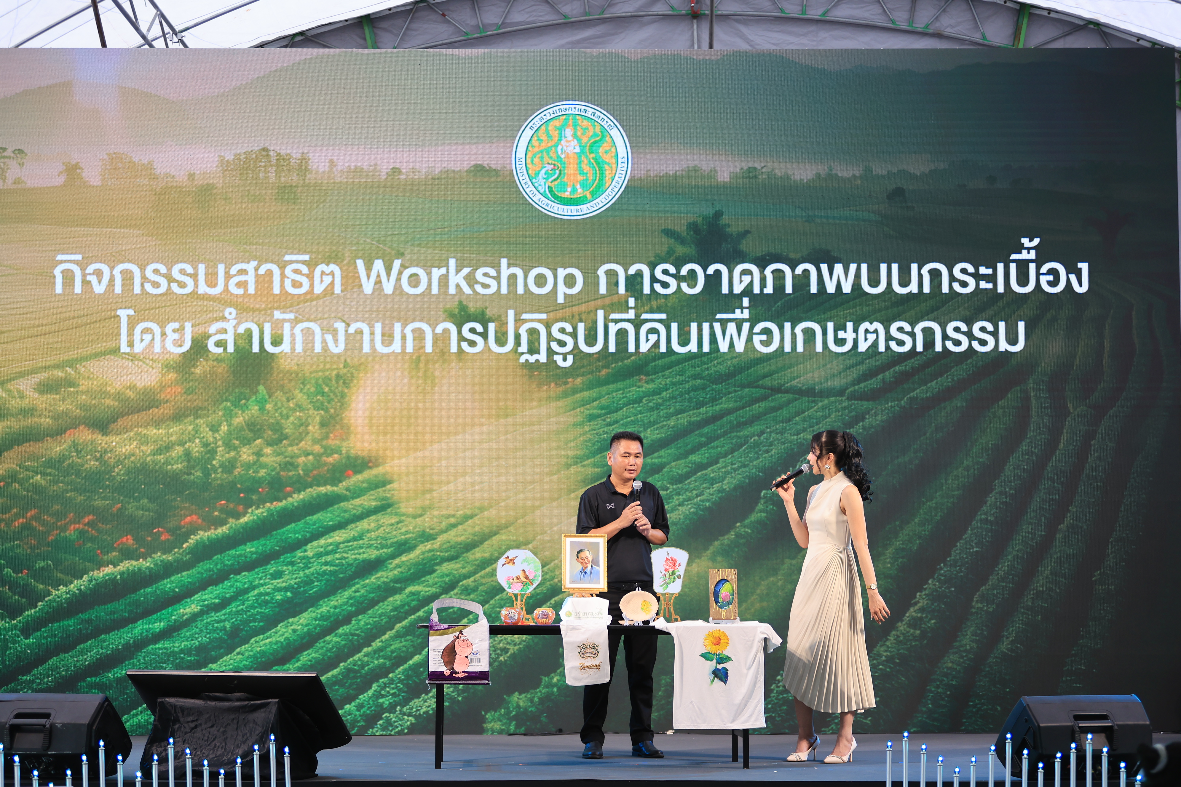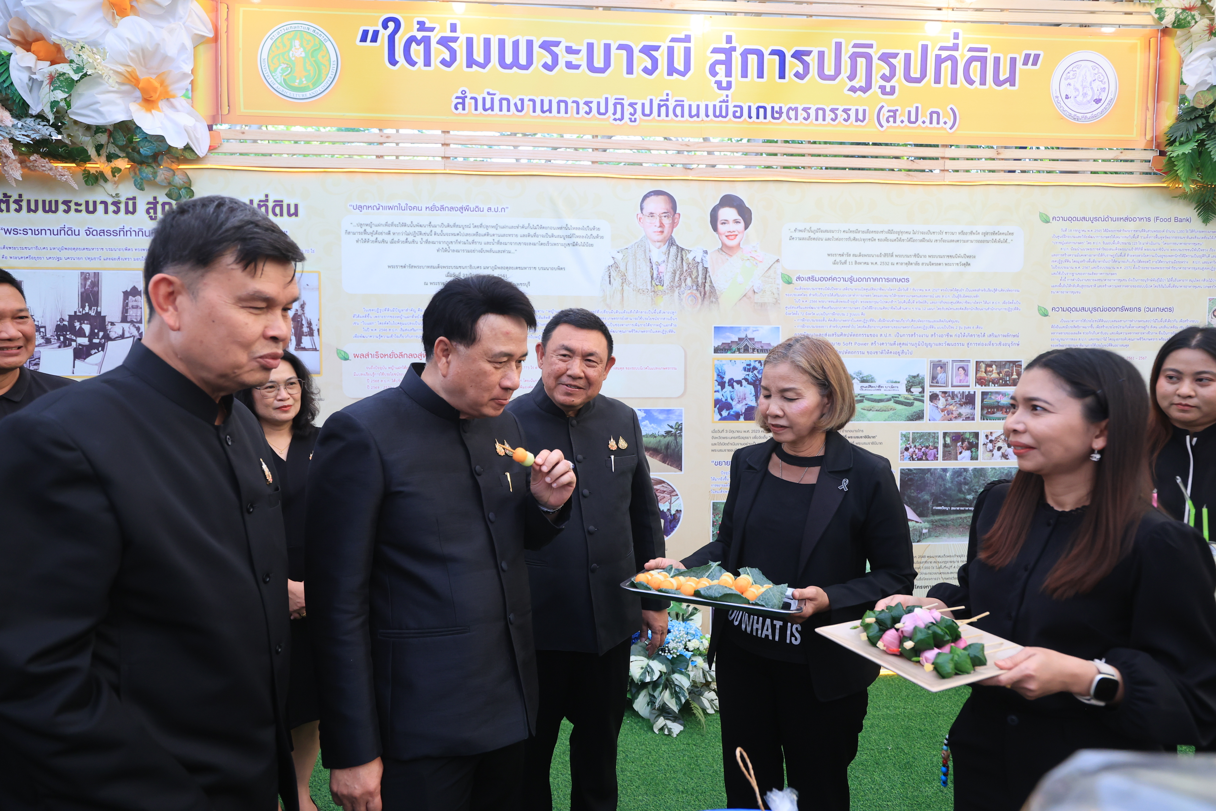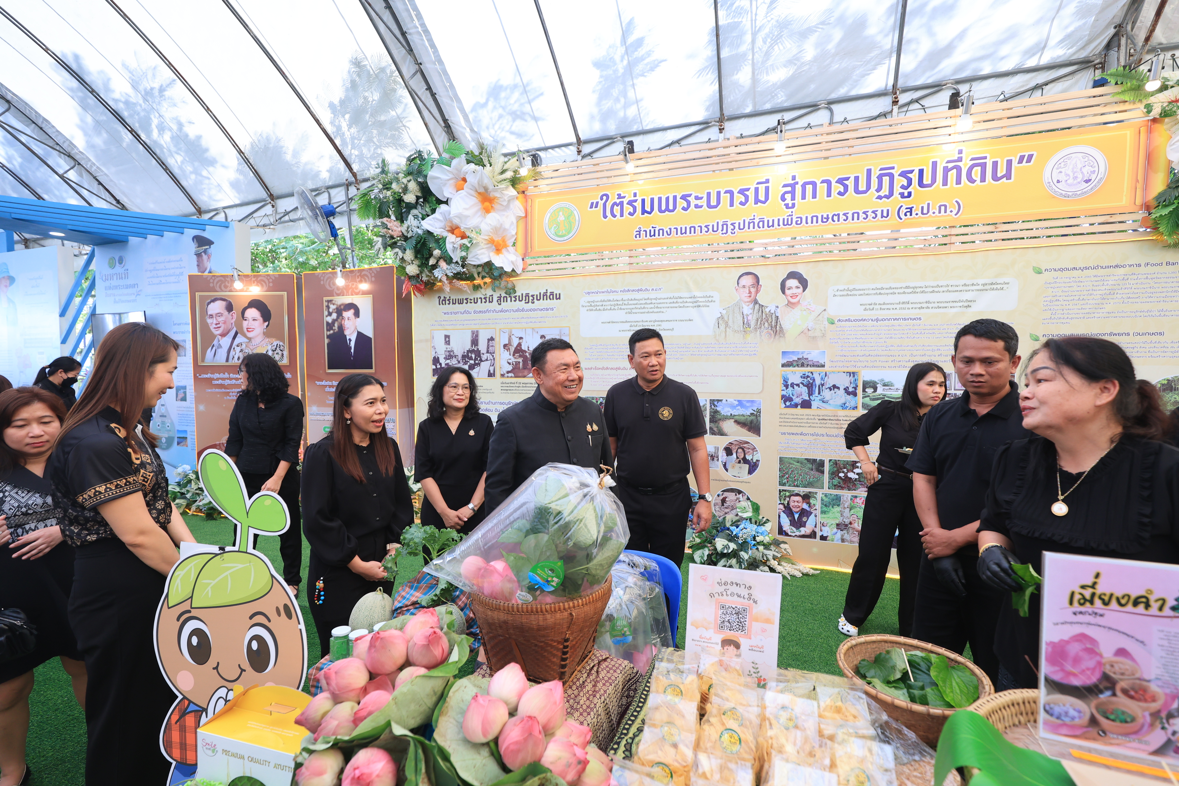 ซึ่ง ส.ป.ก. ได้จัดแสดงนิทรรศการที่มีเนื้อหาแสดงถึงการน้อมรำลึกในพระมหากรุณาธิคุณของพระบาทสมเด็จพระบรมชนกาธิเบศร มหาภูมิพล อดุลยเดชมหาราช บรมนาถบพิตร และ สมเด็จพระนางเจ้าสิริกิติ์ พระบรมราชินีนาถ พระบรมราชชนนีพันปีหลวง และแสดงให้เห็นจุดเริ่มต้นของการปฏิรูปที่ดินเพื่อเกษตรกรรม การนำมาสู่ที่ดินพระราชทาน การพัฒนาโครงสร้างพื้นฐานในที่ดินเกษตรกร การพัฒนาการเกษตรทุกมิติ ตั้งแต่การถ่ายทอดความรู้ นวัตกรรมและเทคโนโลยีเพื่อเพิ่มประสิทธิภาพในการผลิตและแปรรูปผลผลิต ตลอดจนมีการขยายผลต่อยอดเพื่อยกระดับความเป็นอยู่ของเกษตรกร