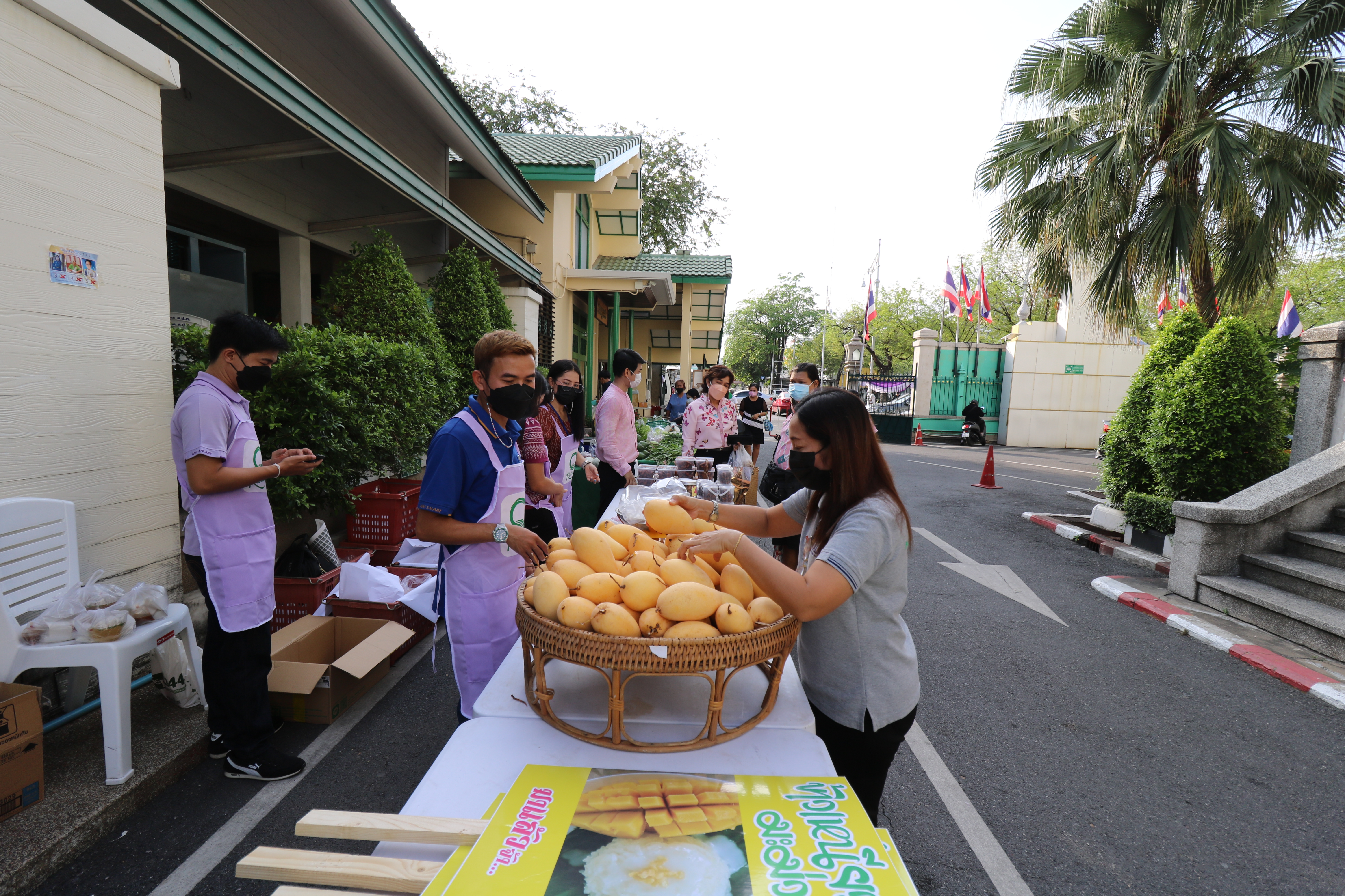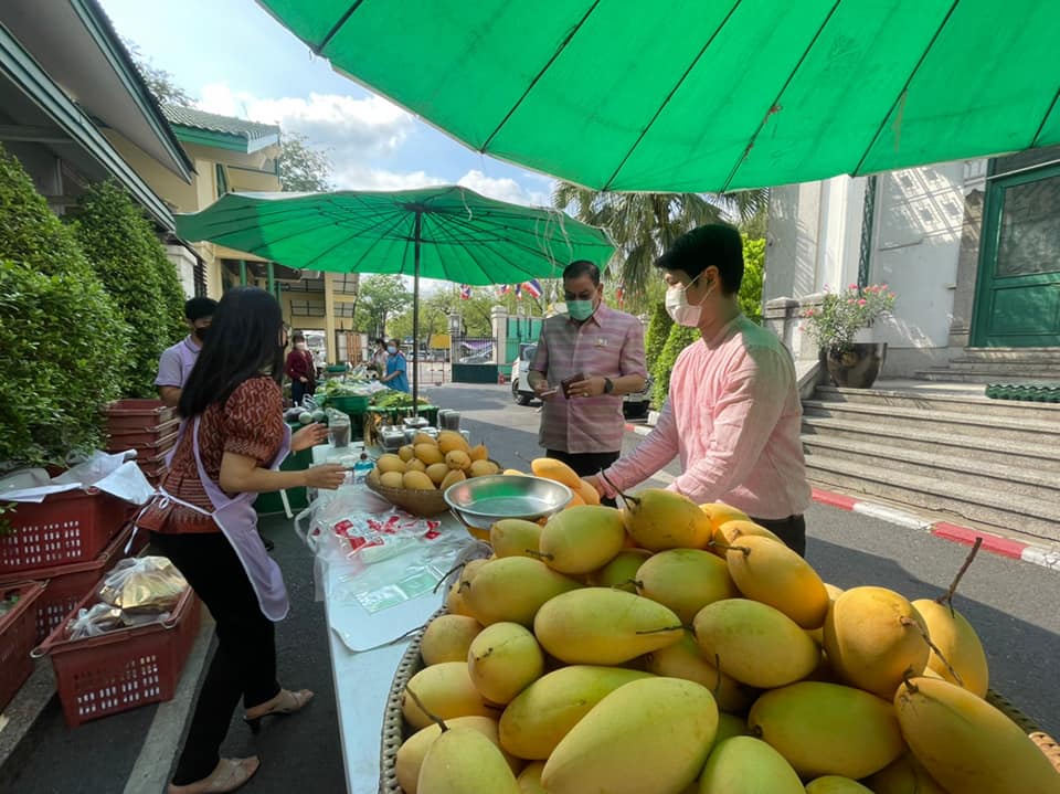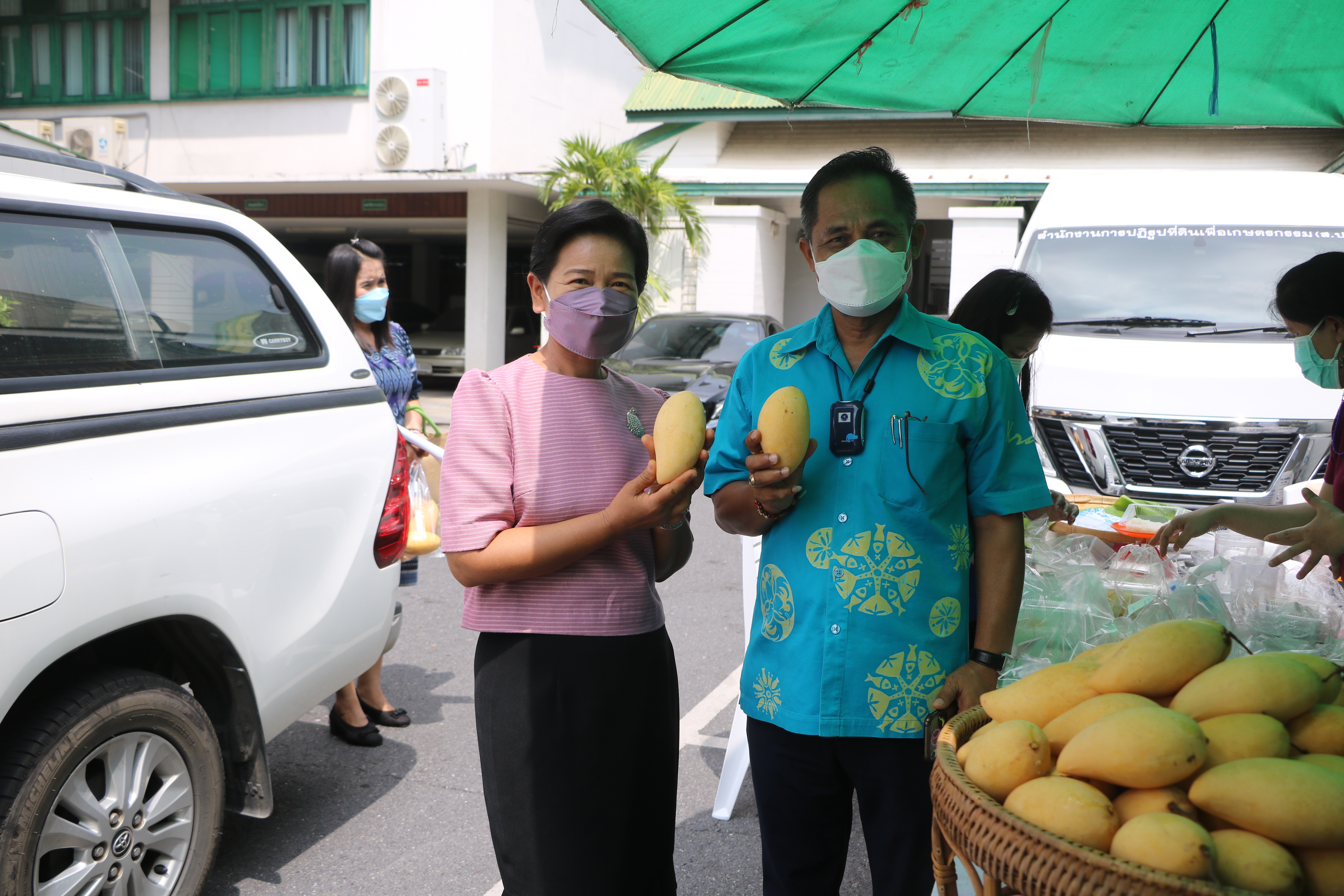 วันอังคารที่ 26 เม.ย. 2565 เวลา 10.30 น. ดร. วิณะโรจน์ ทรัพย์ส่งสุข เลขาธิการสำนักงานการปฏิรูปที่ดินเพื่อเกษตรกรรม (ส.ป.ก.) พร้อมด้วย นายสุริยน พัชรครุกานนท์ รองเลขาธิการ ส.ป.ก. นายเอกพงศ์ น้อยสร้าง รองเลขาธิการ (ส.ป.ก.) นายภาชน์ จารุภุมมิก หัวหน้าผู้ตรวจราชการกรม และ นางสาววรรณพร ดอกจำปา ผู้ตรวจราชการกรม ร่วมอุดหนุนสินค้าจากวิสาหกิจชุมชนกลุ่มผลิตและแปรรูปมะขามชนแดน จังหวัดเพชรบูรณ์ ที่มาวางแผงจำหน่าย ณ บริเวณหน้าโรงอาหารสวัสดิการ ส.ป.ก. ถนนราชดำเนินนอก ในการนี้ คณะผู้บริหาร ส.ป.ก. ได้ให้กำลังใจแก่เกษตรกรในการผลิตและจัดจำหน่ายสินค้าคุณภาพต่อไป เพื่อเกิดประโยชน์ต่อคุณภาพชีวิต ของเกษตรกรและลูกค้าที่ได้รับสินค้าคุณภาพ สำหรับสินค้าที่นำมาจัดจำหน่ายในครั้งนี้ ประกอบไปด้วย ข้าวเหนียวมะม่วงน้ำดอกไม้ มะขามชนแดน จากวิสาหกิจชุมชนกลุ่มผลิตและแปรรูปมะขามชนแดน จังหวัดเพชรบูรณ์ และสินค้าเกษตรกรรม พืช ผัก จาก คทช.อุทัยธานี โดยมีลูกค้าให้การตอบรับมากมาย ทั้งจากเจ้าหน้าที่ใน ส.ป.ก. จากเจ้าหน้าที่ในหน่วยงานข้างเคียง และตลอดจนประชาชนทั่วไป