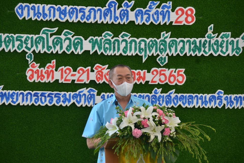 วันจันทร์ ที่ 15 สิงหาคม 2565 เวลา 14.00 น. นายเอกพงศ์ น้อยสร้าง รองเลขาธิการสำนักงานการปฏิรูปที่ดินเพื่อเกษตรกรรม (ส.ป.ก.) พร้อมด้วยนายมนตรี ศรีเพชรใส ปฏิรูปที่ดินจังหวัดสงขลา ร่วมพิธีเปิดงานเกษตรภาคใต้ ครั้งที่ 28 ประจำปี 2565 "เกษตรยุคโควิด พลิกวิกฤตสู่ความยั่งยืน" โดยมี ดร.เฉลิมชัย ศรีอ่อน รัฐมนตรีว่าการกระทรวงเกษตรและสหกรณ์เป็นประธานในพิธีเปิดงานฯ ณ มหาวิทยาลัยสงขลานครินทร์ อำเภอหาดใหญ่ จังหวัดสงขลา