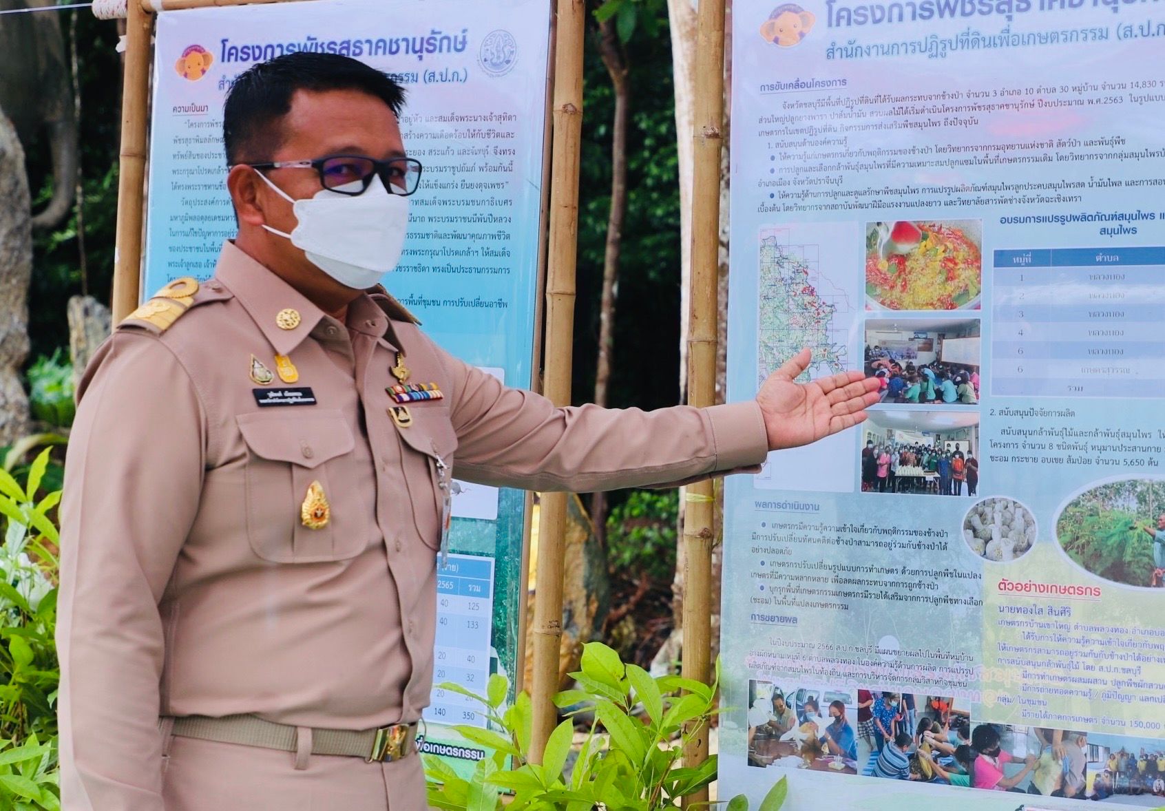 โดย นายวุฒิพงศ์ เนียมหอม รองเลขาธิการฯ ถวายรายงานผลการดำเนินงานและนำชมนิทรรศการ ณ หมู่บ้านคชานุรักษ์ ต.พลวงทอง อ.บ่อทอง จ.ชลบุรี