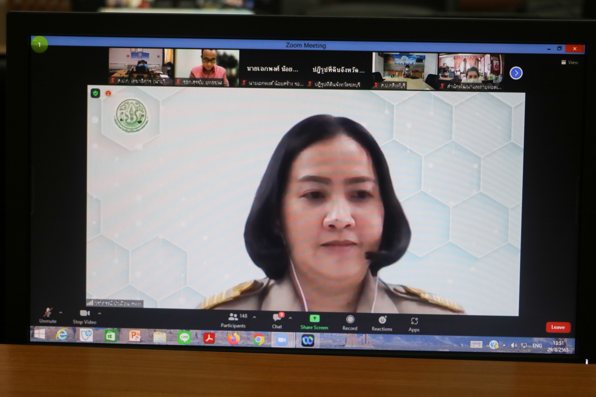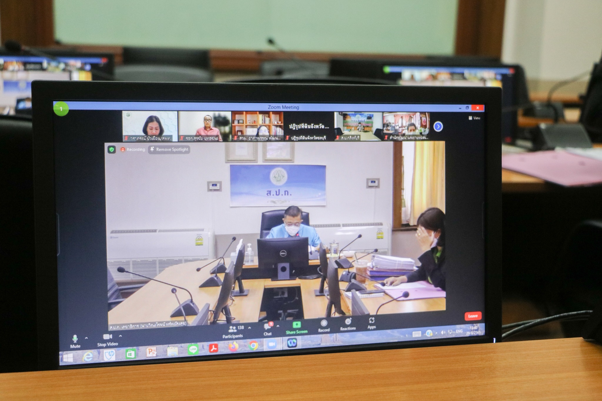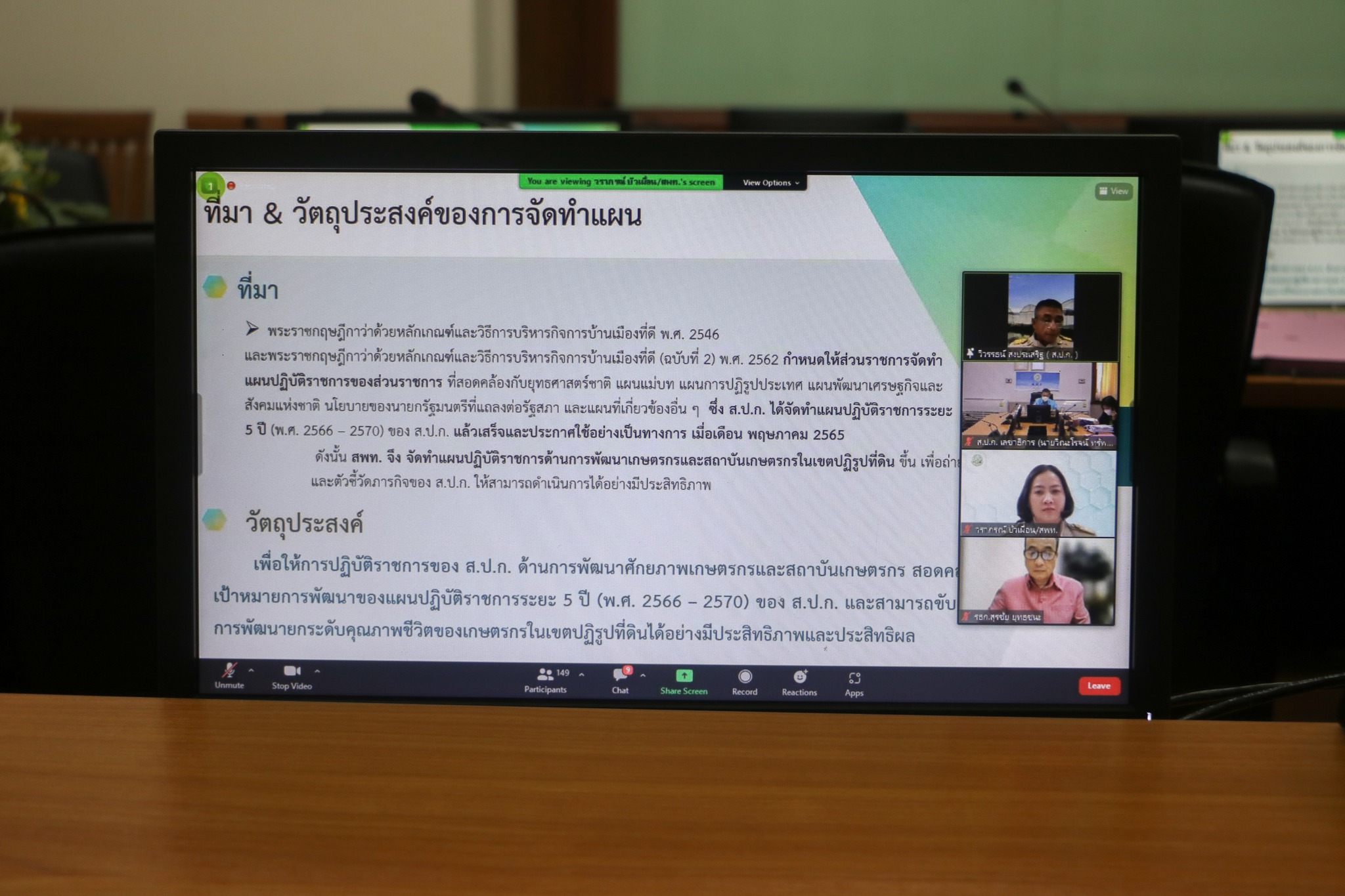 วันจันทร์ที่ 29 สิงหาคม 2565 เวลา 13.30 น. ดร.วิณะโรจน์ ทรัพย์ส่งสุข เลขาธิการสำนักงานการปฏิรูปที่ดินเพื่อเกษตรกรรม (ส.ป.ก.) เป็นประธานการประชุมประชาพิจารณ์ร่างแผนปฏิบัติราชการด้านการพัฒนาเกษตรกรและสถาบันเกษตรกรในเขตปฏิรูปที่ดิน ระยะ 5 ปี (2566-2570) โดยมี นายวุฒิพงศ์ เนียมหอม, นายเอกพงศ์ น้อยสร้าง, นายสุรชัย ยุทธชนะ รองเลขาธิการ ส.ป.ก. พร้อมด้วย นายวิวรรธน์ สงประเสริฐ ผอ.สำนักพัฒนาและถ่ายทอดเทคโนโลยี , ผู้เชี่ยวชาญ, ส.ป.ก.จังหวัด เจ้าหน้าที่ที่เกี่ยวข้องทั้งส่วนกลางและส่วนภูมิภาค เข้าร่วม ผ่านโปรแกรม Zoom Meetings ณ ห้องประชุมจาริน อาคาร ส.ป.ก. ถนนราชดำเนินนอก กทม.