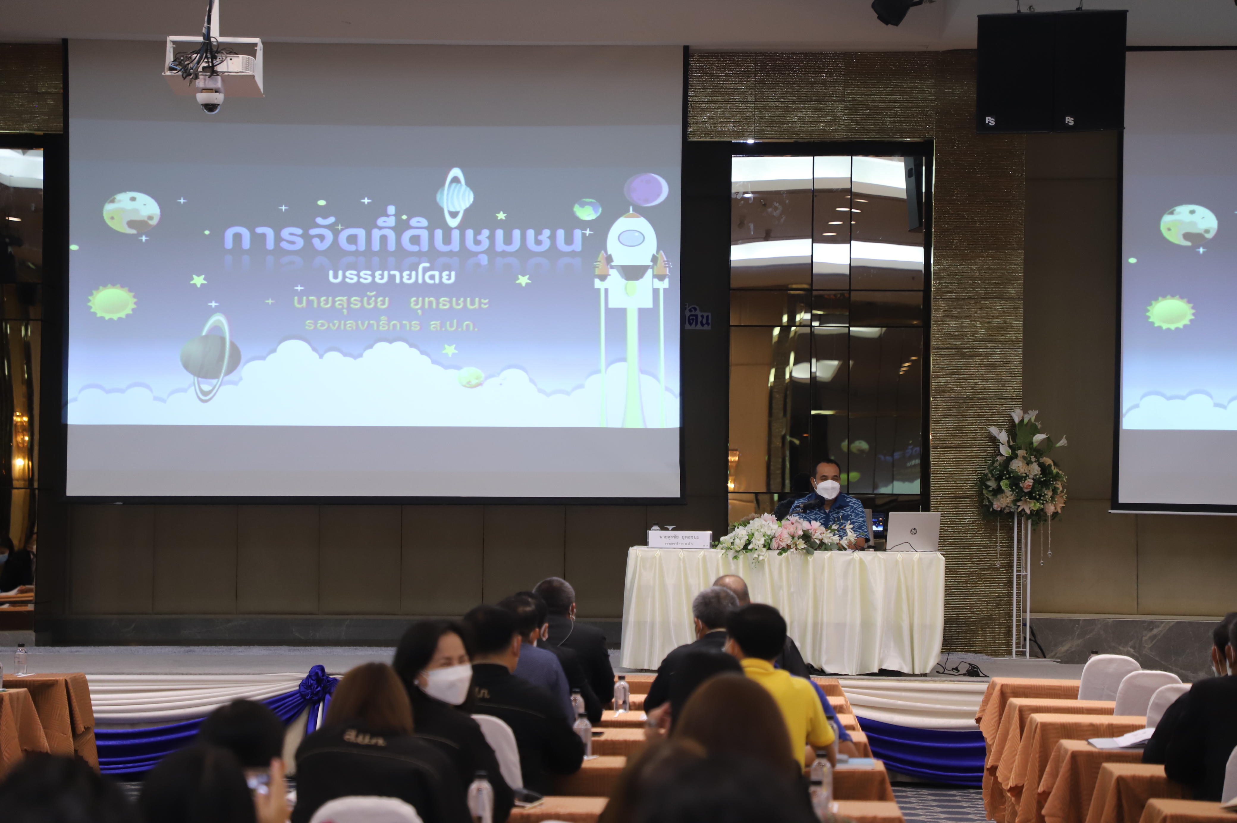 30 สิงหาคม 2565 นายสุรชัย ยุทธชนะ รองเลขาธิการสำนักงานการปฏิรูปที่ดินเพื่อเกษตรกรรม (ส.ป.ก.) ร่วมบรรยายในการฝึกอบรม หลักสูตร "การอบรมเพิ่มทักษะความรู้ทางกฎหมายปฏิรูปที่ดินด้านการจัดที่ดิน" โดยมี นายวัฒนา มังธิสาร ผู้อำนวยการสำนักจัดการแผนที่และสารบบที่ดิน นายประกอบ ยิ่งชล ผู้เชี่ยวชาญด้านออกแบบและวางผังการใช้ประโยชน์ที่ดินในเขตปฏิรูปที่ดิน นายวรภพ ช่วยนุกูล ผู้เชี่ยวชาญด้านกฎหมาย ข้าราชการ และเจ้าหน้าที่ผู้เข้ารับการอบรม ทั้งจากส่วนกลางและส่วนภูมิภาค ร่วมรับฟังการบรรยาย ณ ห้องอมรินทร์ ชั้น 3 โรงแรม เอส.ดี. อเวนิว ถนนบรมราชชนนี แขวงบางบำหรุ เขตบางพลัด กรุงเทพฯ