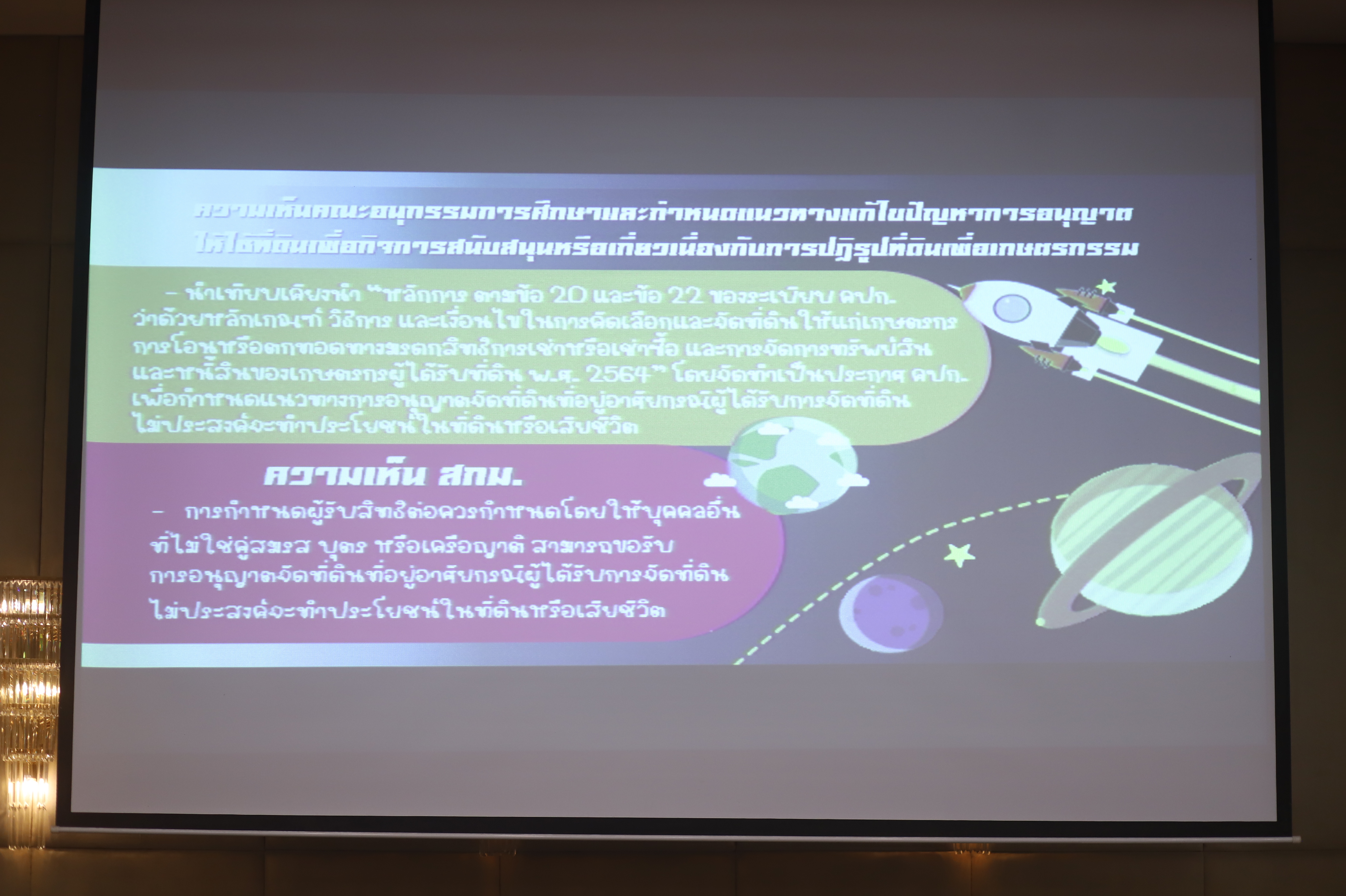 - เรื่อง การจัดที่ดินชุมชนในพื้นที่ปฏิรูปที่ดินเพื่อเกษตรกรรม