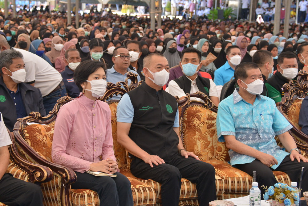 วันที่ 3 กันยายน 2565 เวลา 10.00 น. ดร.วิณะโรจน์ ทรัพย์ส่งสุข เลขาธิการสำนักงานการปฏิรูปที่ดินเพื่อเกษตรกรรม พร้อมด้วย นายวุฒิพงศ์ เนียมหอม, นายเอกพงศ์ น้อยสร้าง รองเลขาธิการ ส.ป.ก. , ดร.เกียรติยศ ทรงสง่า ผู้เชี่ยวชาญด้านการจัดที่ดิน, ปฎิรูปที่ดินจังหวัดปัตตานี, พัทลุง, ยะลา, นราธิวาส, ผู้แทนปฏิรูปที่ดินจงหวัดสงขลา ติดตามคณะรัฐมนตรีว่าการกระทรวงเกษตรและสหกรณ์ (ดร.เฉลิมชัย ศรีอ่อน) ในวาระลงพื้นที่ตรวจราชการและพบปะเกษตรกรและประชาชน ณ โรงเรียนดรุณศาสน์วิทยา ตำบลตะลุบัน อำเภอสายบุรี จังหวัดปัตตานี พร้อมมอบปัจจัยการผลิตทางการเกษตร และเครื่องอุปโภคบริโภค ให้แก่เกษตรกรและประชาชนในพื้นที่ได้แก่