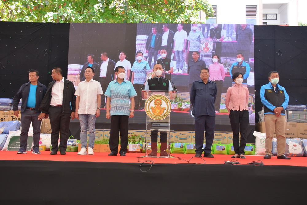- มอบเครื่องอุปโภคบริโภค (ถุงยังชีพ) จำนวน 4,000 ชุด ประกอบด้วย ข้าวสาร ถุงละ 5 กก. รวม 4,000 ถุง ปลากระป๋อง 18,000 กระป๋อง เมล็ดพันธุ์ผัก 3 ชนิด ได้แก่ เมล็ดพันธุ์พริก มะเขือ และถั่วฝักยาว ชนิดละ 4,000 ซอง รวม 12,000 ซอง น้ำมันพืช 4,000 ขวด และน้ำตาลทราย 4,000 ถุง