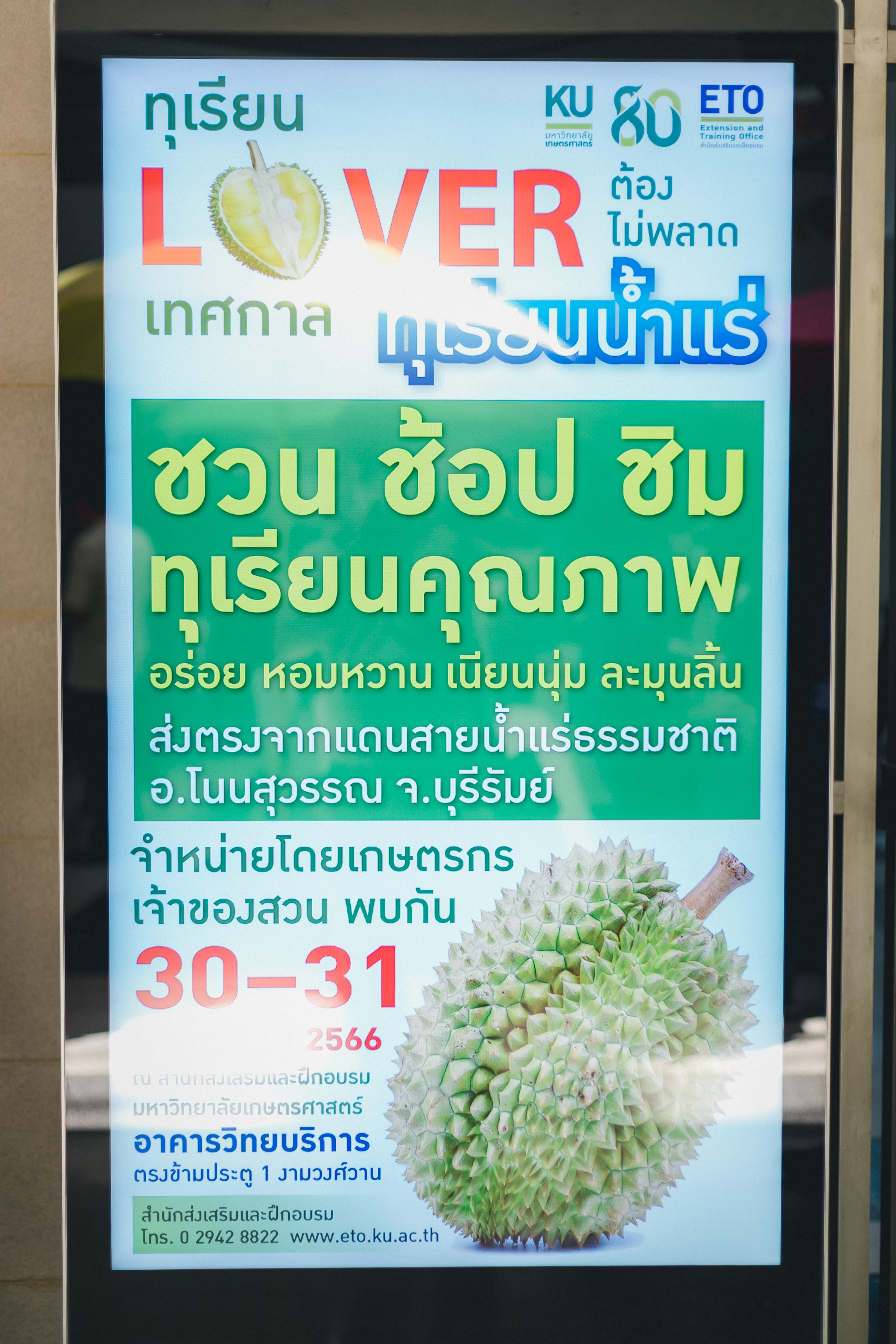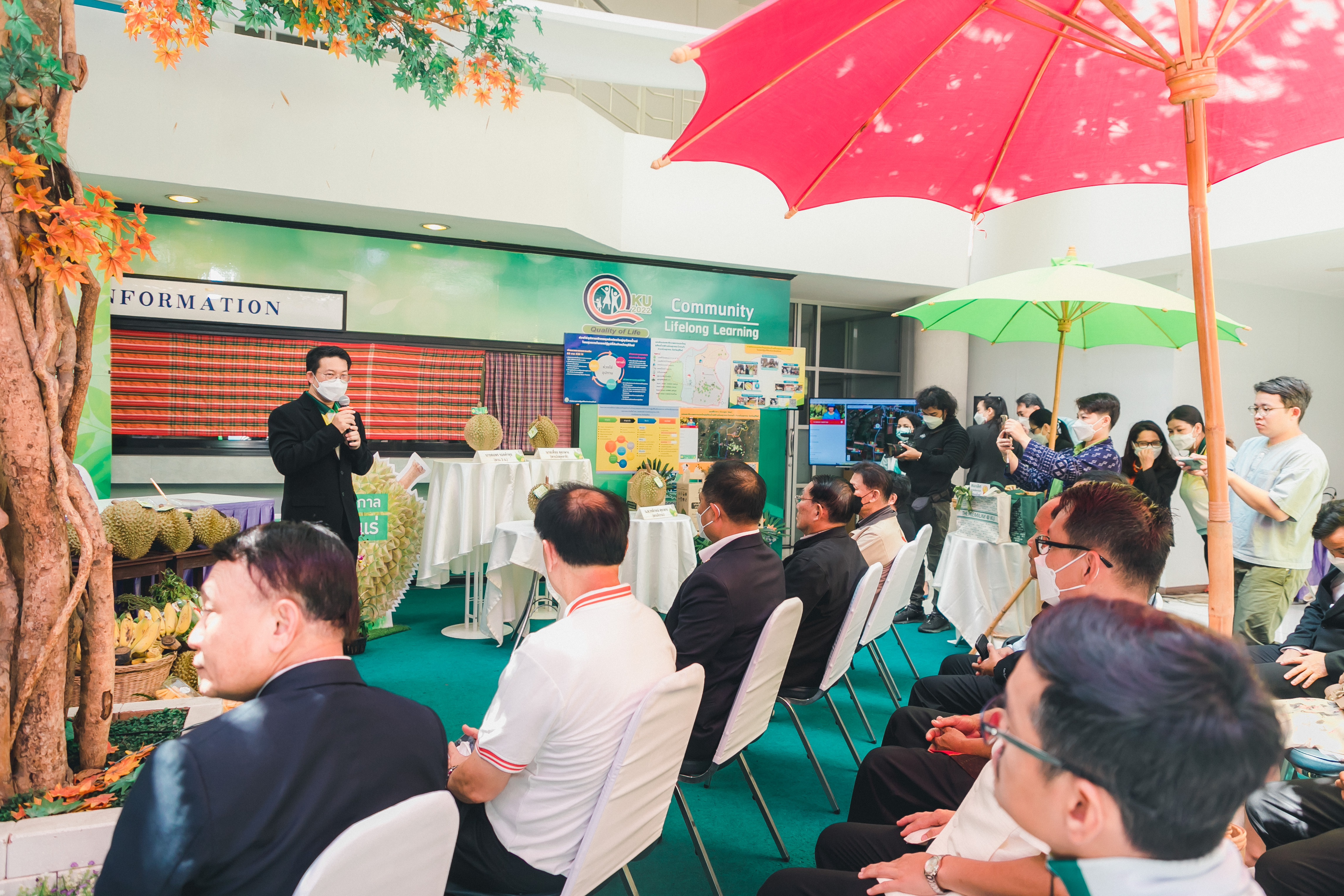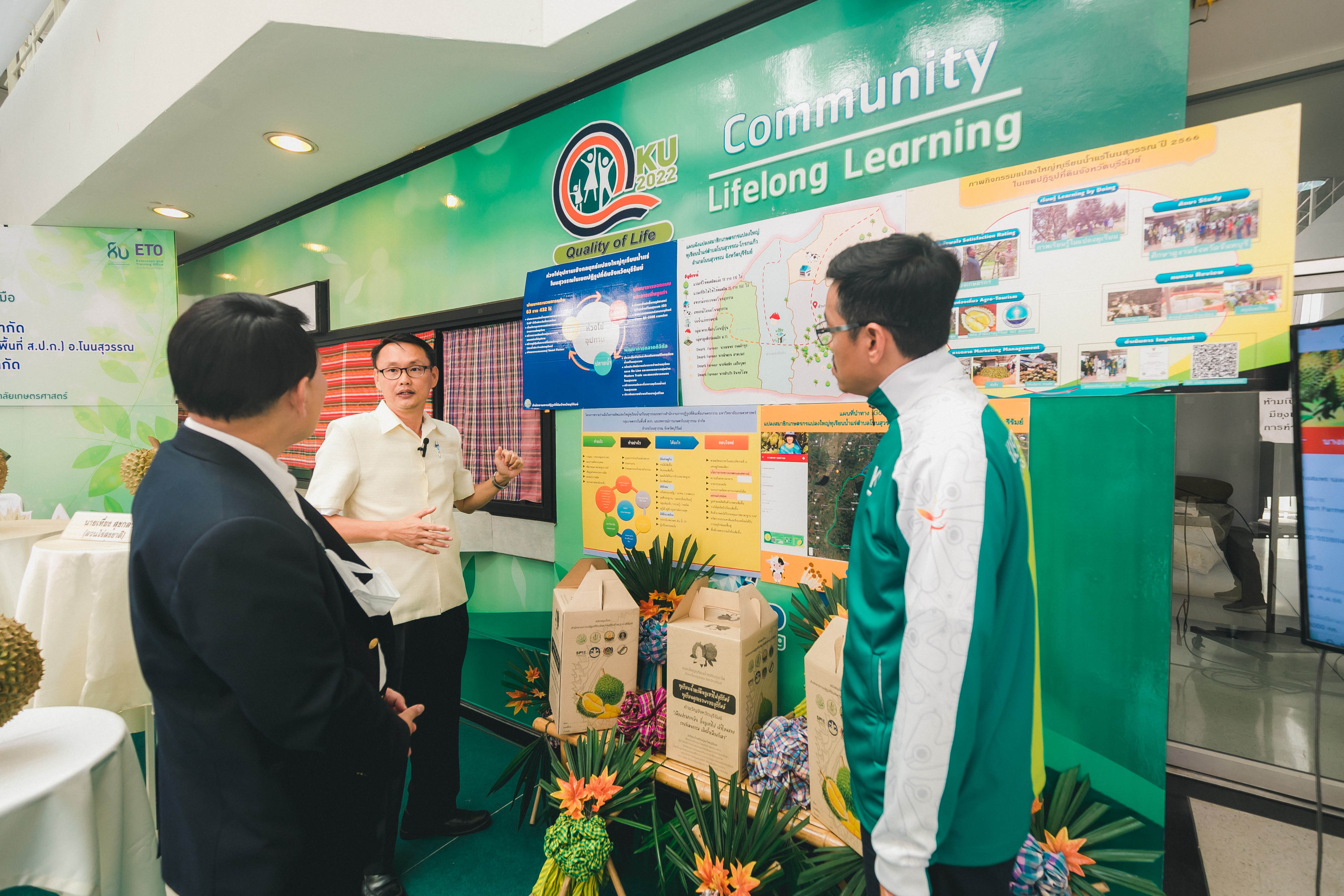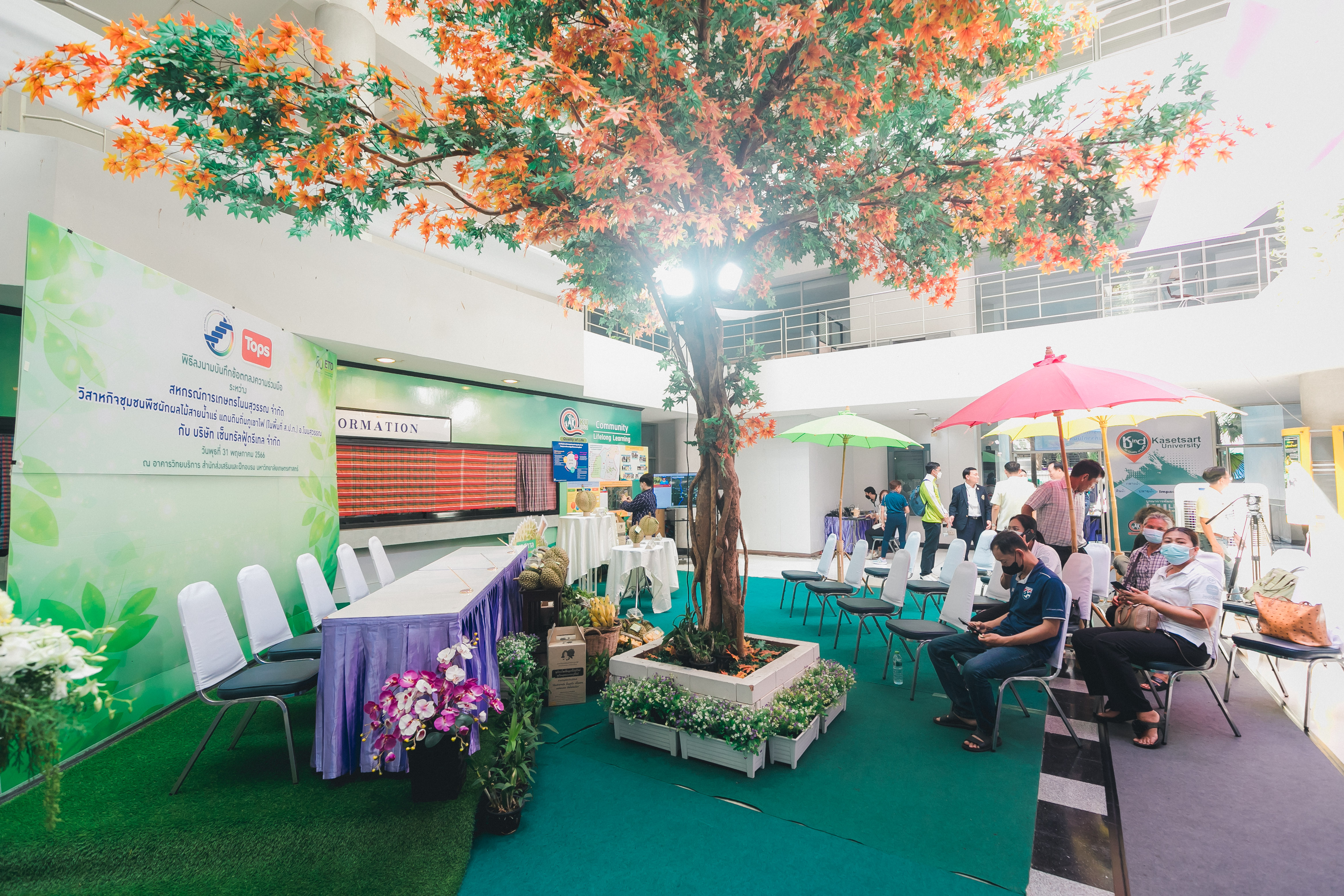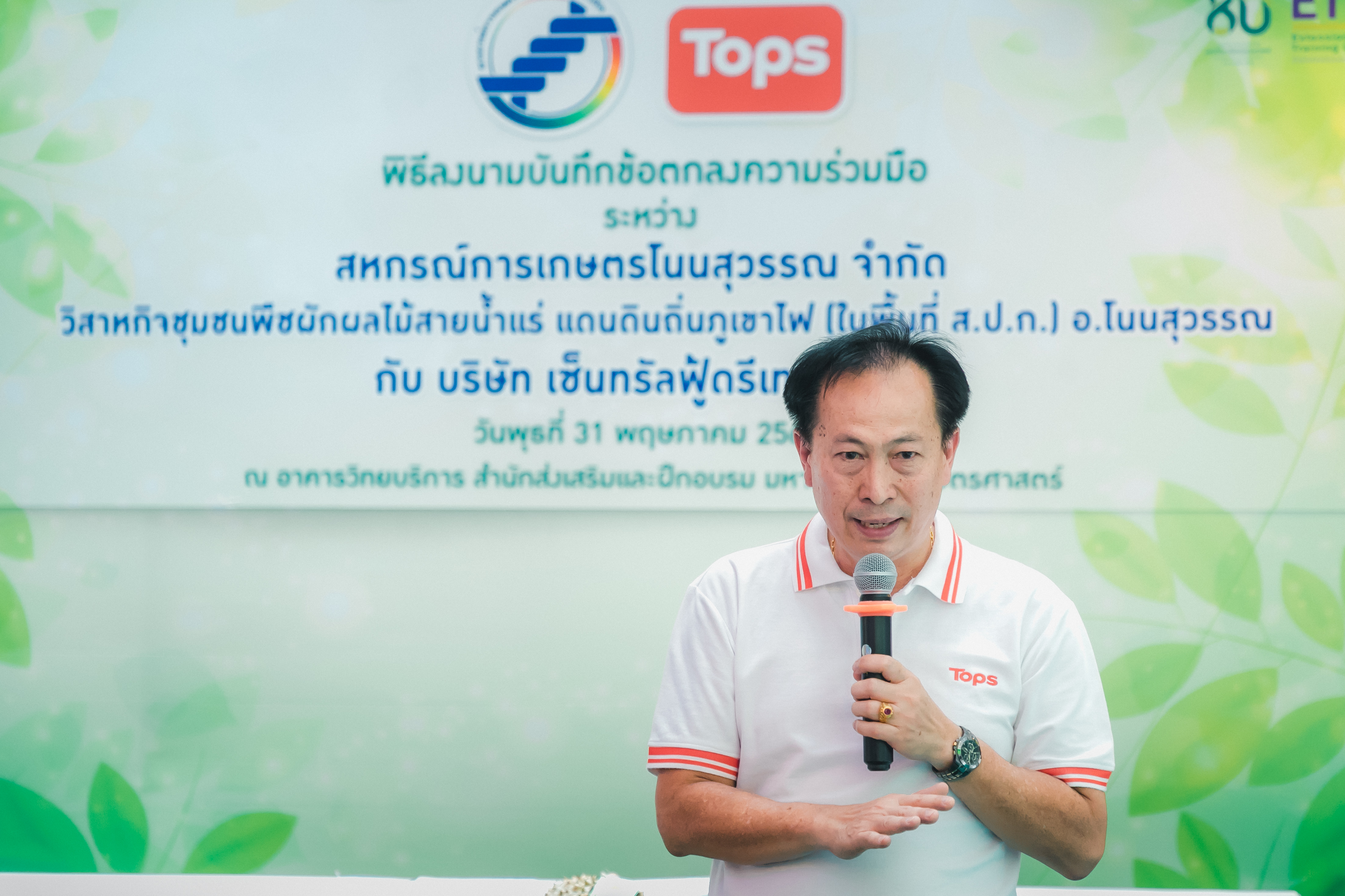 วันที่ 31 พฤษภาคม 2566 ดร.วิณะโรจน์ ทรัพย์ส่งสุข เลขาธิการ ส.ป.ก. มอบหมายให้นายเอกพงศ์ น้อยสร้าง รองเลขาธิการ ส.ป.ก. พร้อมด้วยนายประเสริฐ กาญจนเกียรติกุล ปฏิรูปที่ดินจังหวัดบุรีรัมย์ ร่วมเป็นเกียรติและเป็นสักขีพยานในพิธีลงนามบันทึกข้อตกลงความร่วมมือโครงการยกระดับนวัตกรรมผลิตภัณฑ์ผลไม้ 2023 กิจกรรม KU พลิกฟื้นเศรษฐกิจฐานนวัตกรรม 2023 ภาคตะวันออกเฉียงเหนือ “ทุเรียนน้ำแร่” ระหว่าง สหกรณ์การเกษตรโนนสุวรรณ จำกัด, วิสาหกิจชุมชนกลุ่มพืชผักผลไม้สายน้ำแร่ แดนดินถิ่นภูเขาไฟ ในเขตปฏิรูปที่ดิน อ.โนนสุวรรณ และบริษัท เซ็นทรัล ฟู้ด รีเทล จำกัด โดยมีภาคีเครือข่ายร่วมจัดกิจกรรมพร้อมทั้งเป็นสักขีพยานในพิธีลงนามบันทึกข้อตกลงความร่วมมือดังกล่าว ได้แก่ สำนักงานปฏิรูปที่ดินเพื่อเกษตรกรรม โดยสำนักงานการปฏิรูปที่ดินจังหวัดบุรีรัมย์, มหาวิทยาลัยเกษตรศาสตร์, สำนักงานสหกรณ์จังหวัดบุรีรัมย์, สหกรณ์การเกษตรโนนสุวรรณ จำกัด, วิสาหกิจชุมชน พืชผักผลไม้ สายน้ำแร่ แดนดินถิ่นภูเขาไฟในพื้นที่ ส.ป.ก. อำเภอโนนสุวรรณ จังหวัดบุรีรัมย์ และบริษัท เซ็นทรัล ฟู้ด รีเทล จำกัด ซึ่งกิจกรรมจัดขึ้นระหว่างวันที่ 30-31 พฤษภาคม 2566 ณ สำนักส่งเสริมและฝึกอบรม อาคารวิทยบริการ มหาวิทยาลัยเกษตรศาสตร์