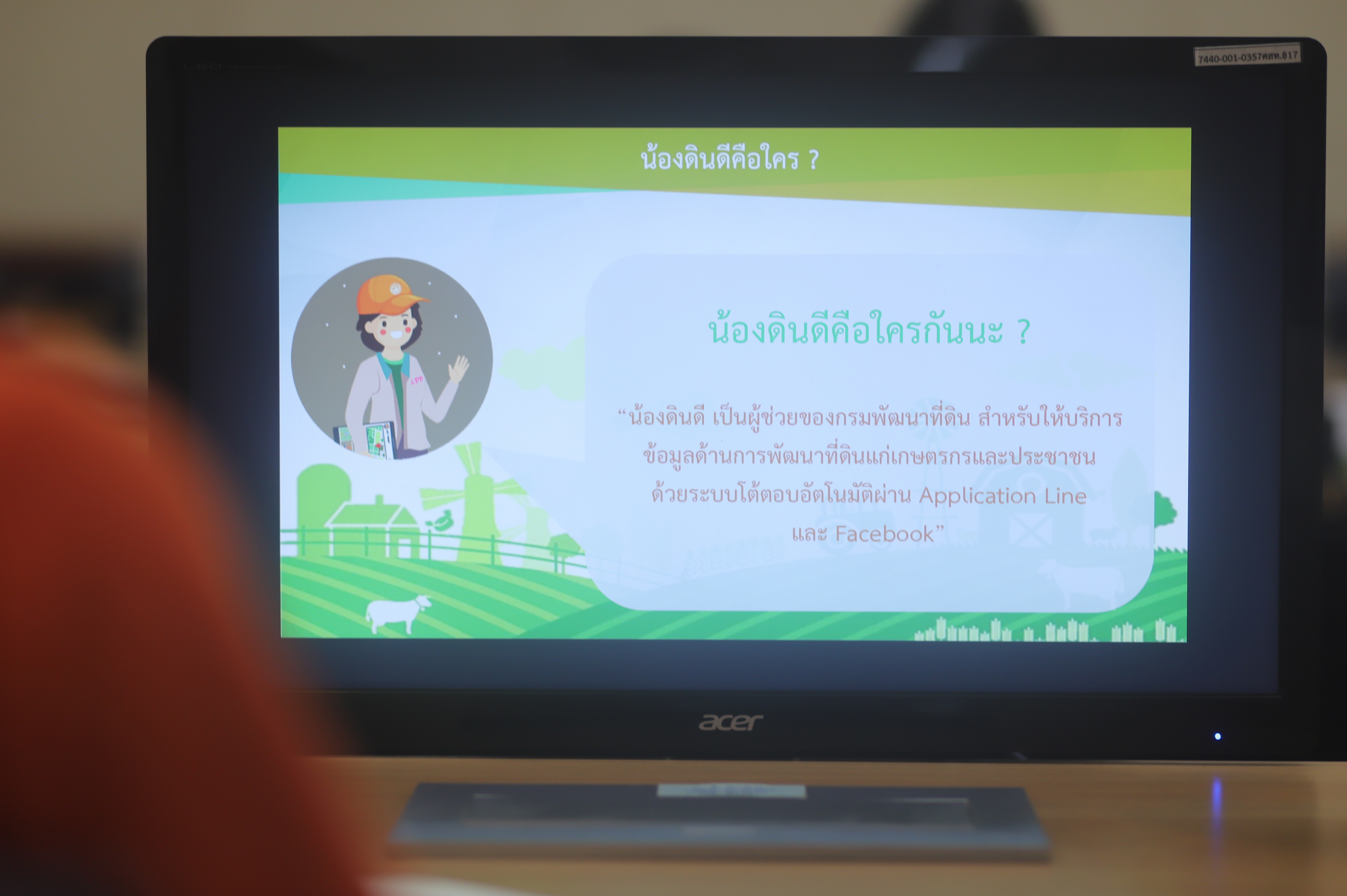 มารู้จักน้องดินดี ระบบโต้ตอบกับผู้ใช้งานด้วยระบบเทคโนโลยีปัญญาประดิษฐ์ AI Chatbot เข้าถึงข้อมูล โต้ตอบ สามารถสื่อสารได้กับผู้ใช้บริการในหลายมิติ เพื่อเป็นเครื่องมือ สร้างการรับรู้ ที่สามารถพัฒนาให้ตอบคำถามที่มีความซับซ้อนได้ เป็นคลังความรู้ Knowledge Base สำหรับเจ้าหน้าที่ สามารถสอบถามได้ 24 ชม. รวดเร็วทันใจ สามารถตอบคำถามเชิงพื้นที่ที่เชื่อมโยงกับ GIS ได้