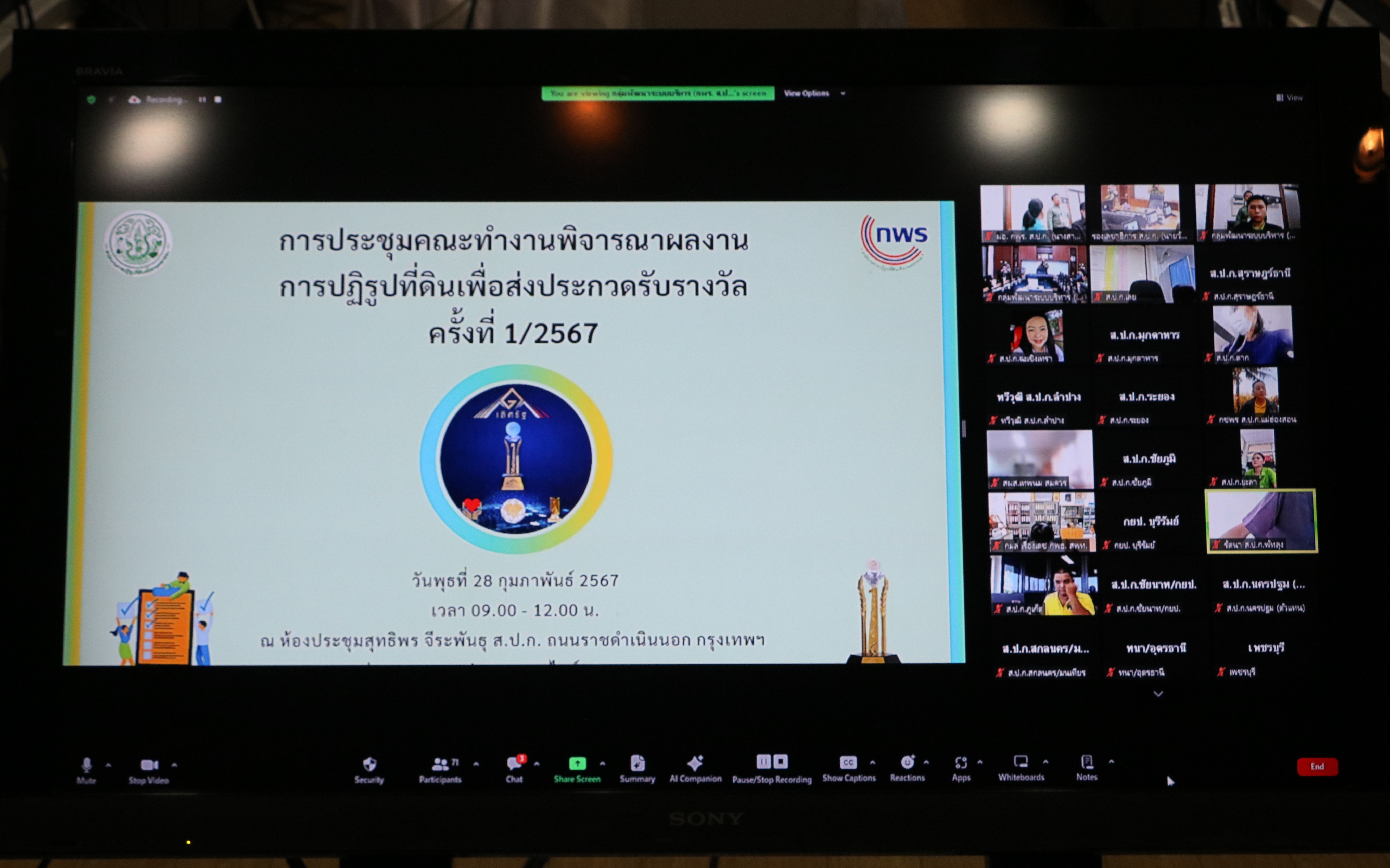 วันพุธที่ 28 กุมภาพันธ์ 2567 เวลา 09.00 น. นายวิณะโรจน์ ทรัพย์ส่งสุข เลขาธิการสำนักงานการปฏิรูปที่ดินเพื่อเกษตรกรรม (ส.ป.ก.) มอบหมายให้ นายวัฒนา มังธิสาร รองเลขาธิการ ส.ป.ก. เป็นประธานการประชุมคณะทำงานพิจารณาผลงานการปฏิรูปที่ดินเพื่อส่งประกวดรับรางวัล ครั้งที่ 1/2567 ณ ห้องประชุมสุทธิพร จีระพันธุ ส.ป.ก. ถนนราชดำเนินนอก กรุงเทพฯ และผ่านระบบ Zoom Meeting